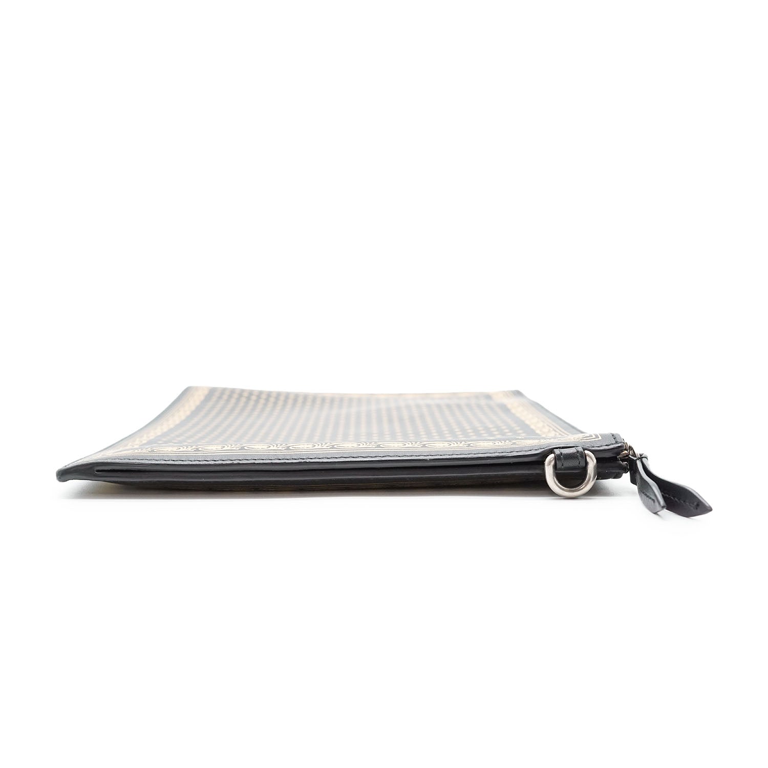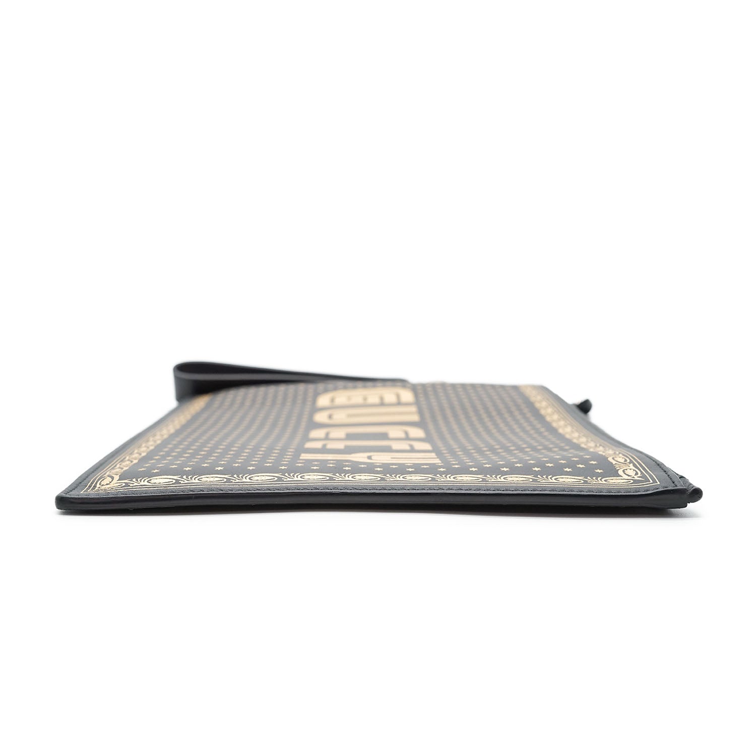 Gucci x SEGA Guccy Magnetismo Clutch Black/Gold LeatherDepth: 0.5cmHeight: 21cmWidth: 30.5cmHand Drop: 15cmBOutside Rank: BInside Rank: ABDiscoloration: Slight hardware tarnishScratch: Slight scratches on the leather parts (inside, zipper pull)Serial code: 510489.0416