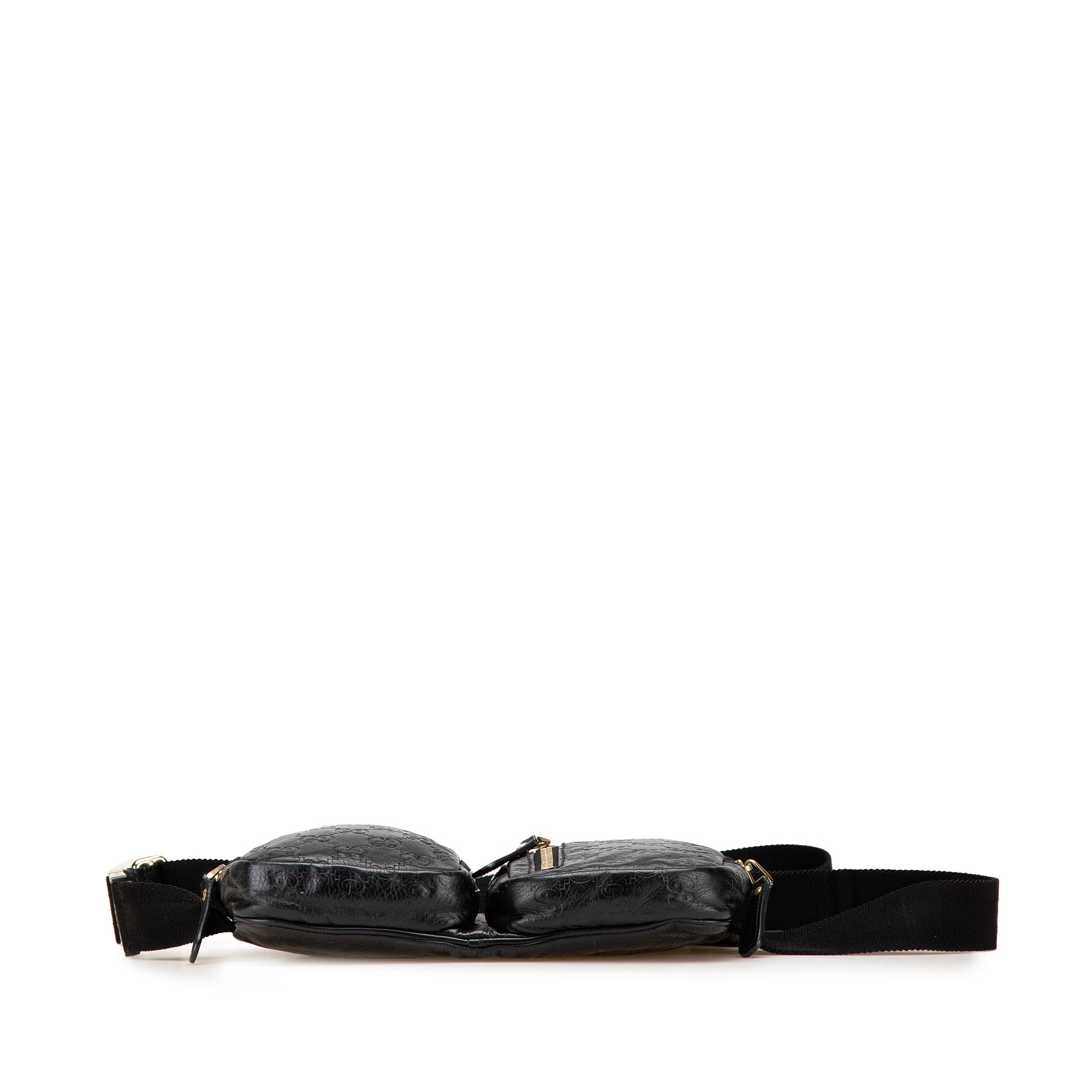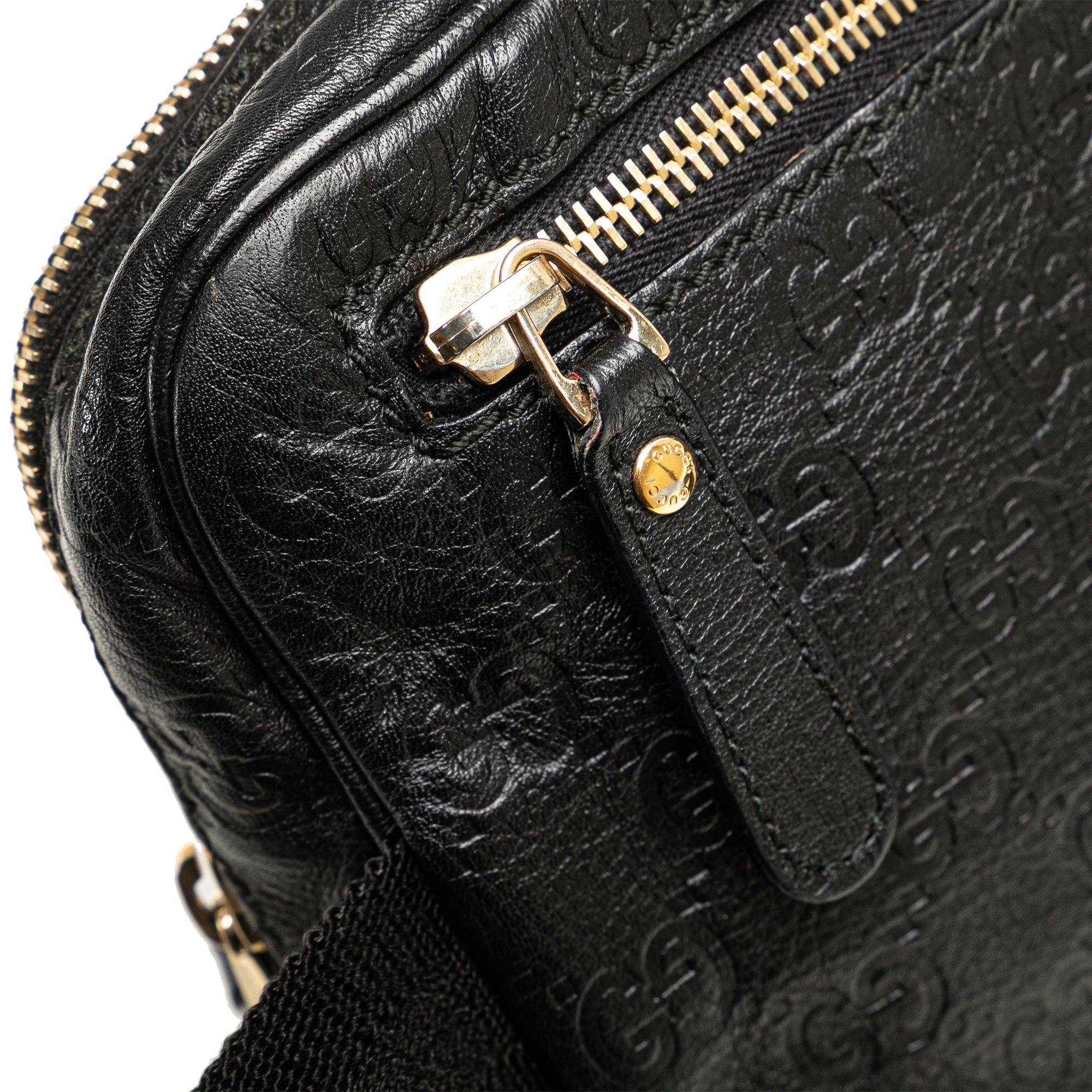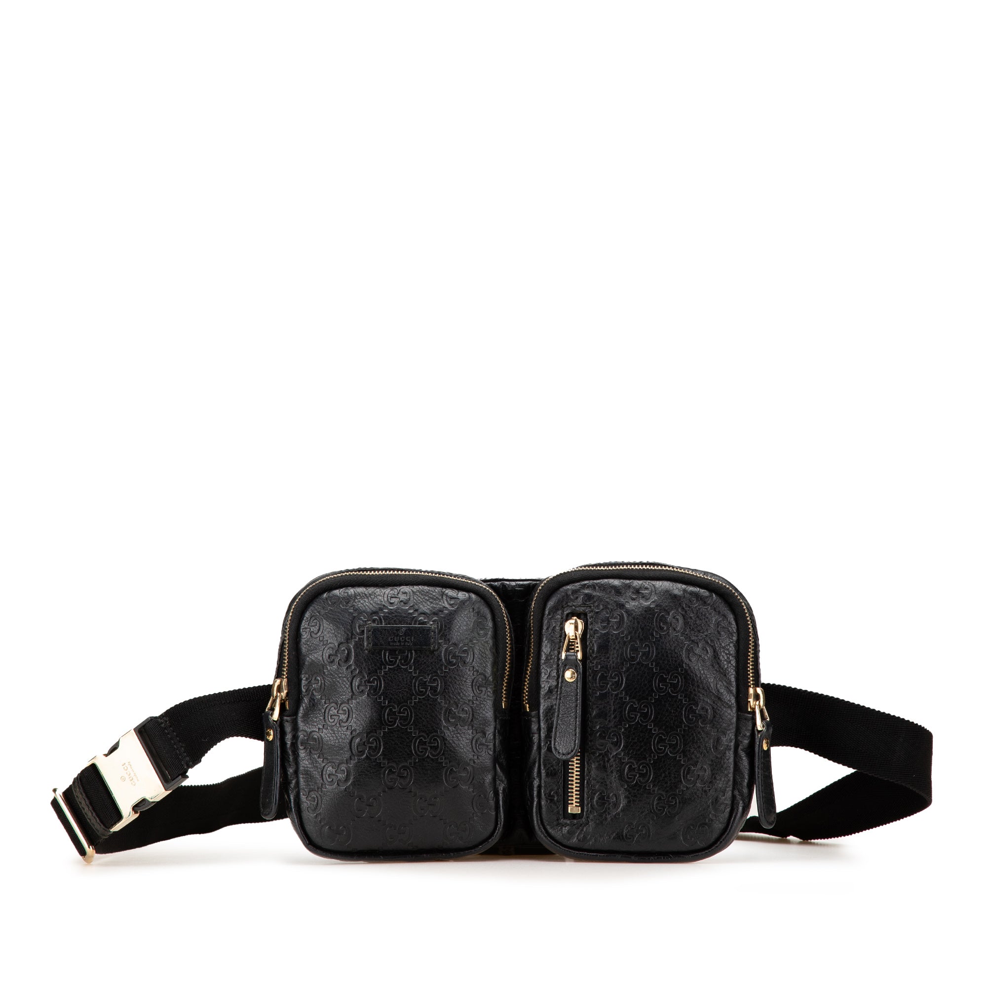 This belt bag features an embossed leather body, an adjustable flat waist strap, a top zip closure, and exterior front and back zip pockets. Retail Price: 900.00