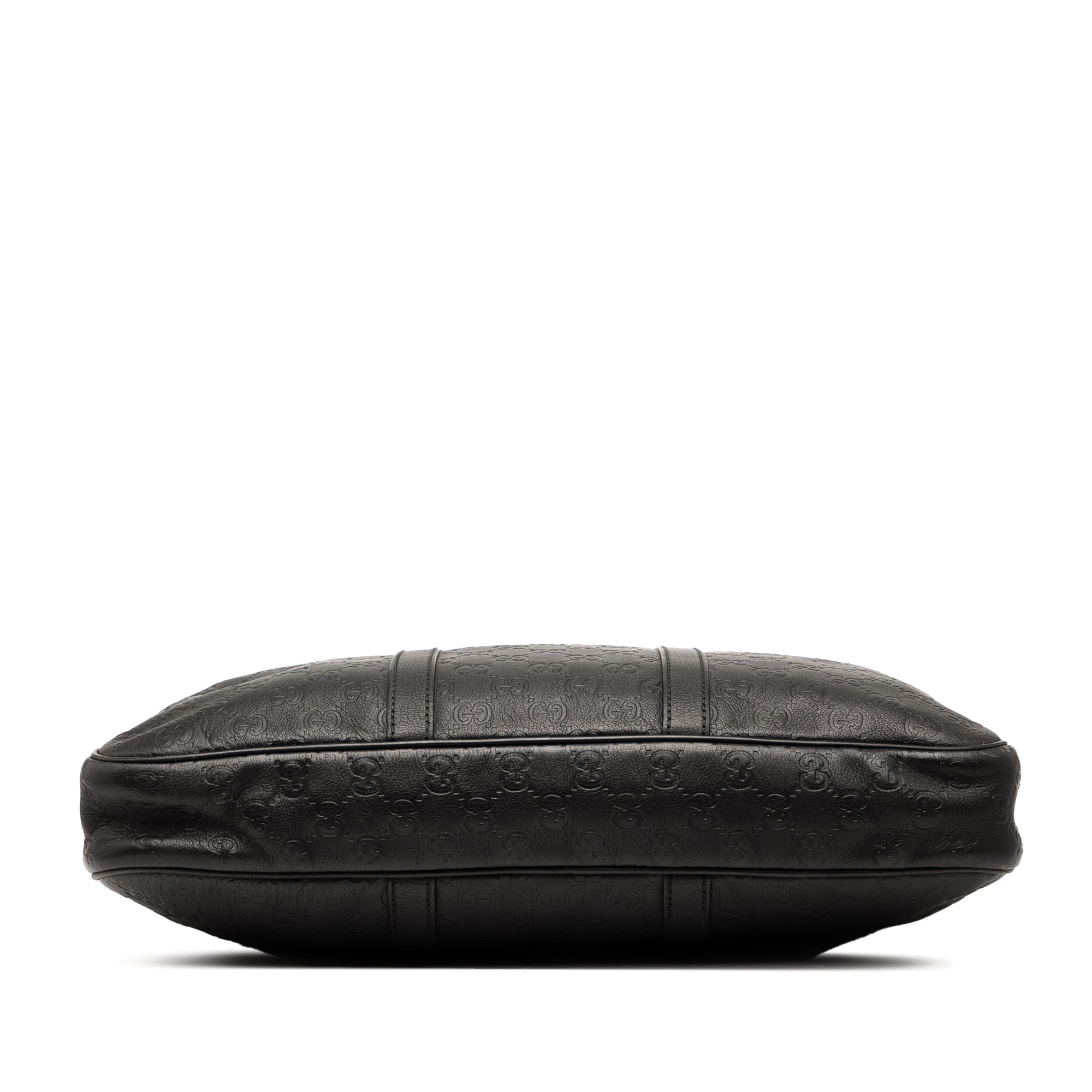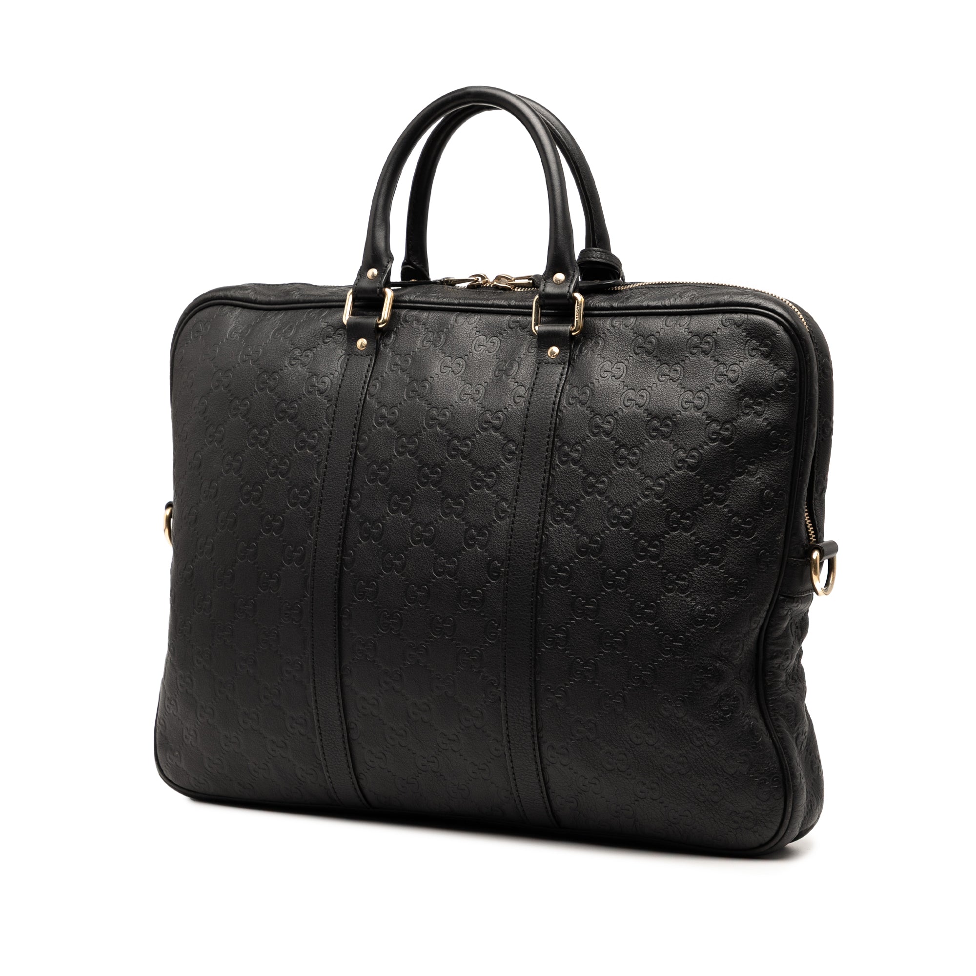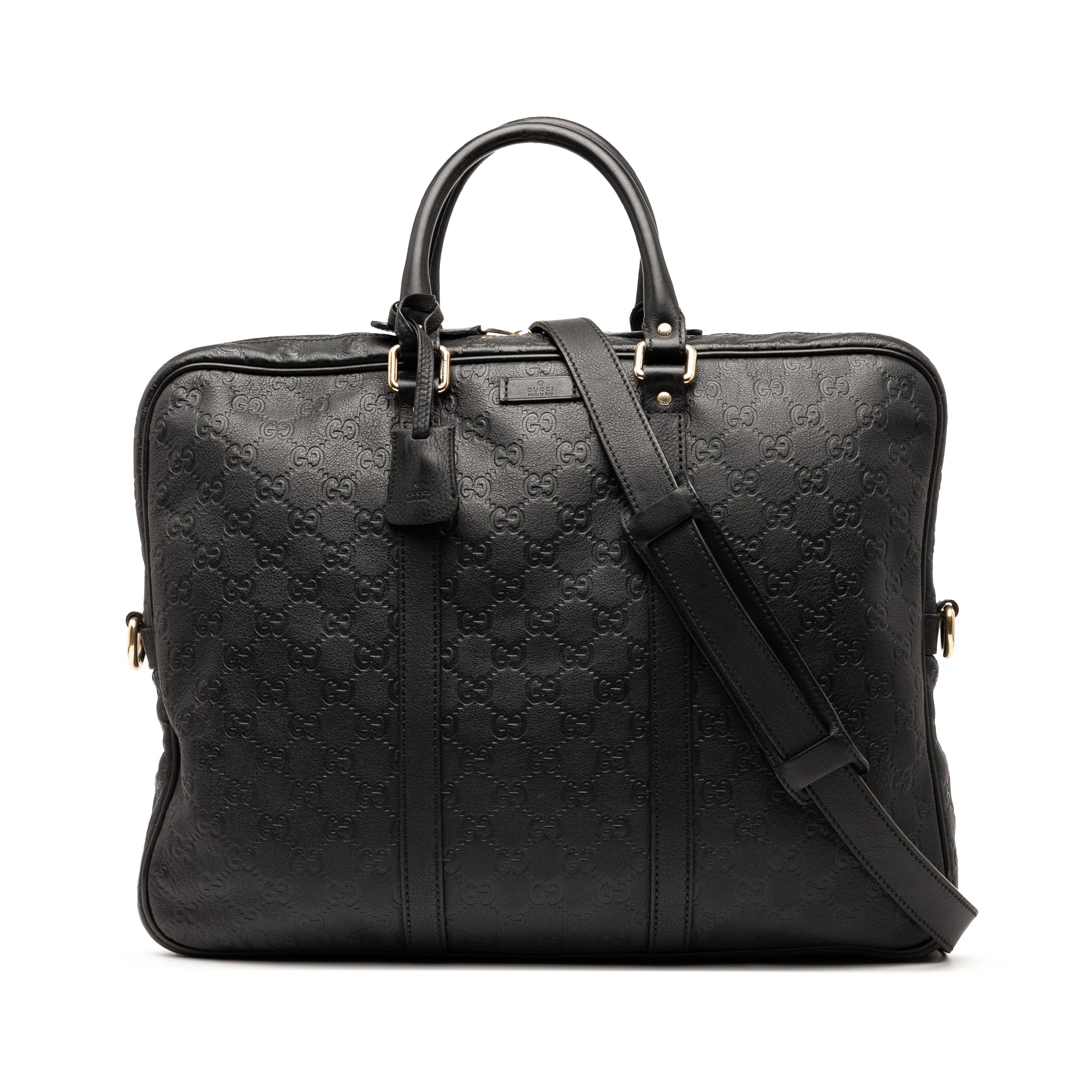 This briefcase features an embossed leather body, rolled leather handles, an adjustable and detachable flat leather strap, a top zip closure, and interior zip and slip pockets. Retail Price: 1950.00