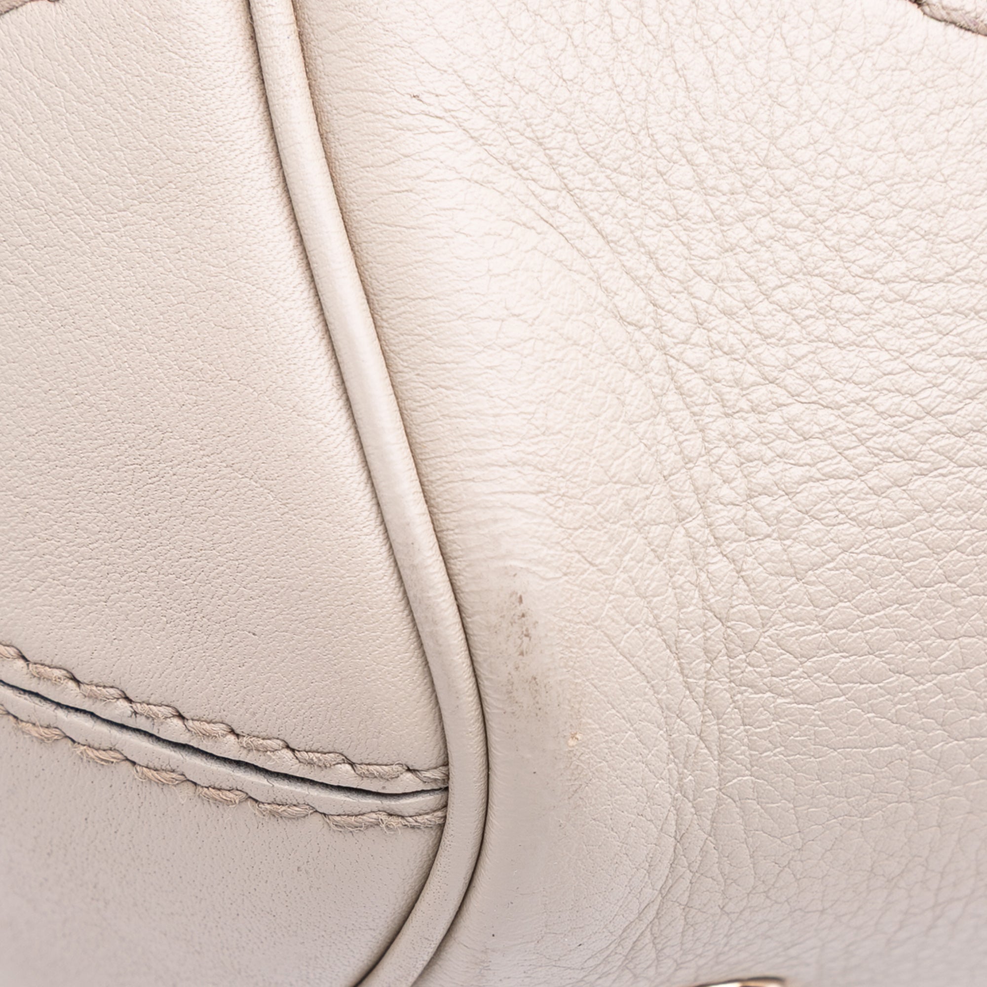 The Mayfair Tote features an embossed leather body, flat leather straps, a ribbon detail at the top panel, a top zip closure, and interior zip and slip pockets. Retail Price: 1250.00