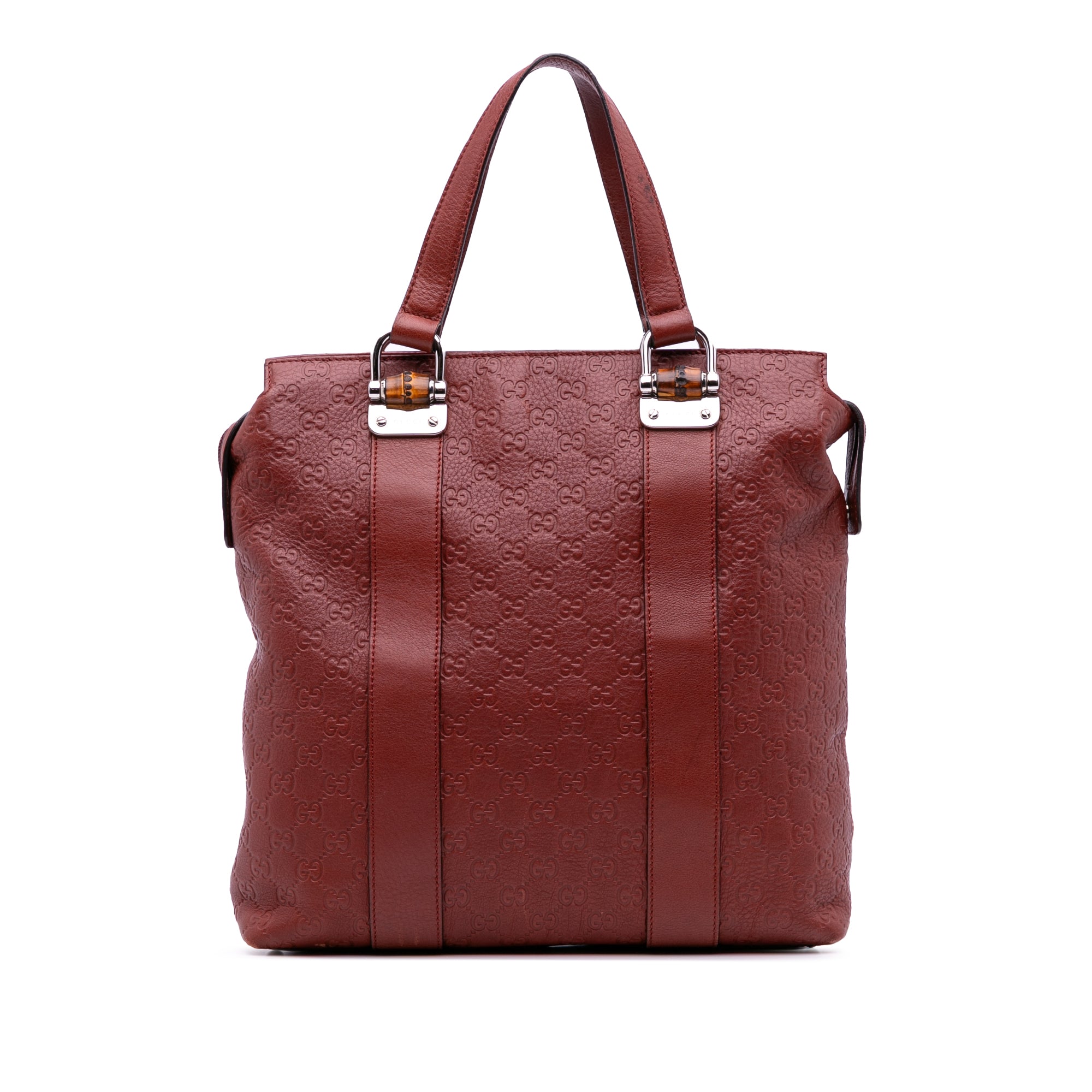 The Bamboo Bar tote bag features a leather body, flat leather handles with bamboo accents, a top zip closure, and interior zip and open pockets. Retail Price: 1950.00