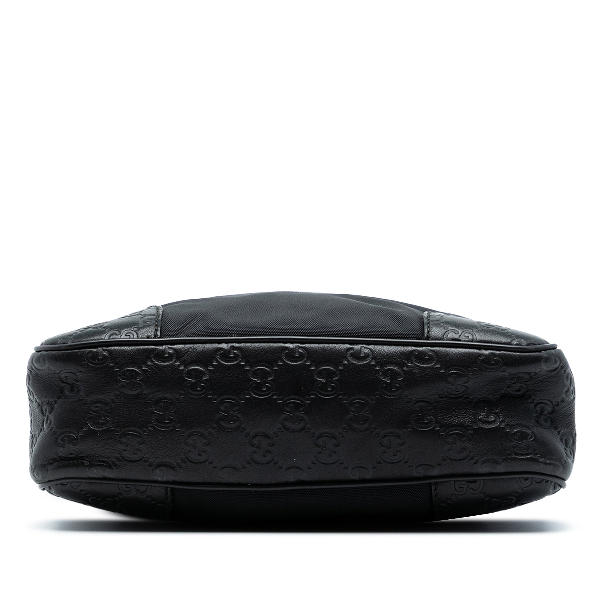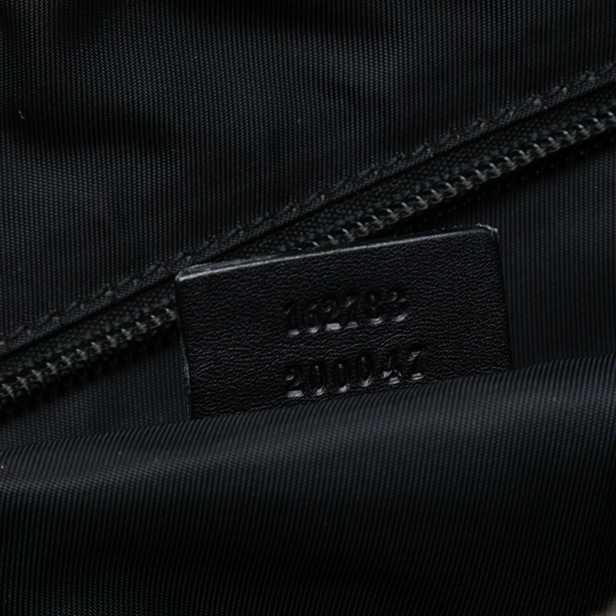 This crossbody bag features a nylon body with guccissima trim, an adjustable flat canvas strap, a top zip closure, an exterior front slip pocket, and an interior zip pocket. Retail Price: 623.00
