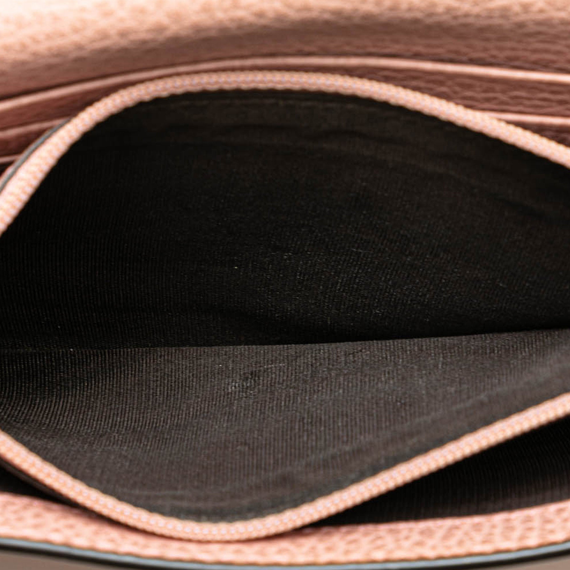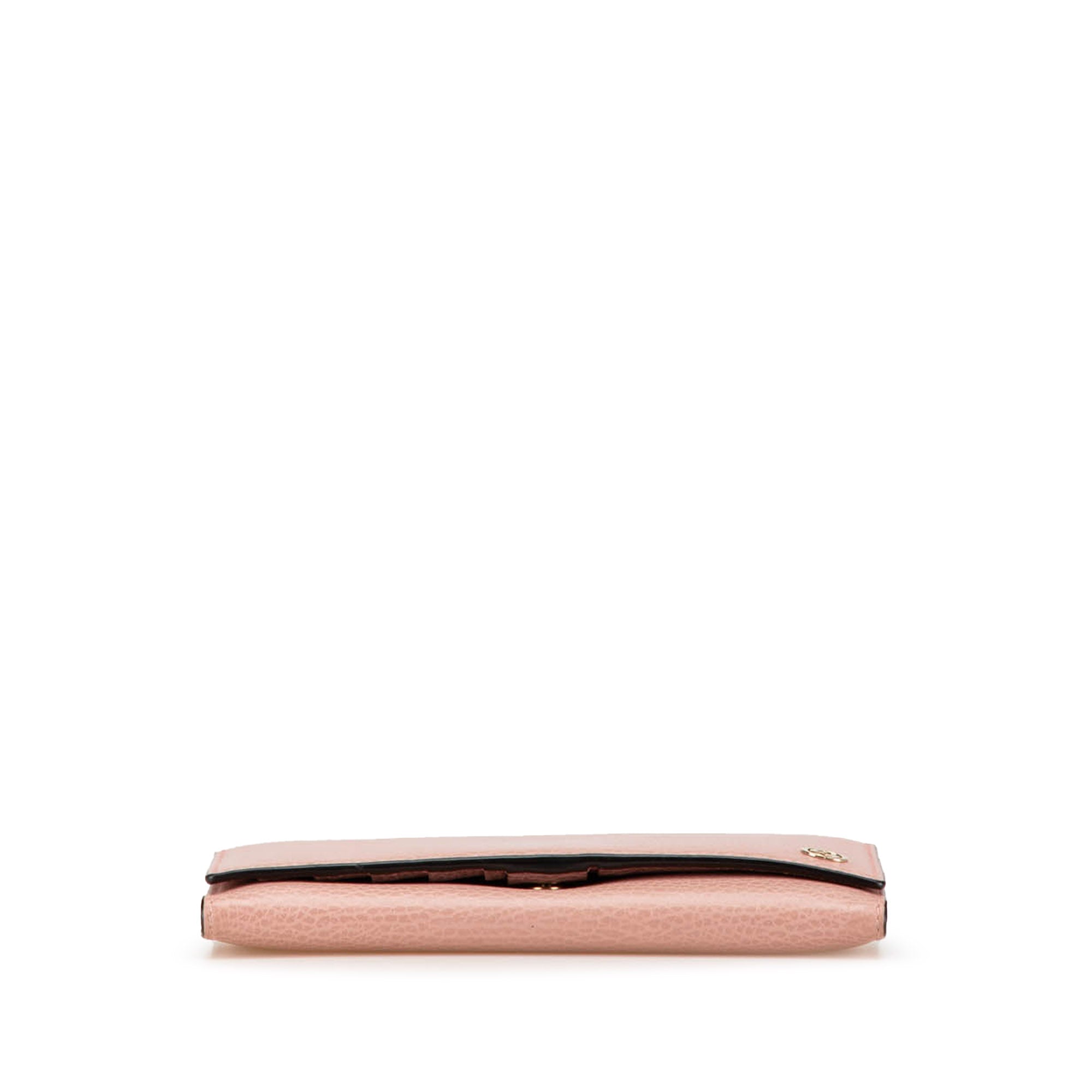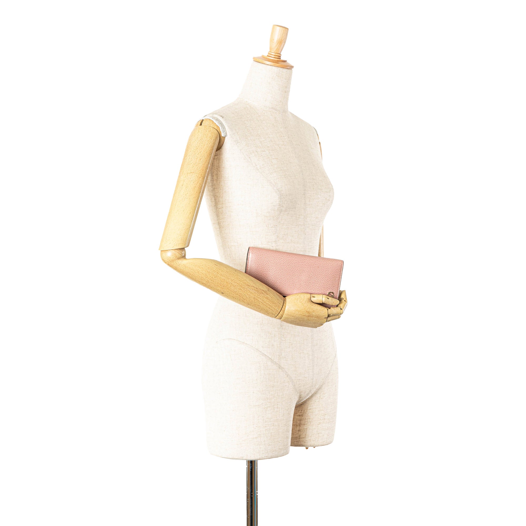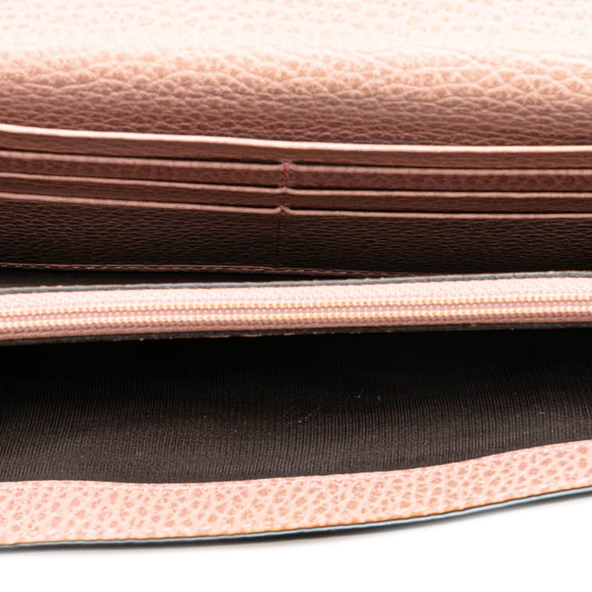 This long wallet features a leather body, a front flap with snap button closure, and interior zip and slip pockets. Retail Price: 575.00