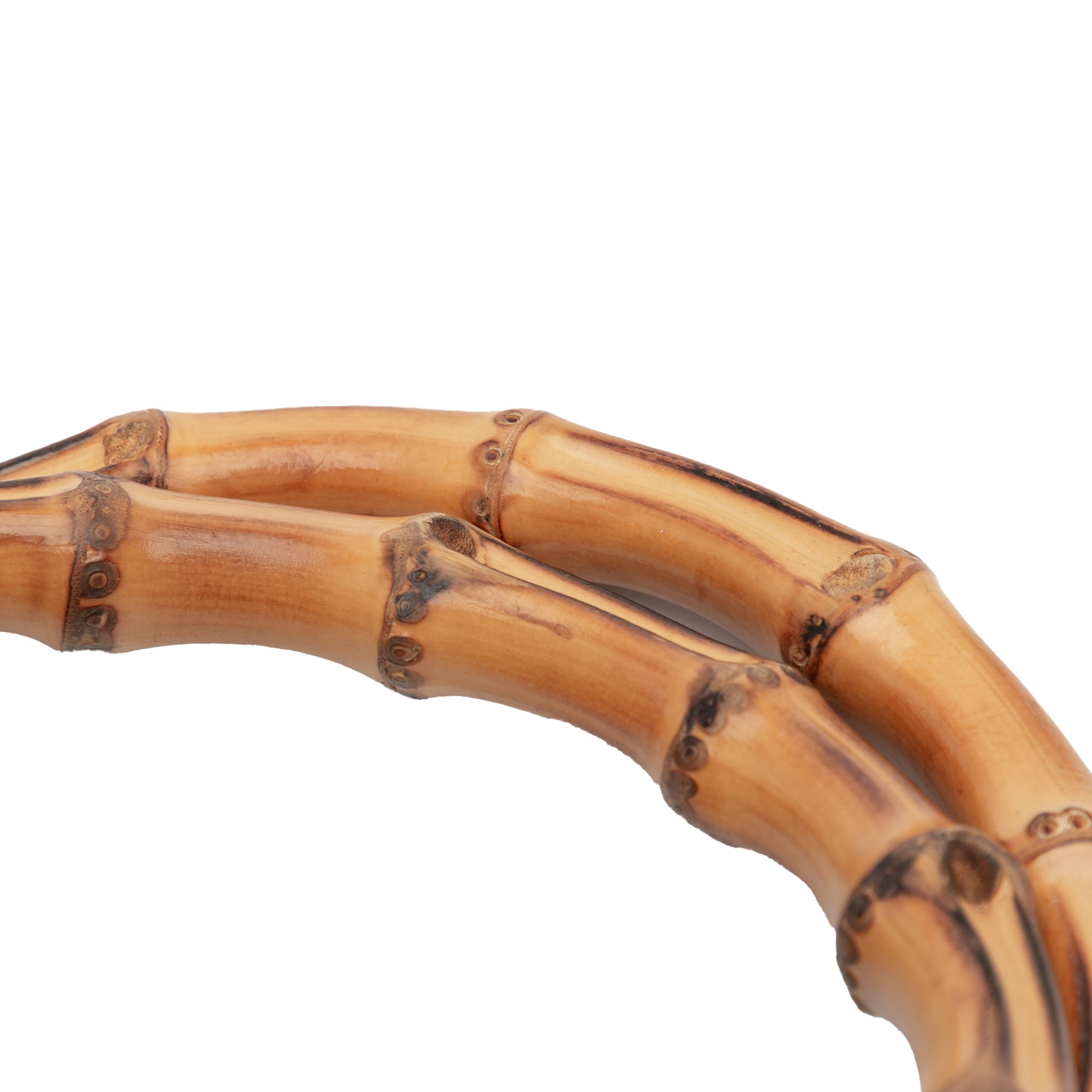 The Bamboo Shopper features a leather body, bamboo top handles, a detachable flat leather strap, an open top with a magnetic closure, an interior zip compartment, and interior zip and slip pockets. Retail Price: 2550.00