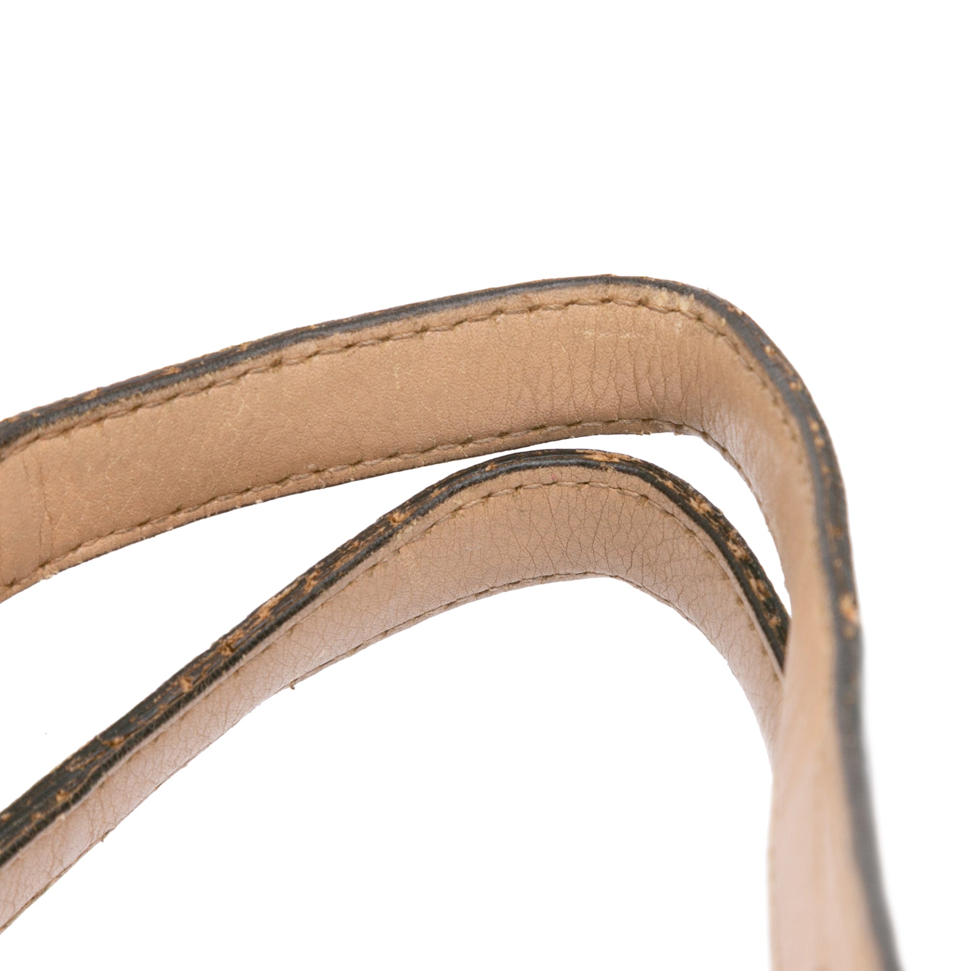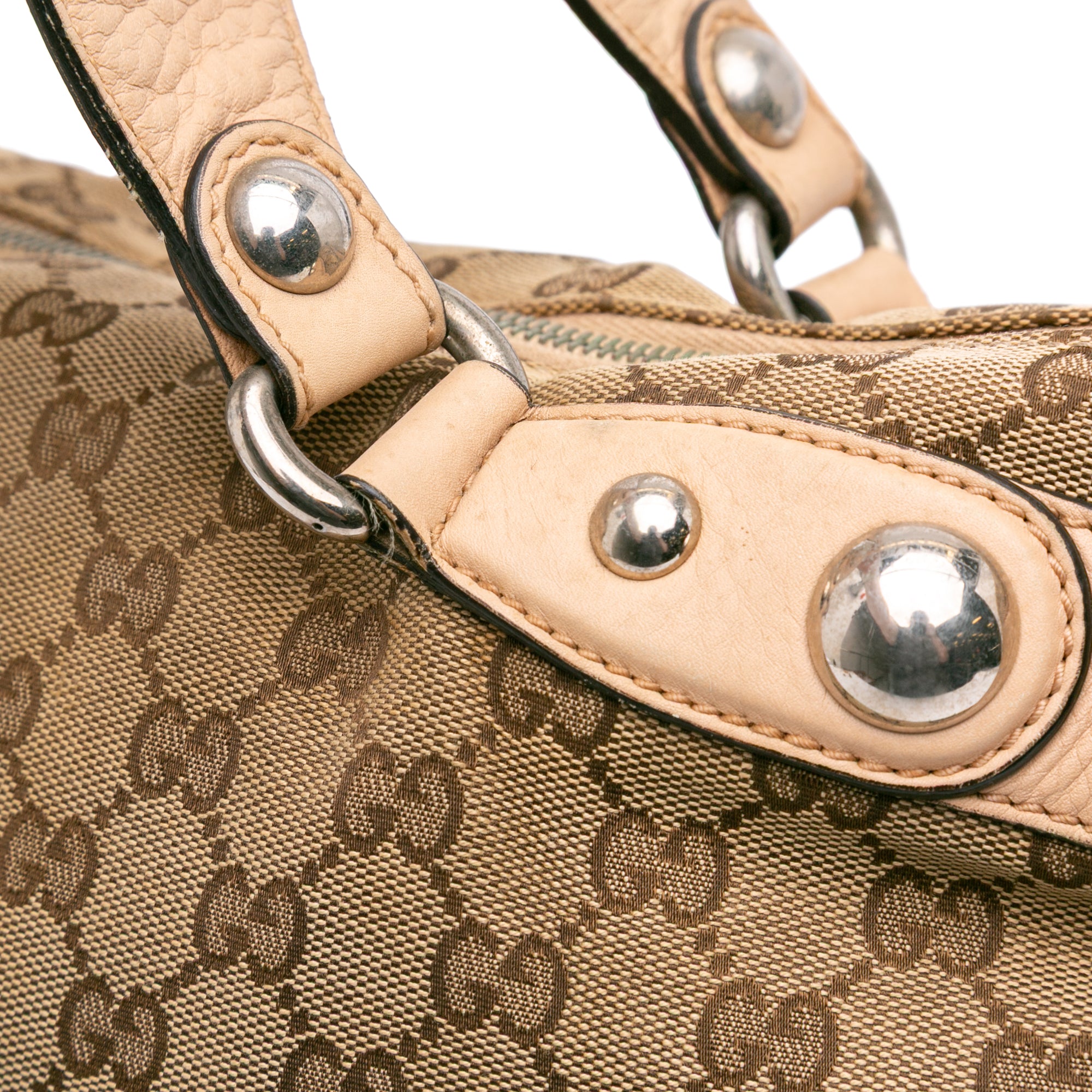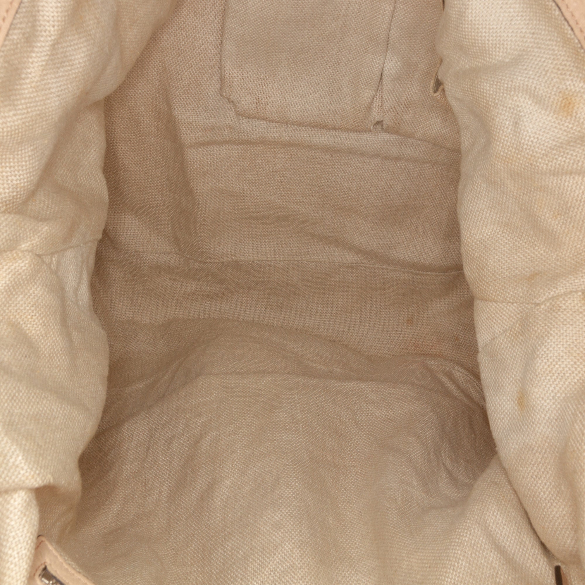 This satchel features a canvas body with leather trim, flat leather handles, a top zip closure, and interior zip and slip pockets. Retail Price: 980.00