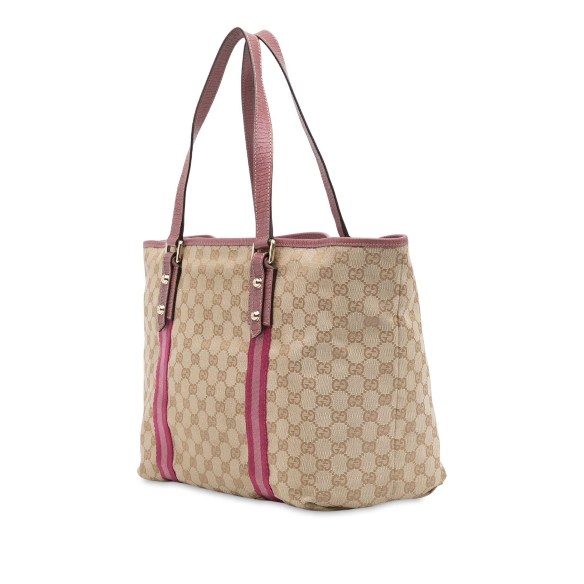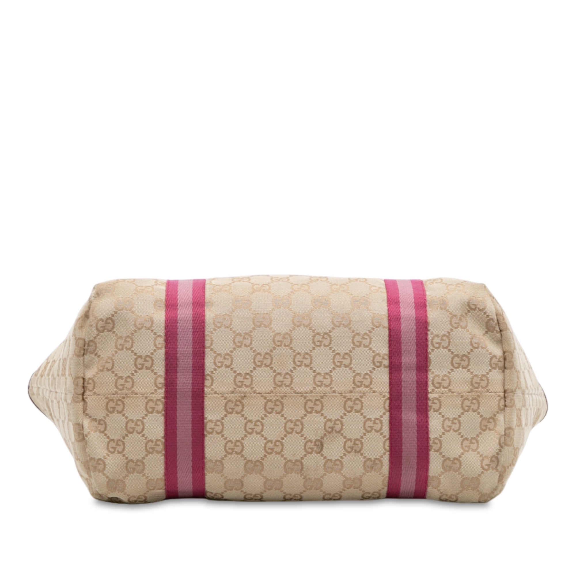 This tote bag features a canvas body with leather trim, flat leather straps, an open top, and interior zip and slip pockets. Retail Price: 750.00
