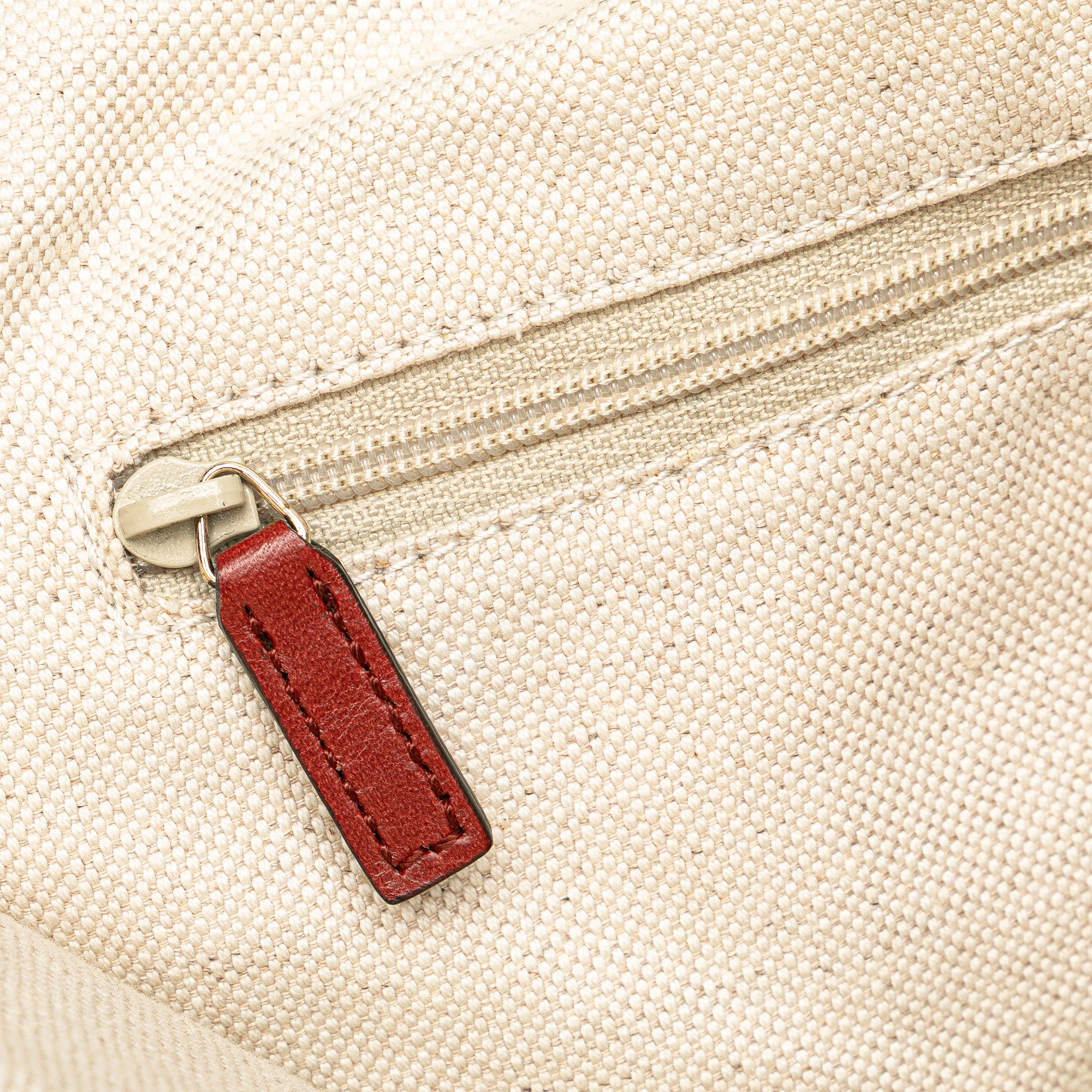 The Sukey tote bag features a canvas body with leather trim, rolled leather handles, an open top with magnetic closure, and an interior zip pocket. Retail Price: 900.00