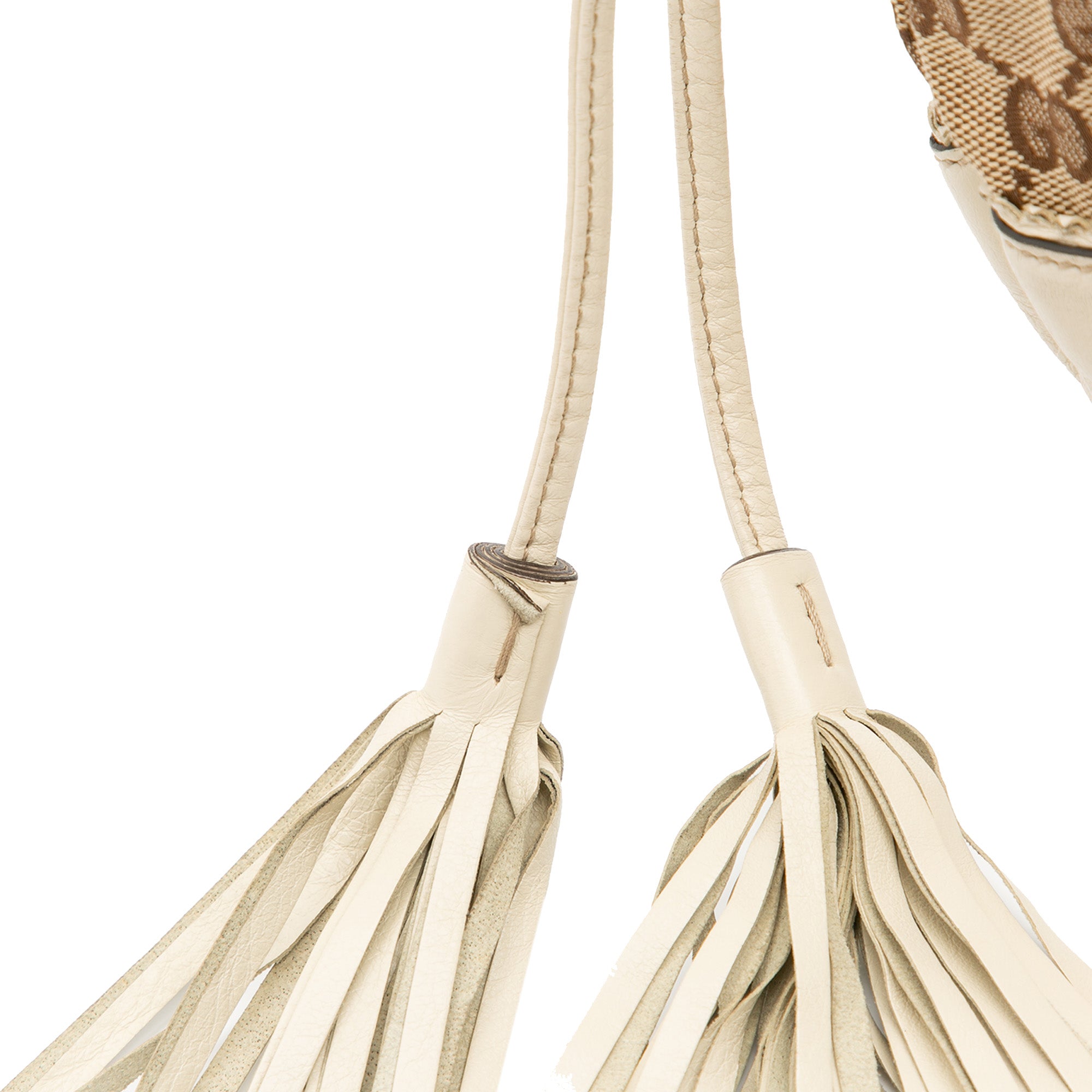 The Tribeca features a canvas body with leather trim and tassel details, flat leather straps, an open top with a magnetic snap closure, and interior zip and slip pockets. Retail Price: 995.00