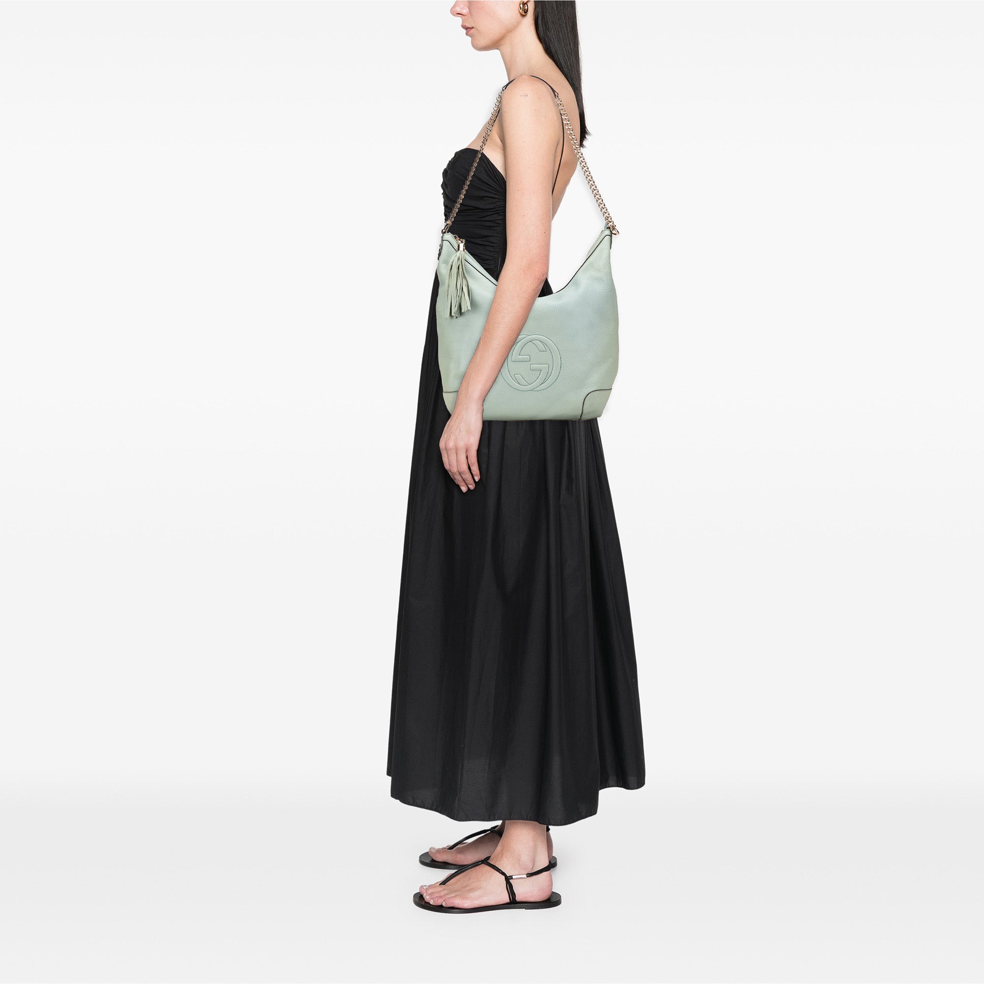 The Soho shoulder bag features a leather body, a chain strap with leather guard, a top zip closure with tassel detail, and interior zip and slip pockets. Inclusion: Dust bag. Retail Price: 1425.00