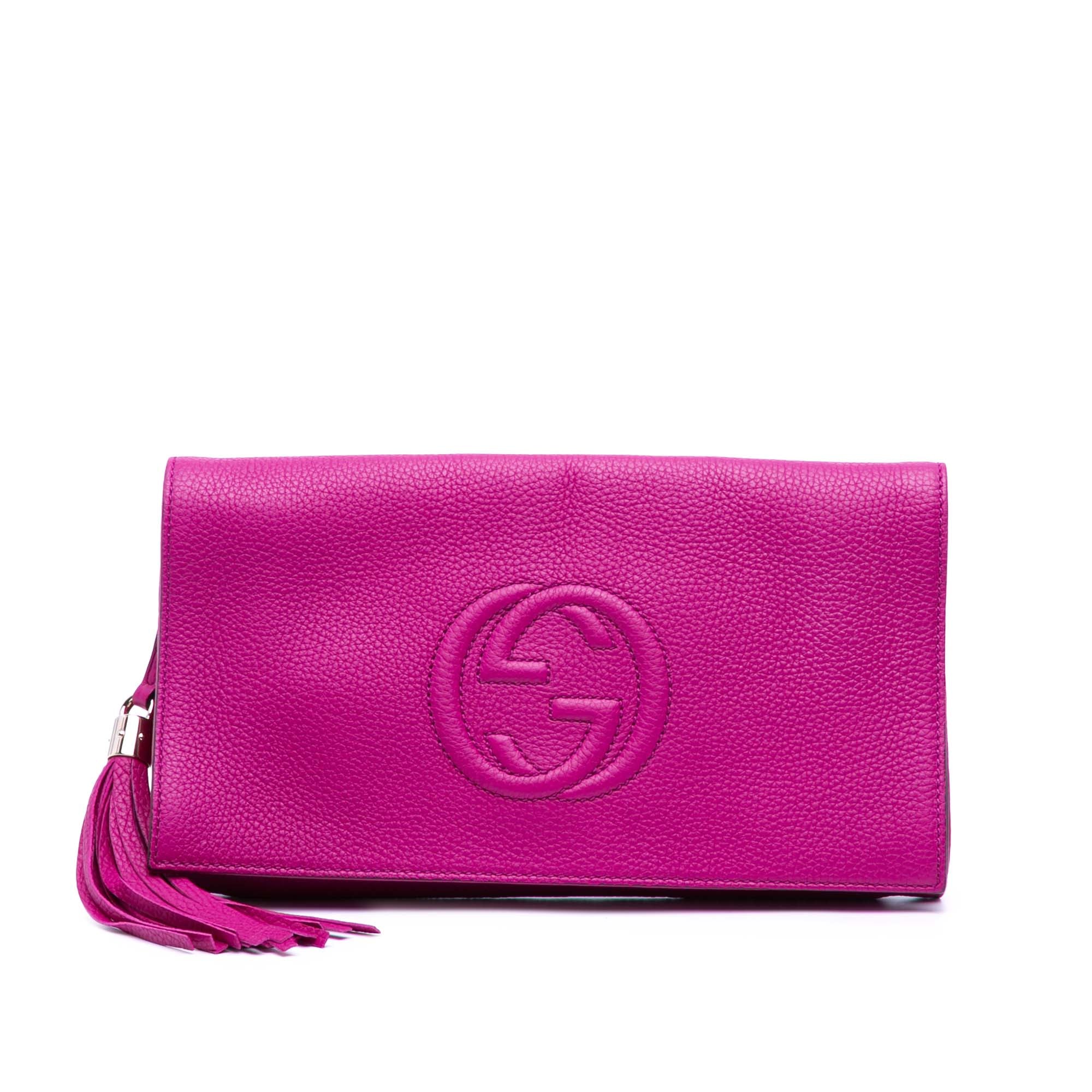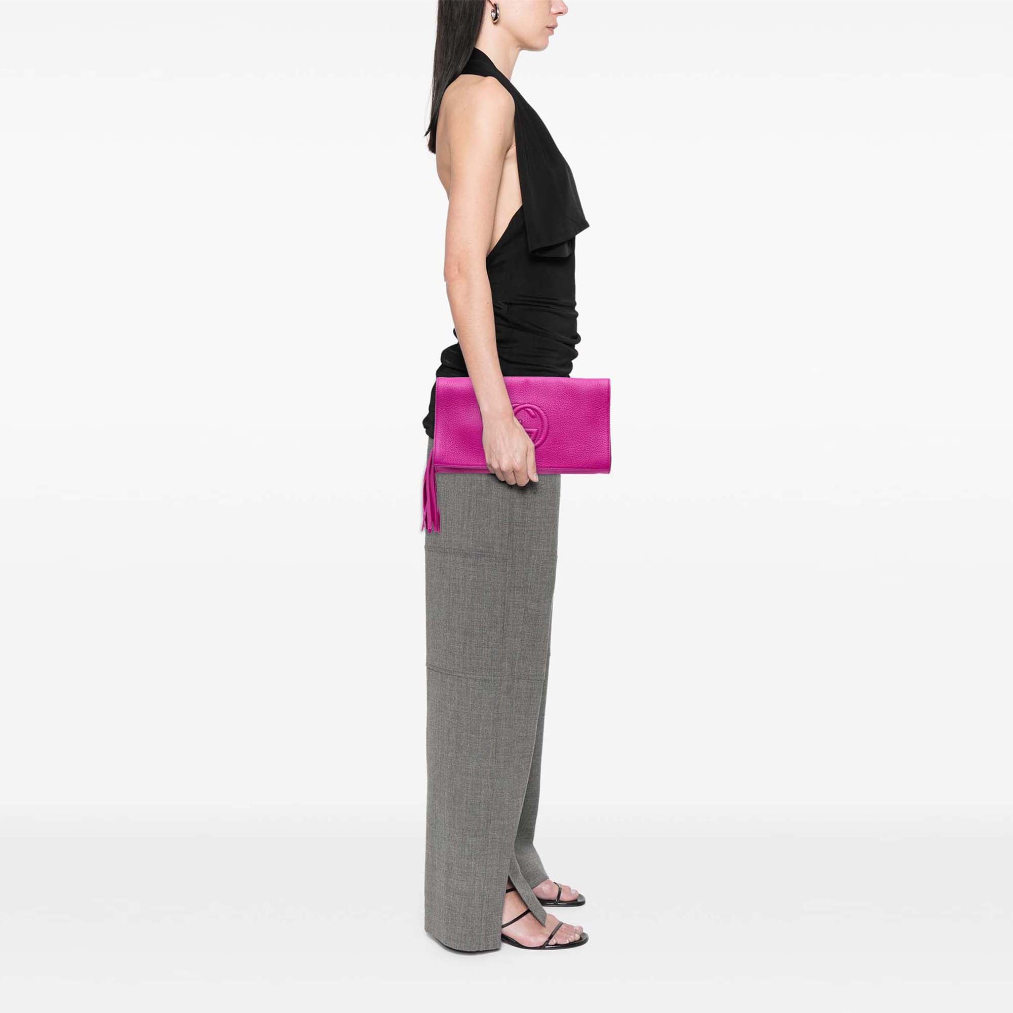 This clutch bag features a leather body, a tassel detail, a front flap with magnetic snap closure, and an interior zip pocket. Retail Price: 850.00