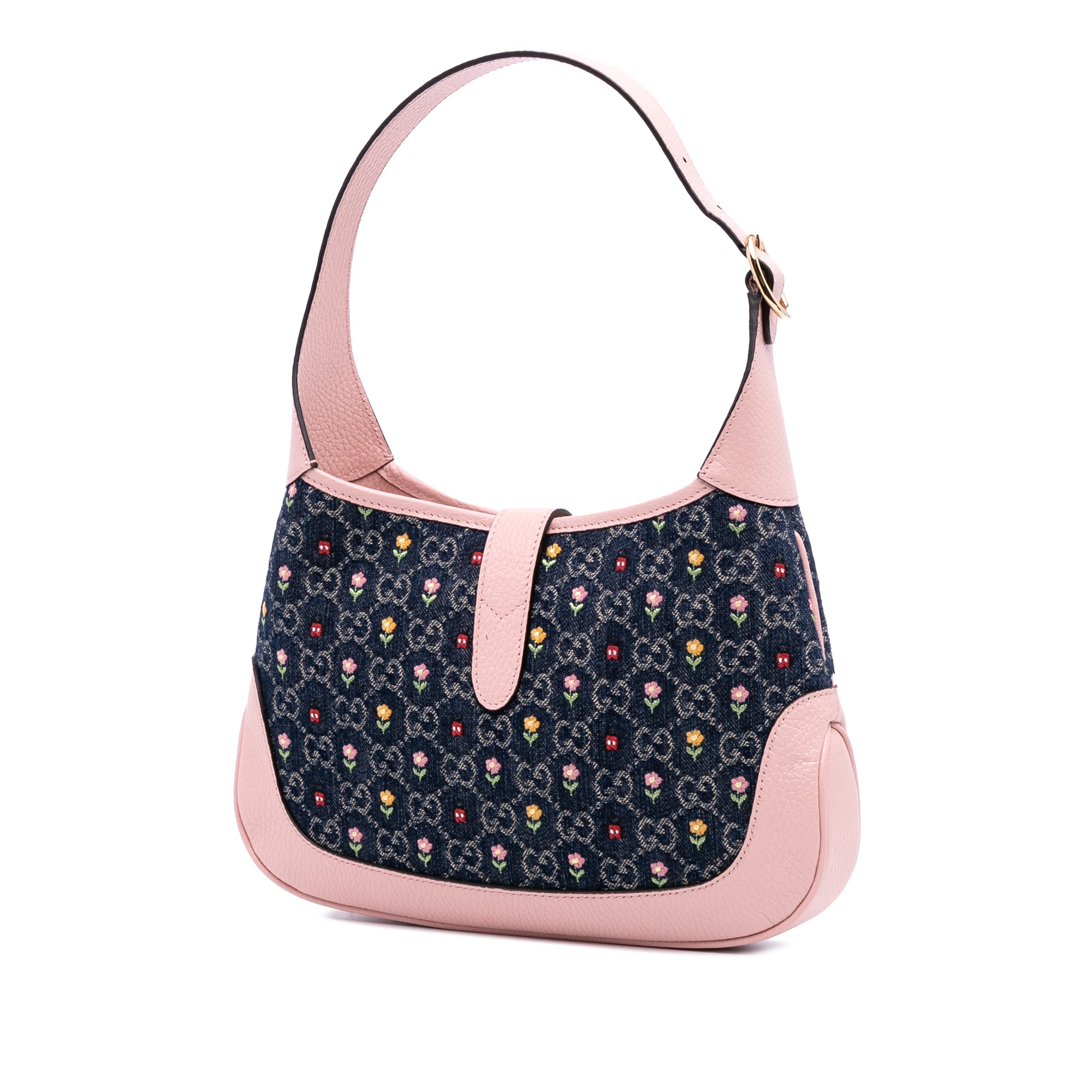 Gucci Limited Edition Small GG Embroidered Denim Floral Jackie 1961 Crossbody