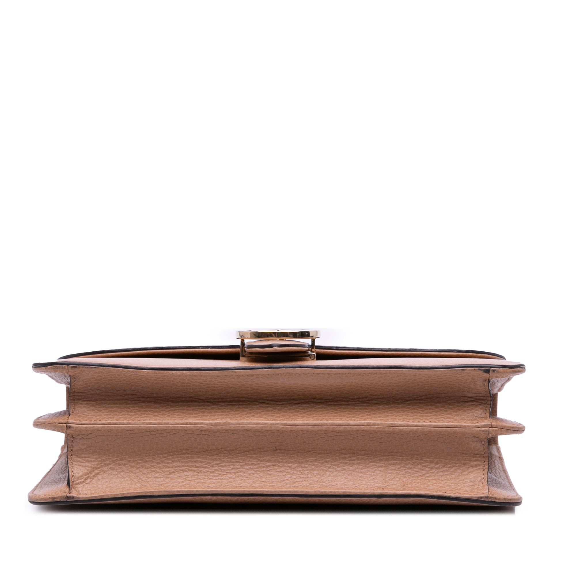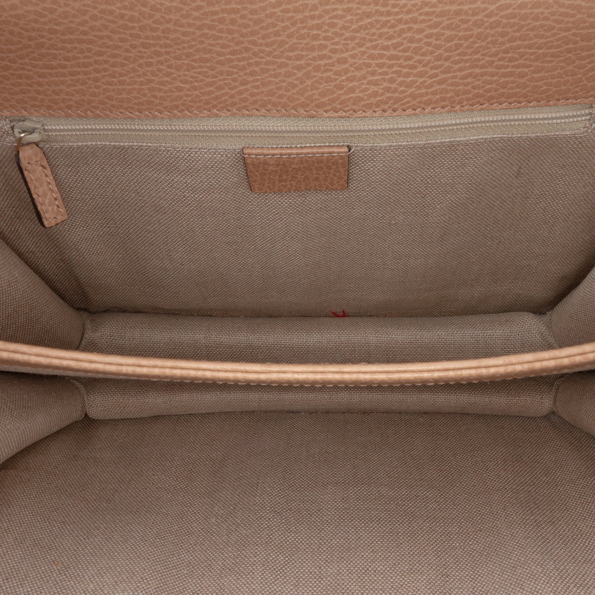 This crossbody bag features a leather body, a chain link strap with leather shoulder guard, a front flap with GG flip-lock closure, and an interior zip pocket. Retail Price: 2100.00