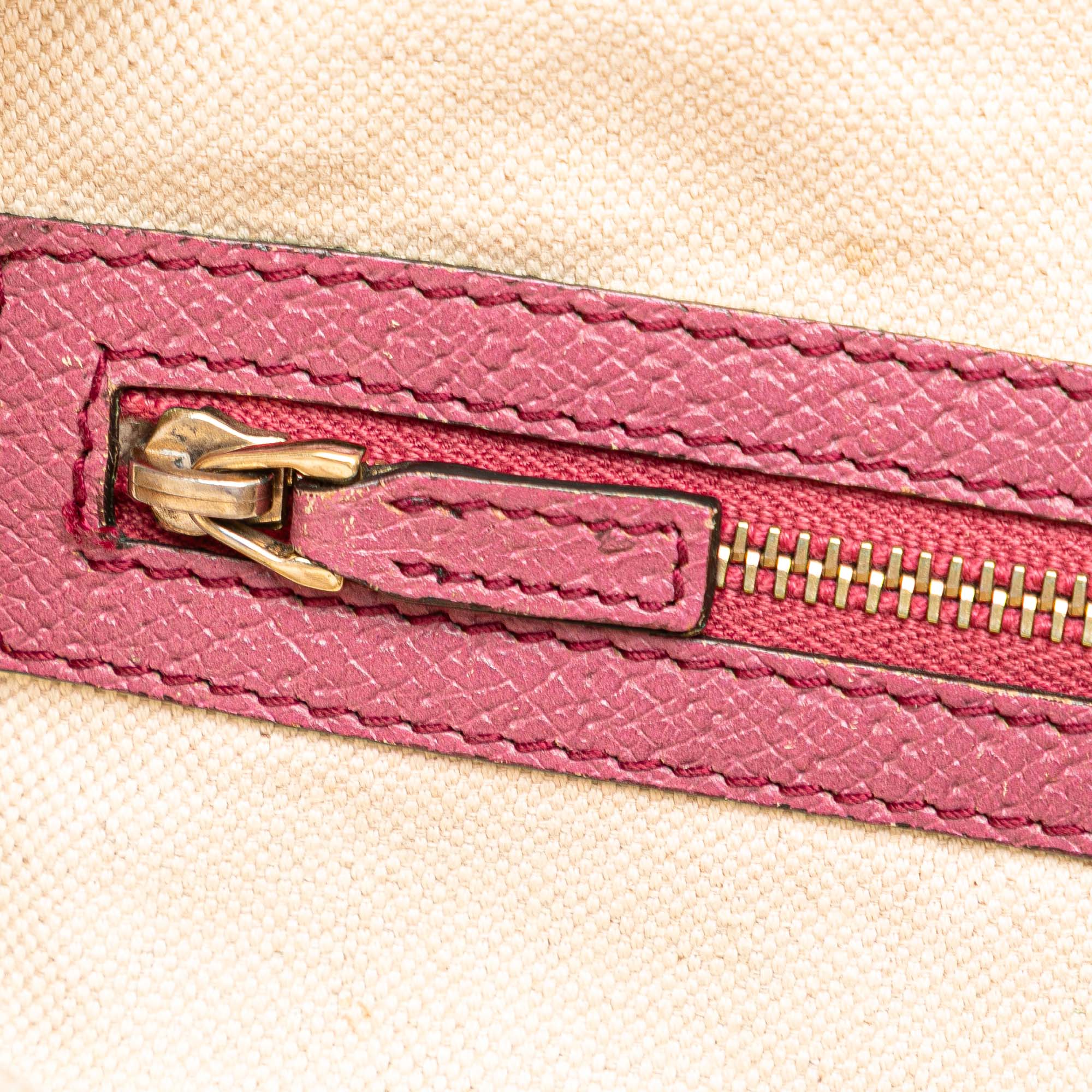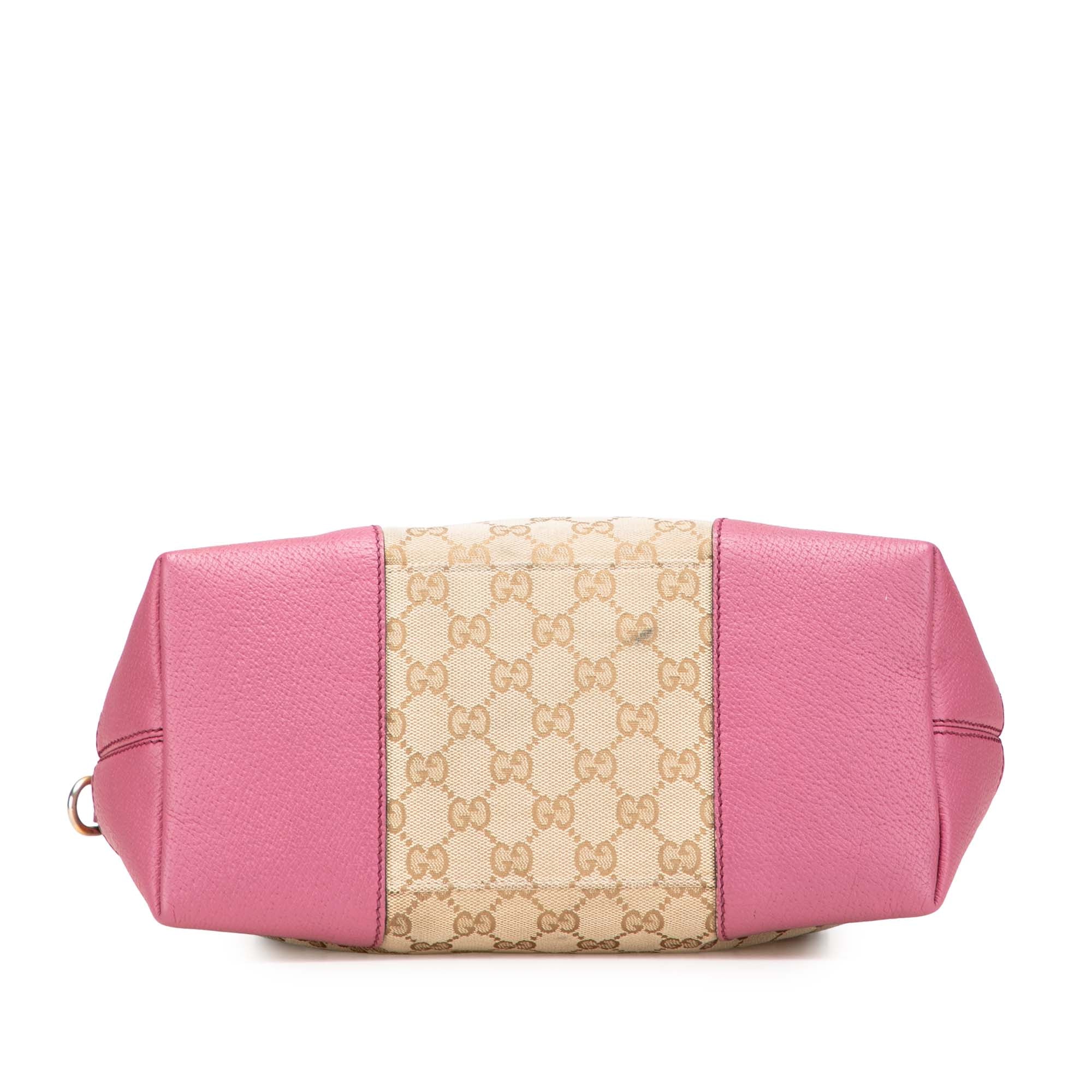 The Bree features a canvas body with leather trim, flat leather handles, a detachable flat leather shoulder strap, a fold over top with magnetic snap closure, and interior zip and slip pockets. Retail Price: 1150.00