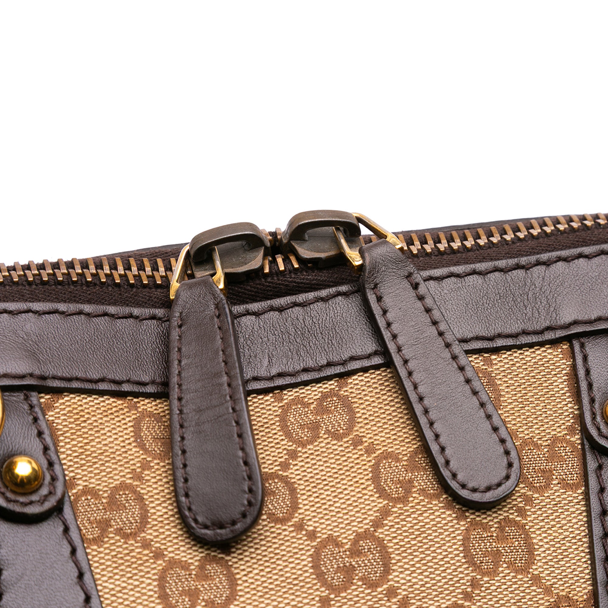 The Scarlett features a canvas body with leather trim, rolled leather handles, a top zip closure, and interior zip and slip pockets. Retail Price: 1295.00