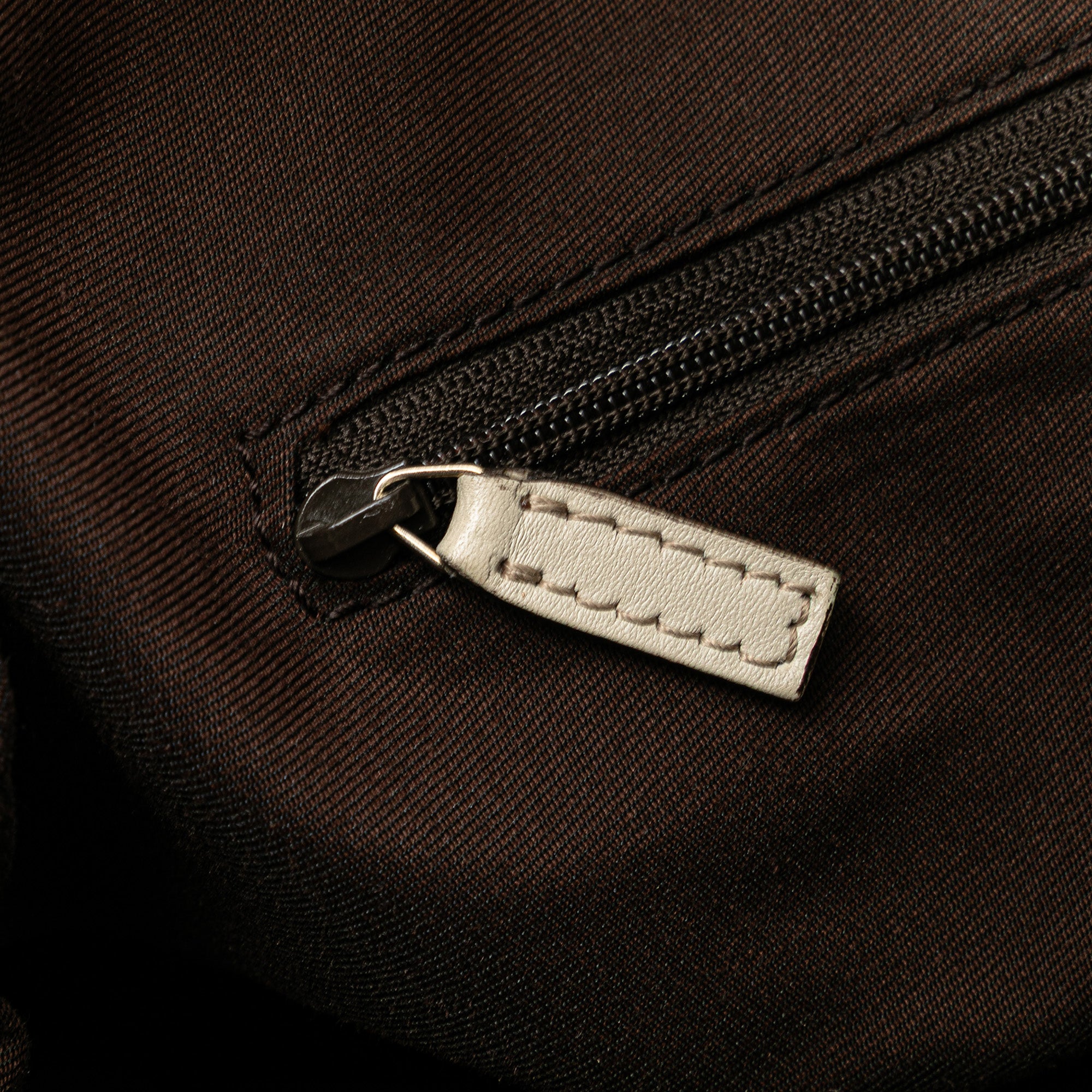This Sukey shoulder bag features a canvas body with leather trim, a flat leather strap, a top zip closure, and interior zip and slip pockets. Retail Price: 995.00