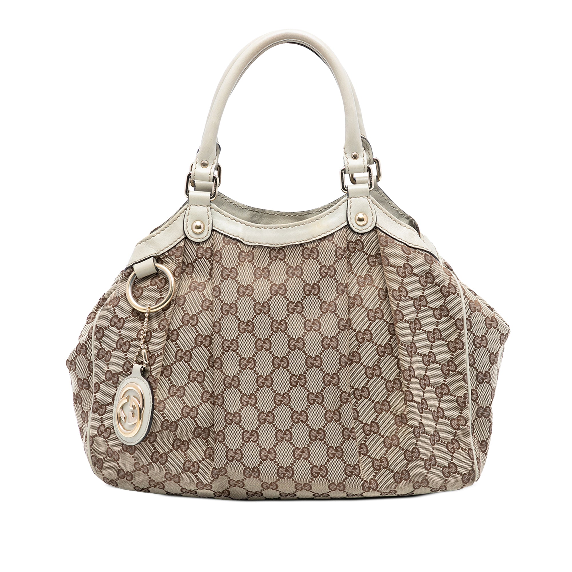 The Sukey tote bag features a canvas body with leather trim, rolled leather handles, an open top with magnetic closure, and an interior zip pocket. Retail Price: 825.00