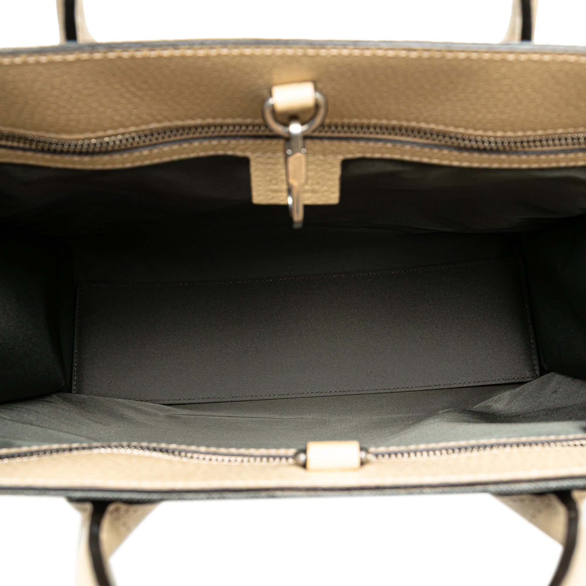 The Off the Grid satchel features a nylon body with leather trim, rolled top handles, a flat leather strap, and a top zip closure. Inclusion: Dust bag, box. Retail Price: 2030.00