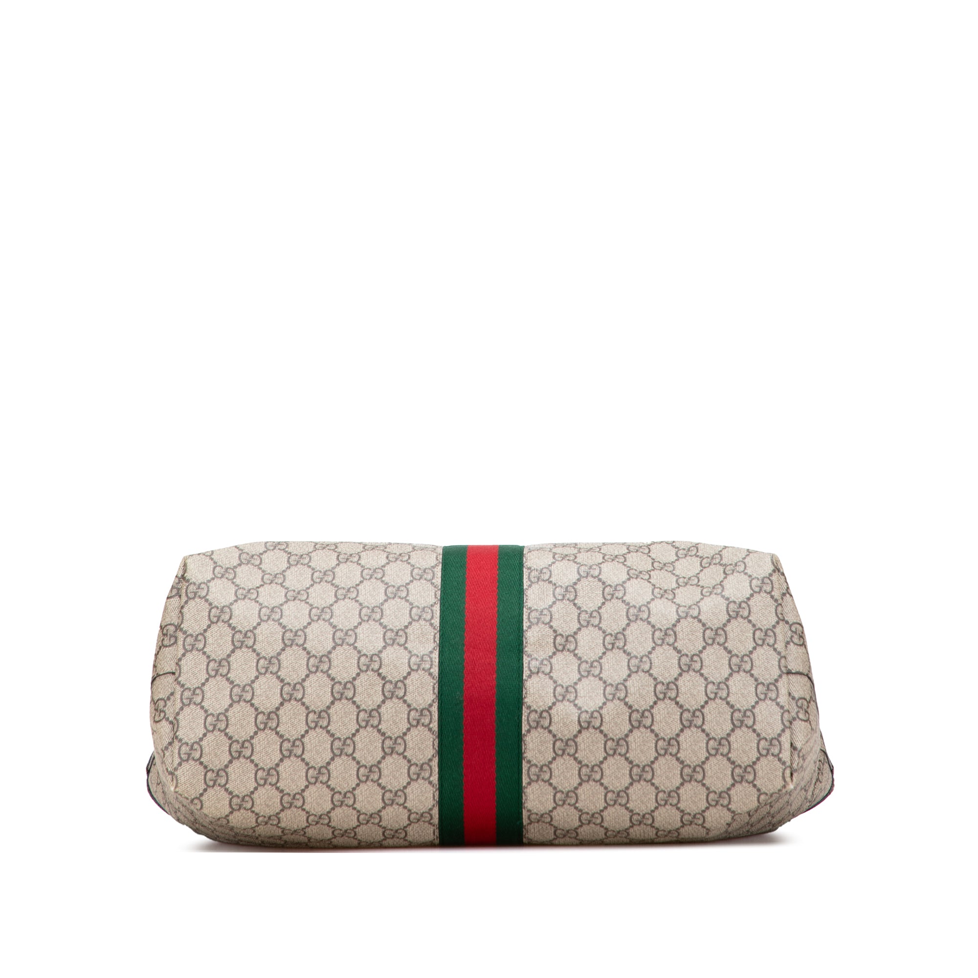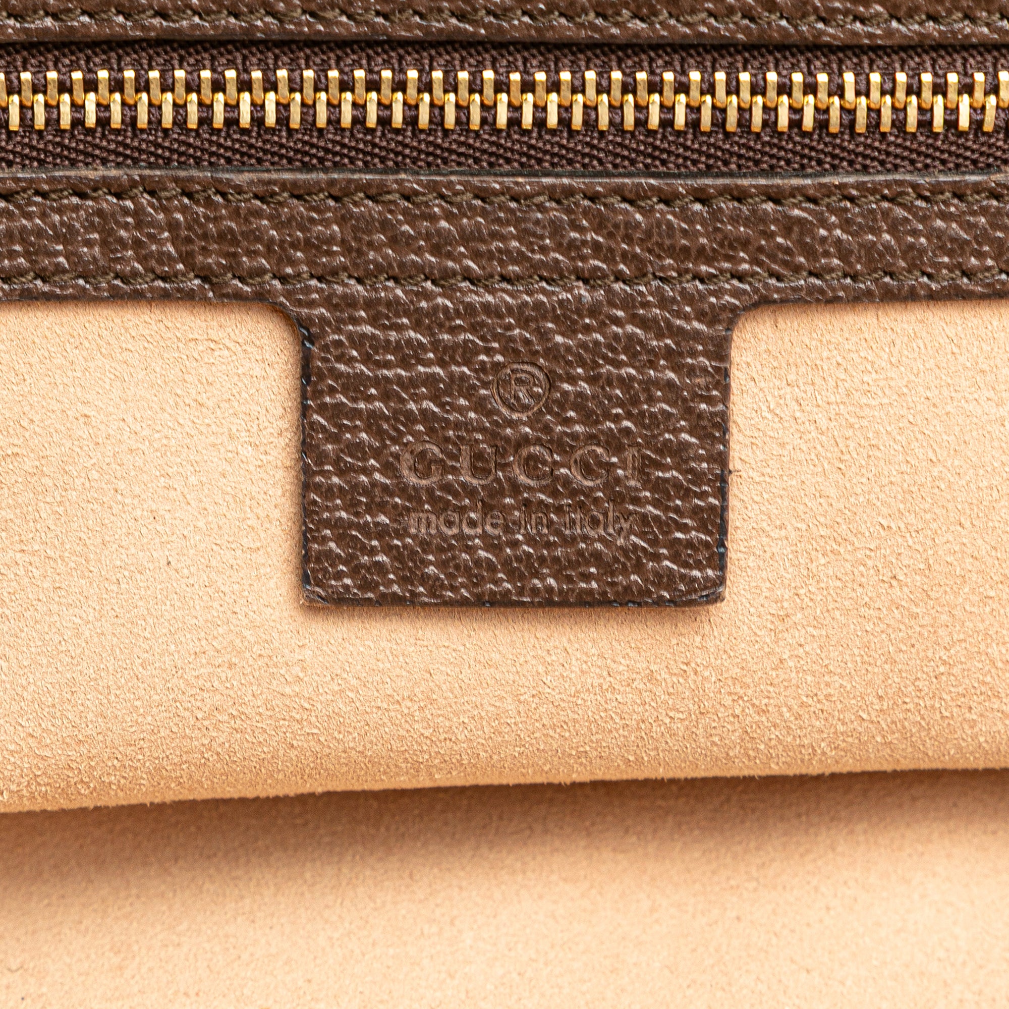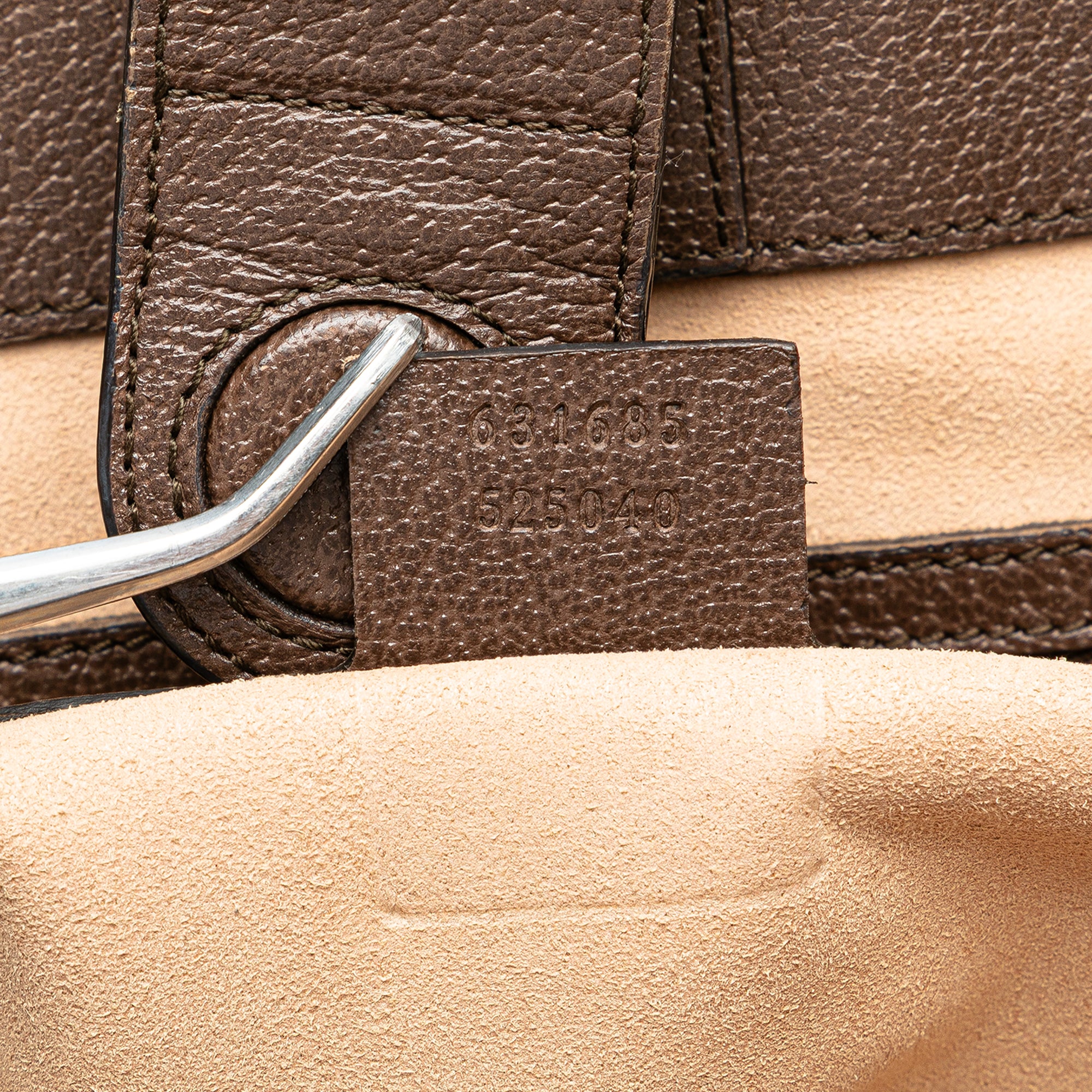 This tote bag features a coated canvas body with leather trim, flat leather shoulder straps, an open top with magnetic snap closure, and interior zip and slip pockets. Inclusion: Dust bag. Retail Price: 1750.00