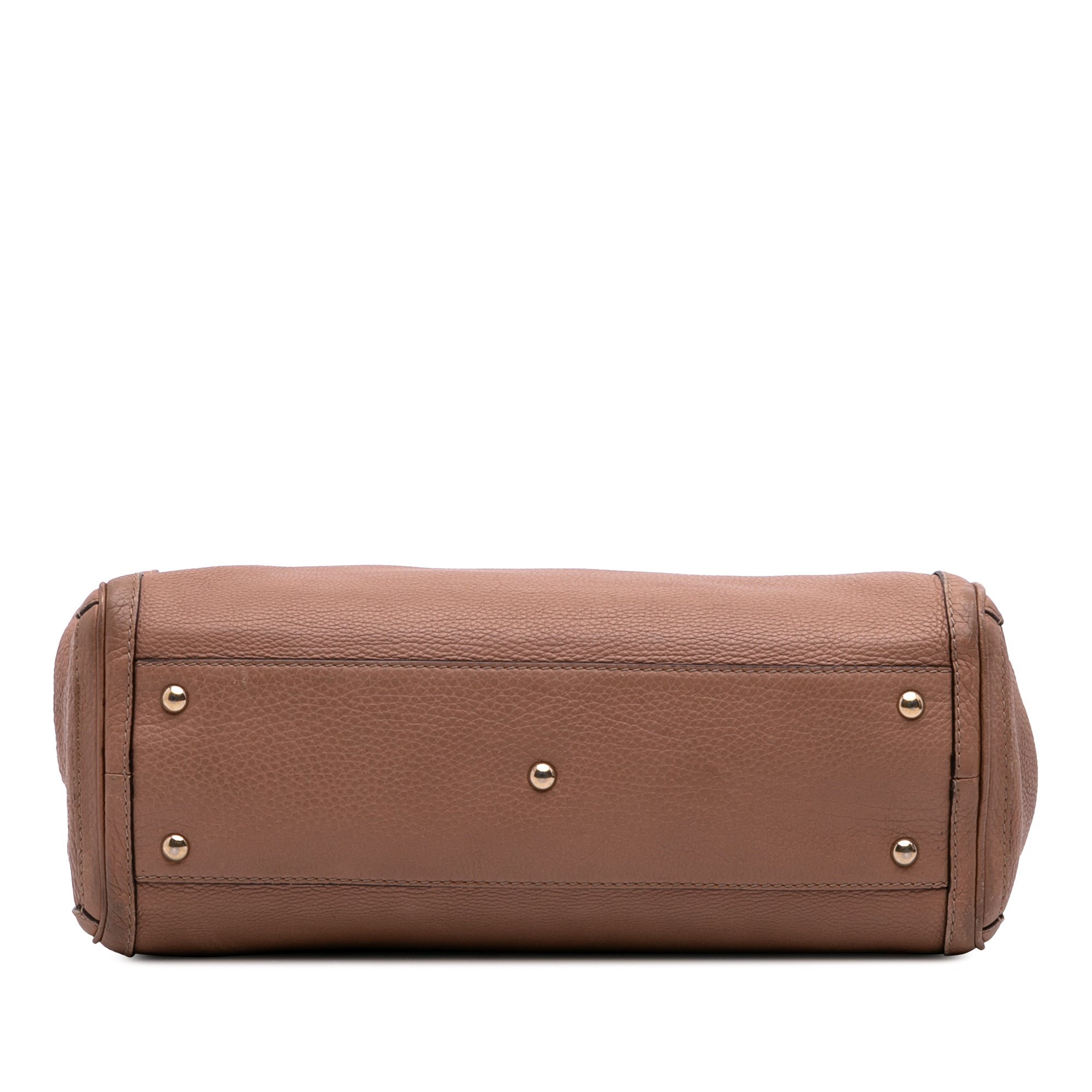 The Bella tote bag features a leather body, braided straps, an open top with lobster clasp closure, an interior zip compartment, and interior zip and slip pockets. Retail Price: 1980.00