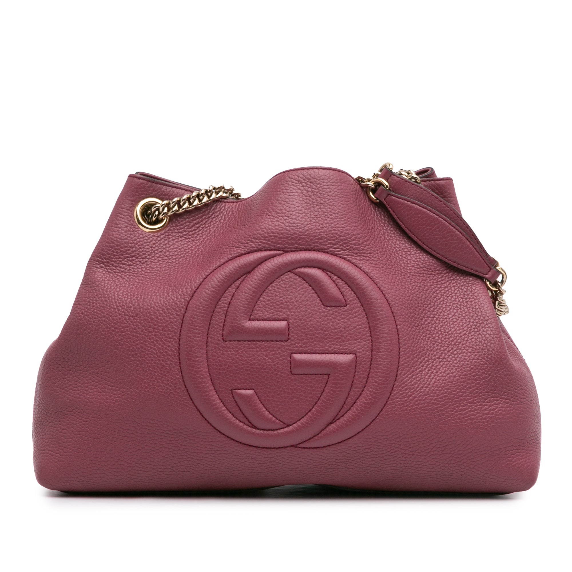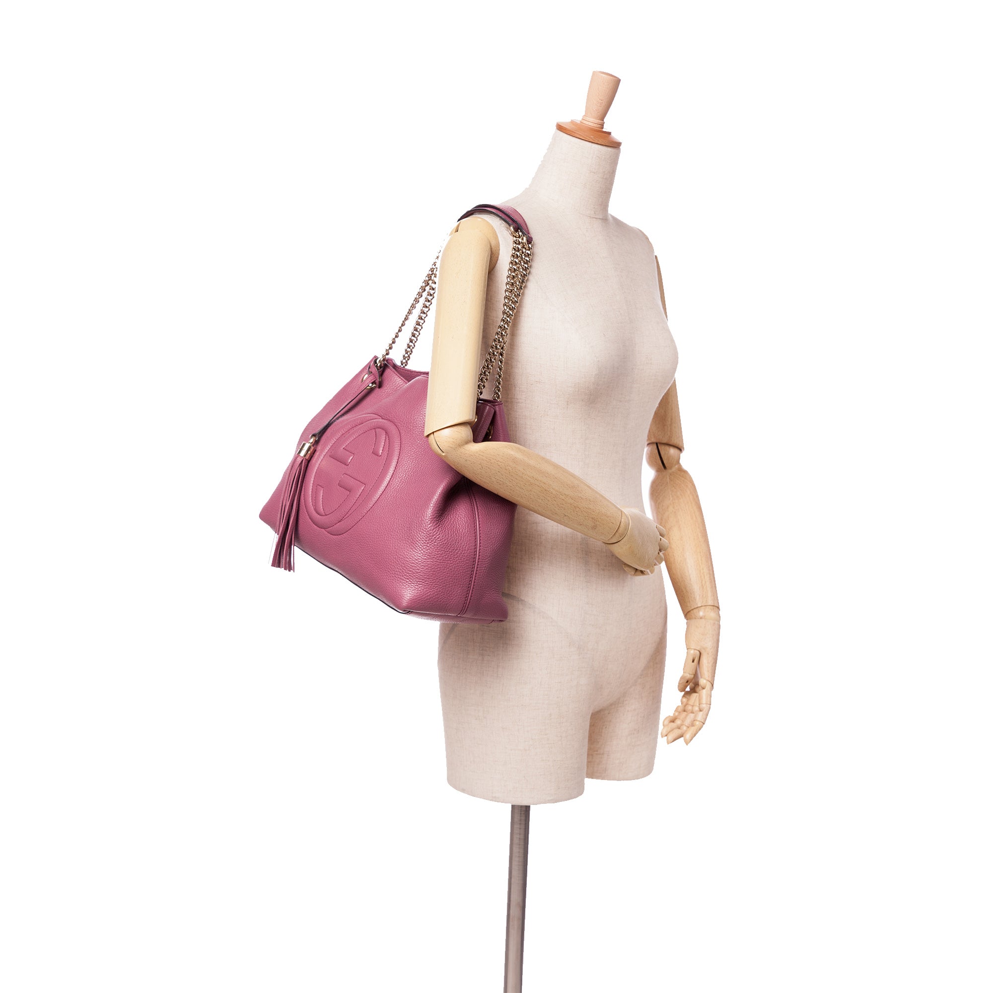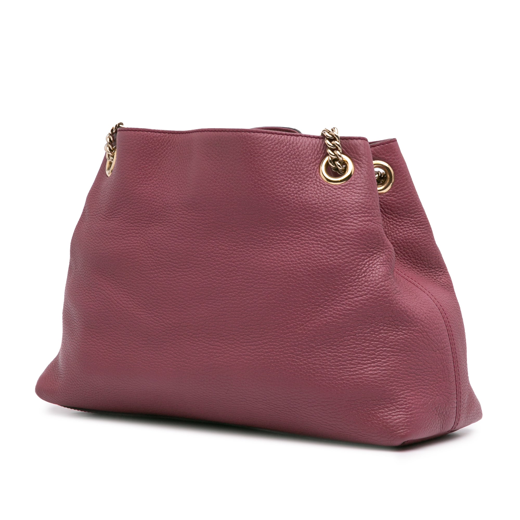 The Soho Chain features a leather body, chain link straps with leather guard, an open top with a lobster claw closure, and interior zip and slip pockets. Retail Price: 1425.00