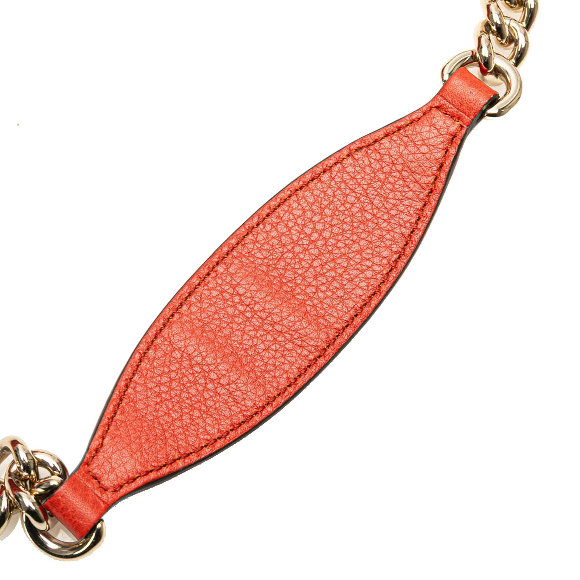 The Soho features a leather body, a curb chain strap, a top zip closure, and interior zip and slip pockets. Retail Price: 1250.00