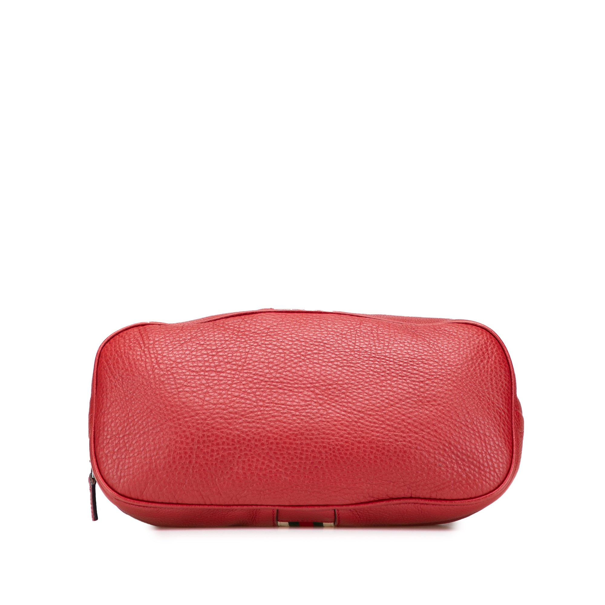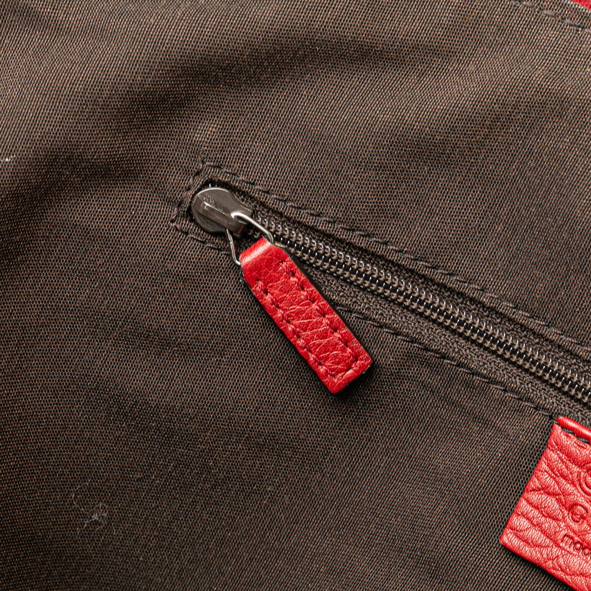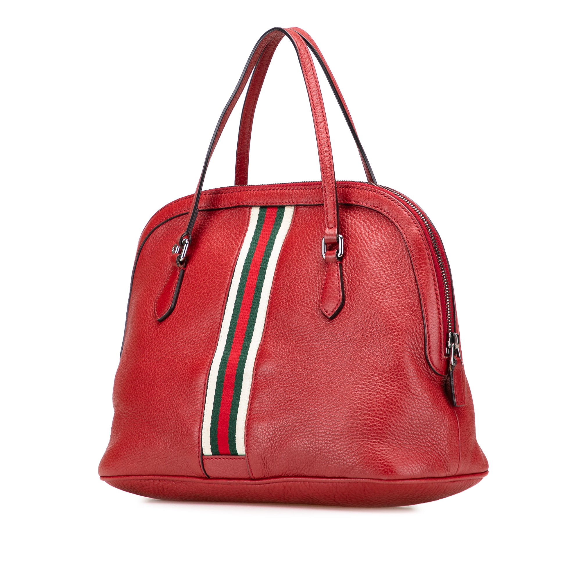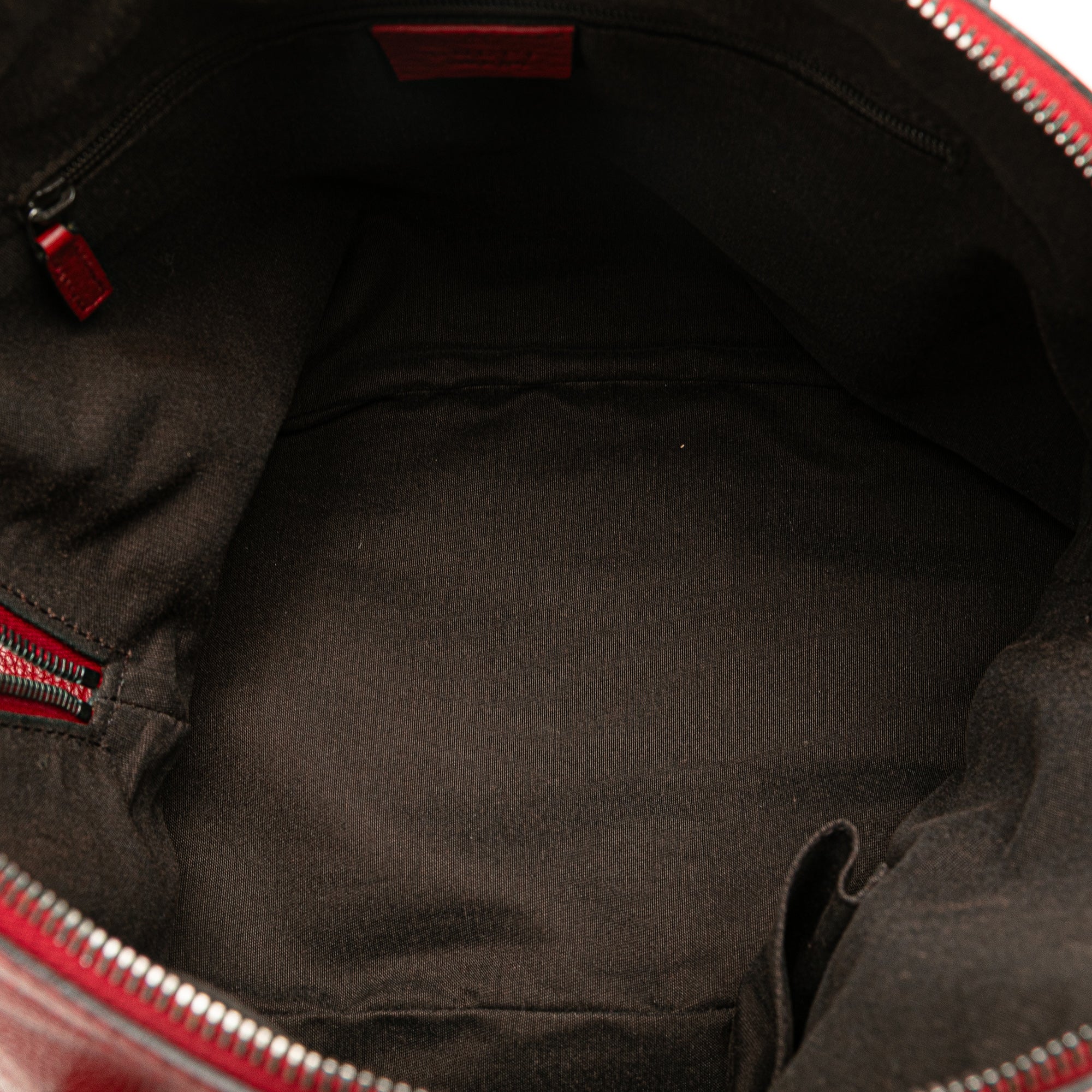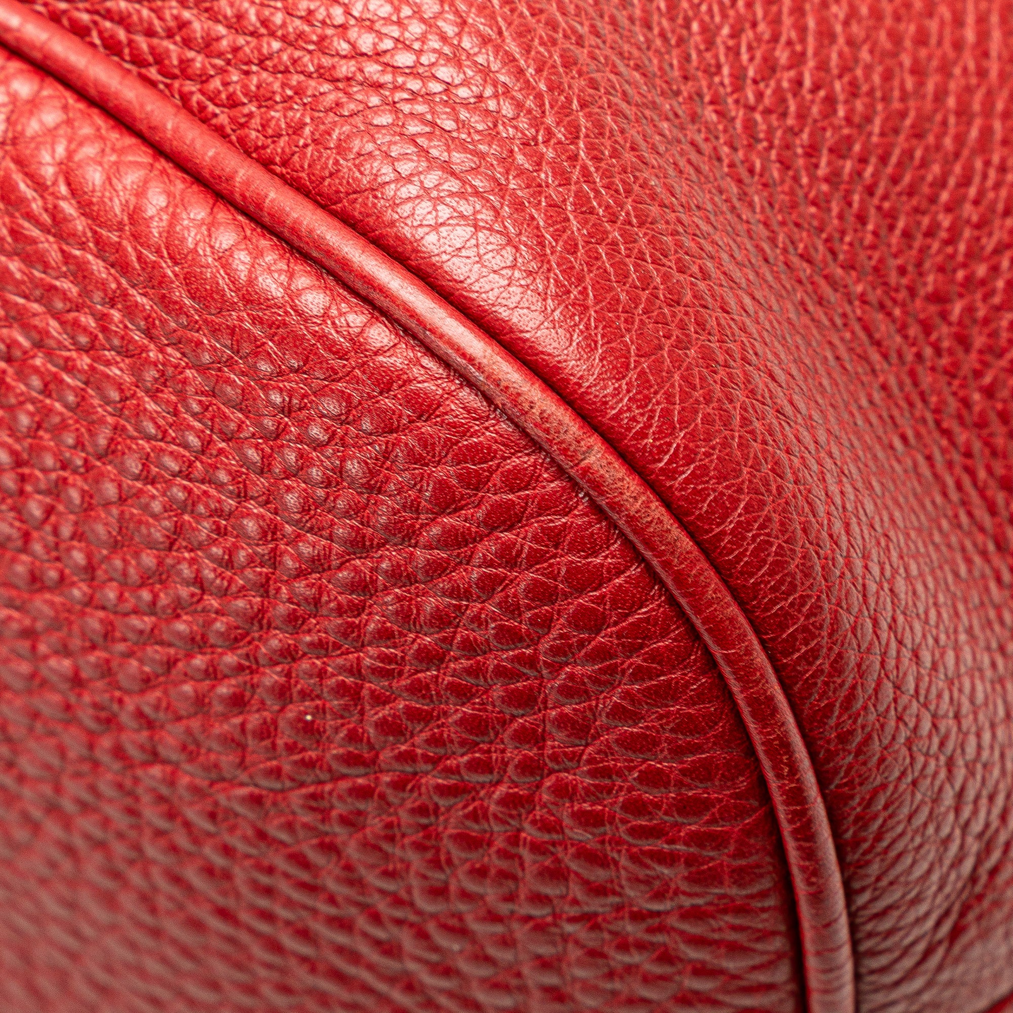 This satchel features a leather body, flat leather handles, a detachable flat leather strap, a top zip closure, and interior zip and slip pockets. Retail Price: 1250.00