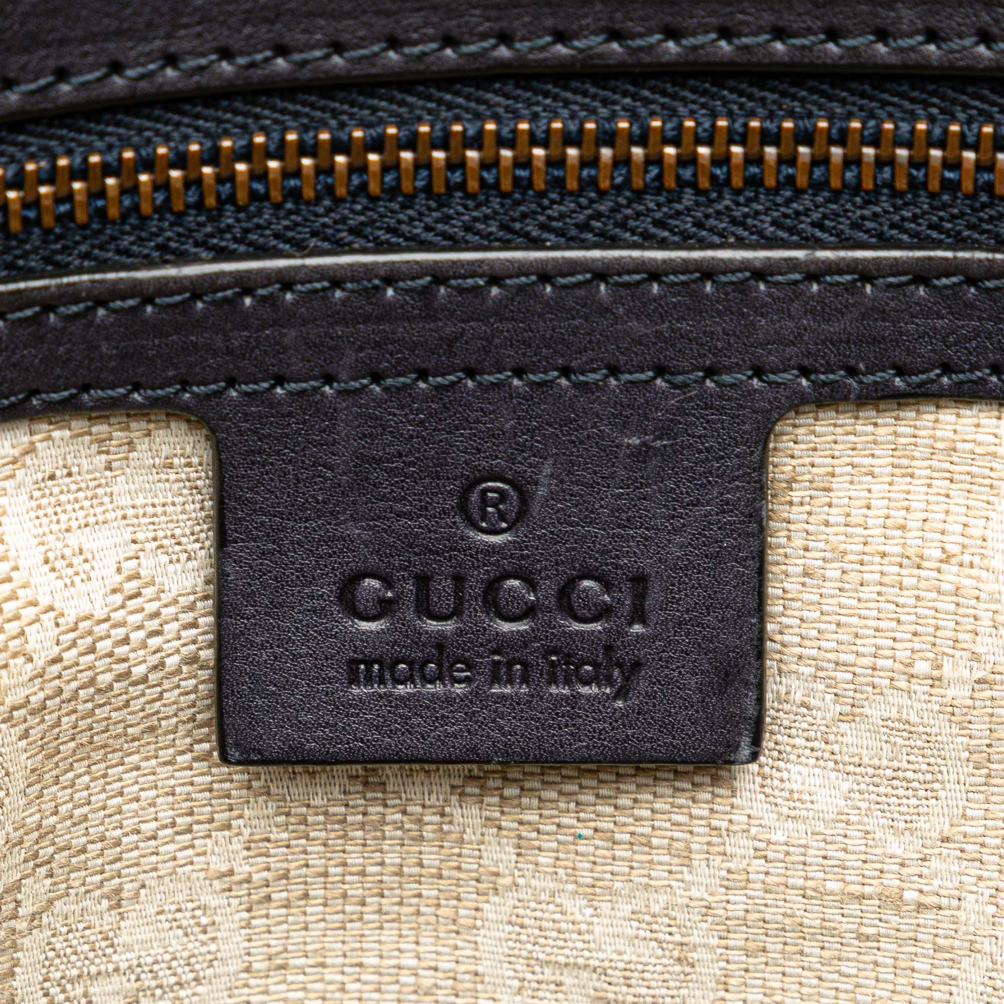 This satchel features a leather body with web canvas detail, flat leather handles, a detachable leather strap, a top zip closure, and interior zip and slip pockets. Retail Price: 1435.00