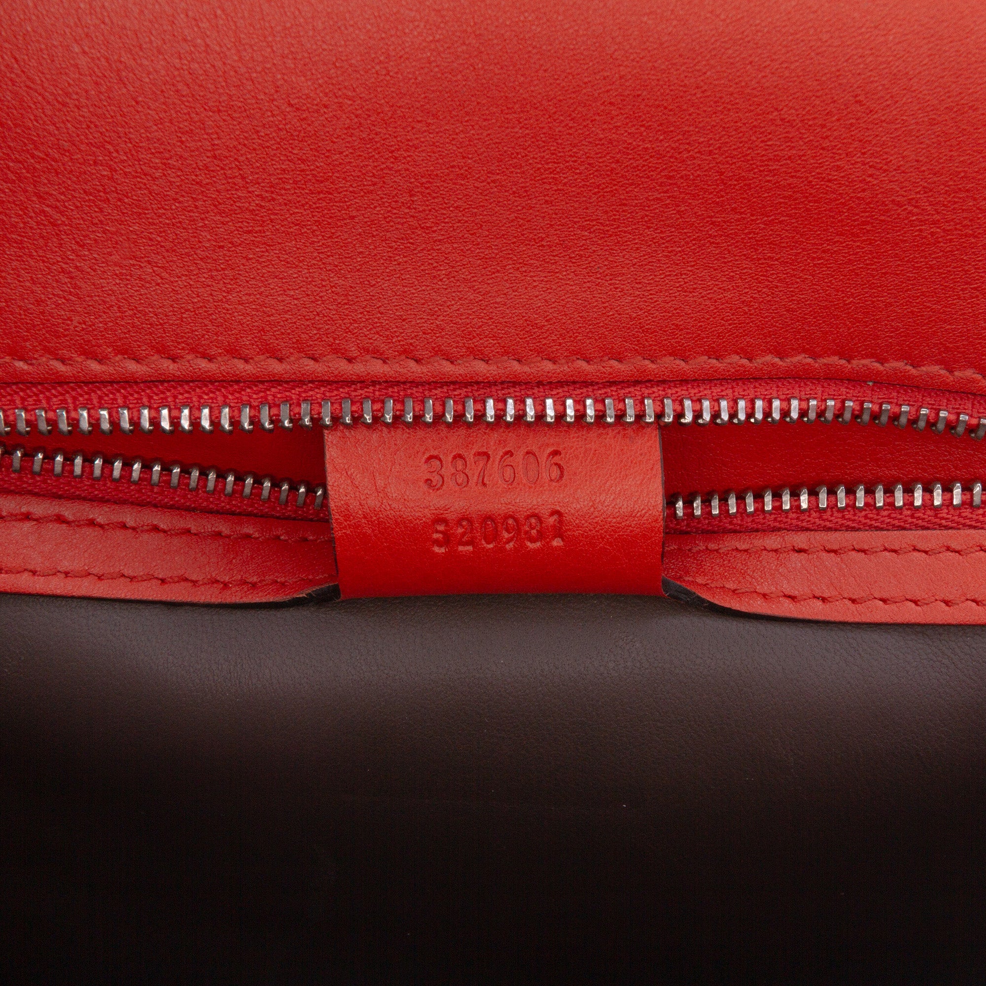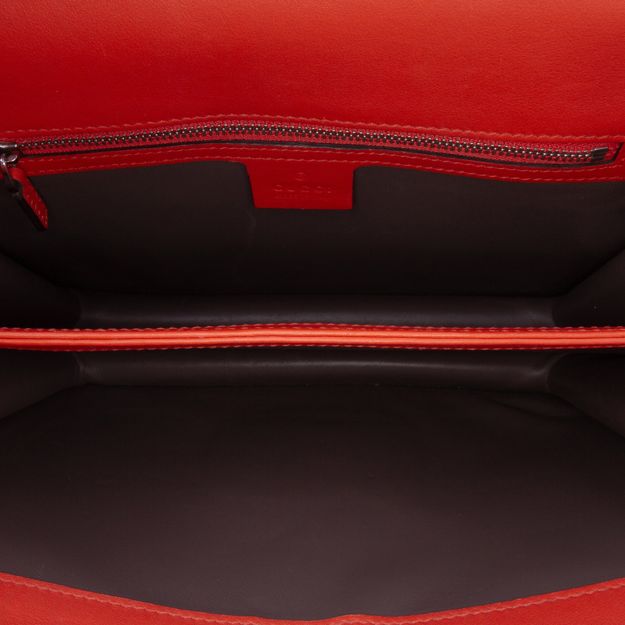 This crossbody bag features a leather body, a chain strap with leather guard, a flap with GG flip-lock closure, and an interior zip pocket. Retail Price: 2100.00
