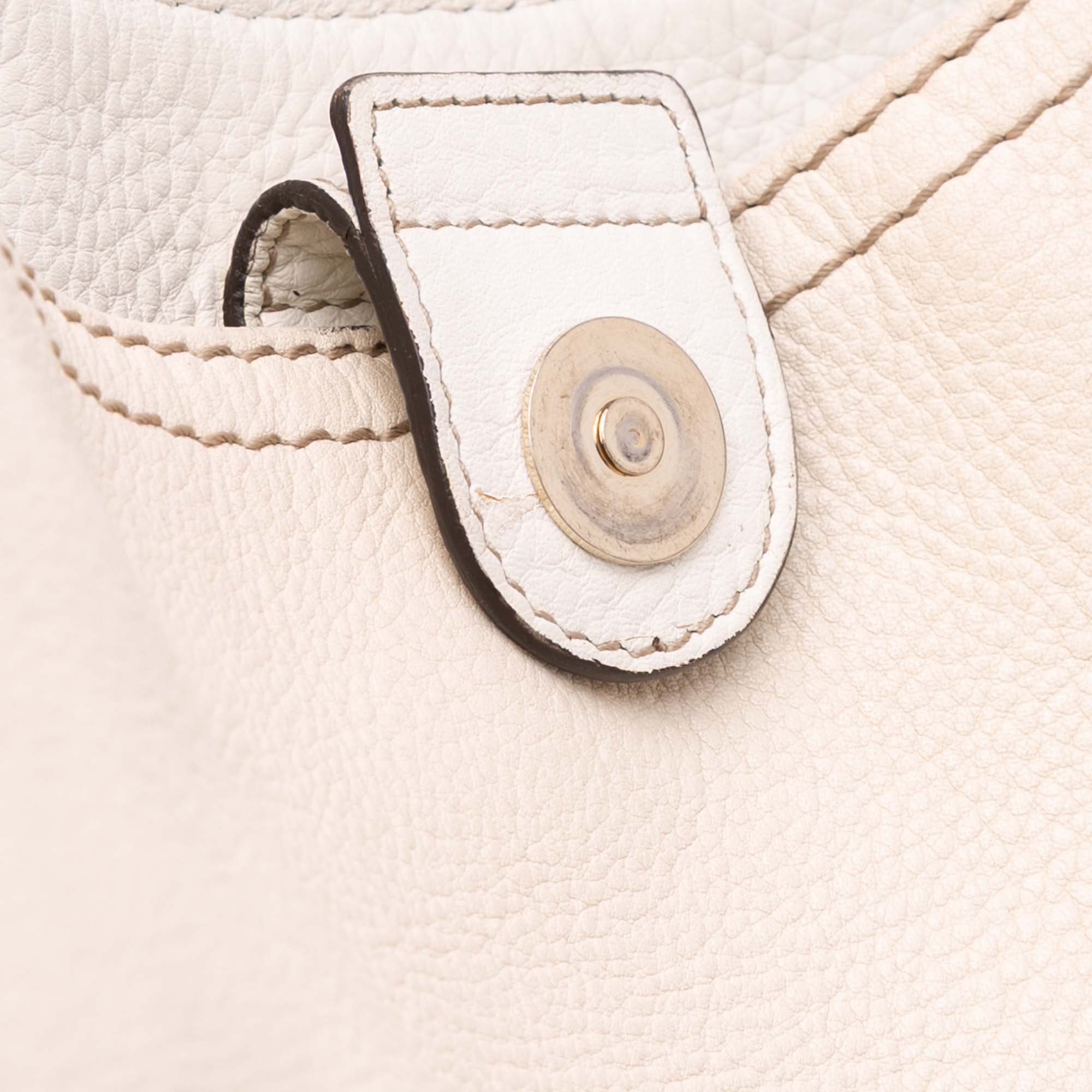 The Heritage bag features a leather body, a flat leather strap, an open top with magnetic snap closure, and interior zip and slip pockets. Retail Price: 1460.00
