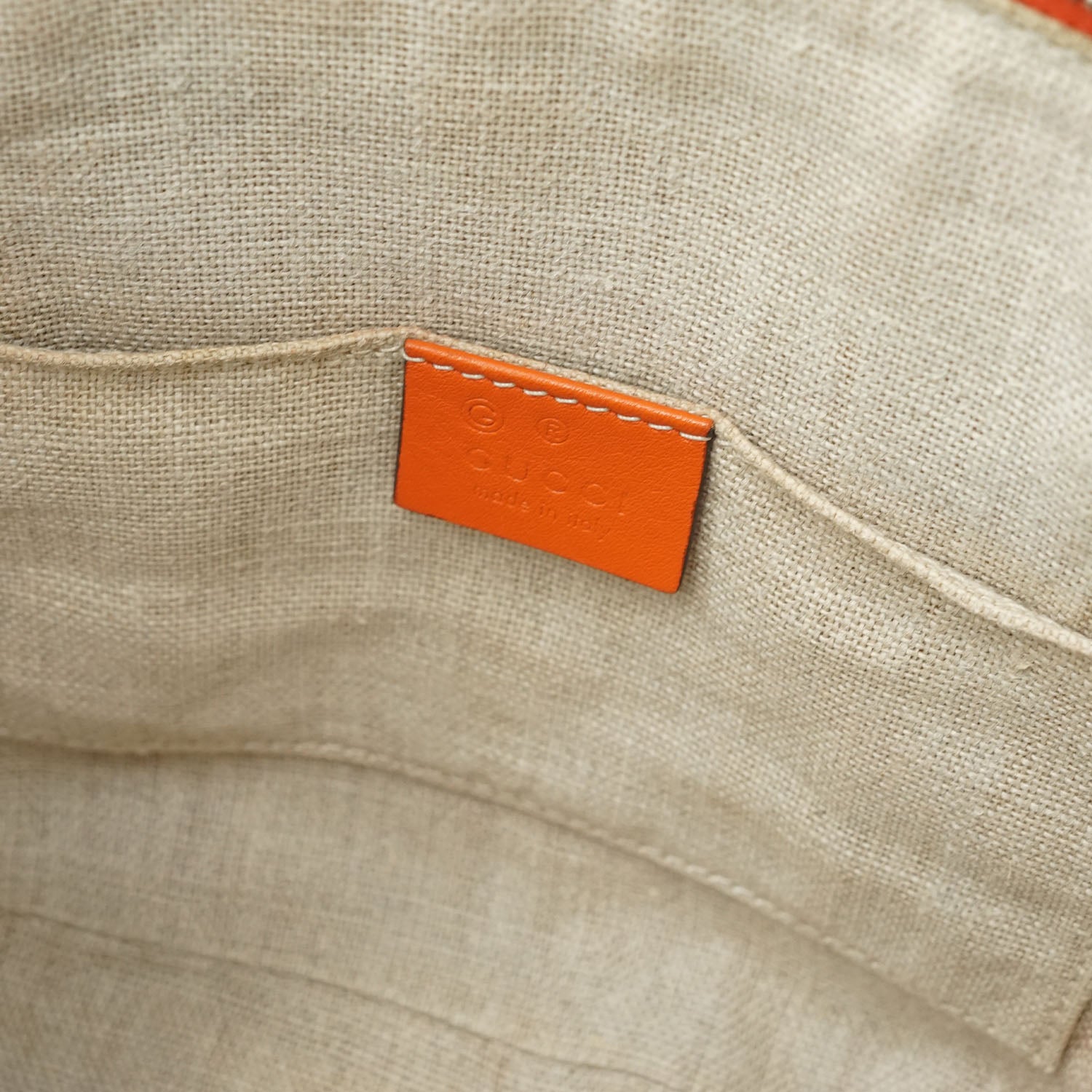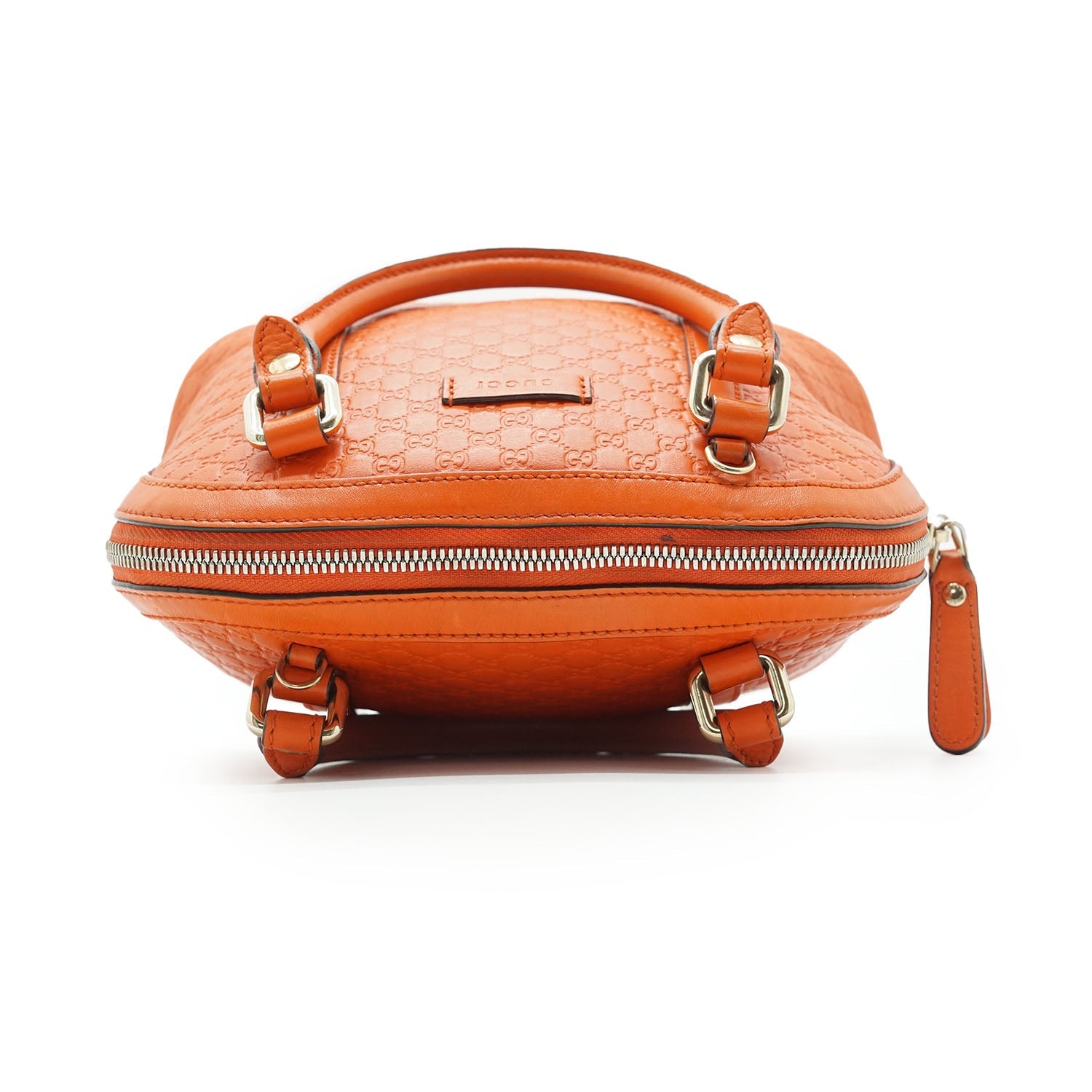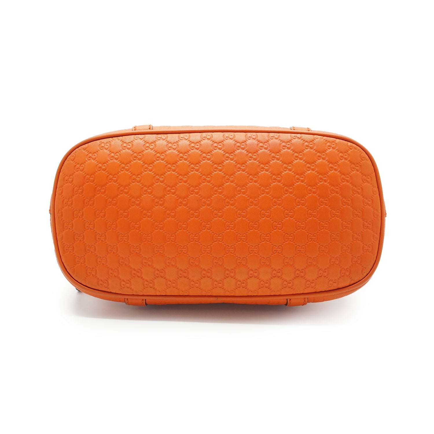 Microguccissima Dome 2way Handbag Orange LeatherDepth: 12.5cmHeight: 18cmWidth: 24cmShoulder Drop: 45cmHand Drop: 10cmOutside Rank: ABInside Rank: BStain: Some yellow stains on the inside fabric, small stain at the top near the zipperInclude: Leather shoulder strapSerial code: 449654 498075