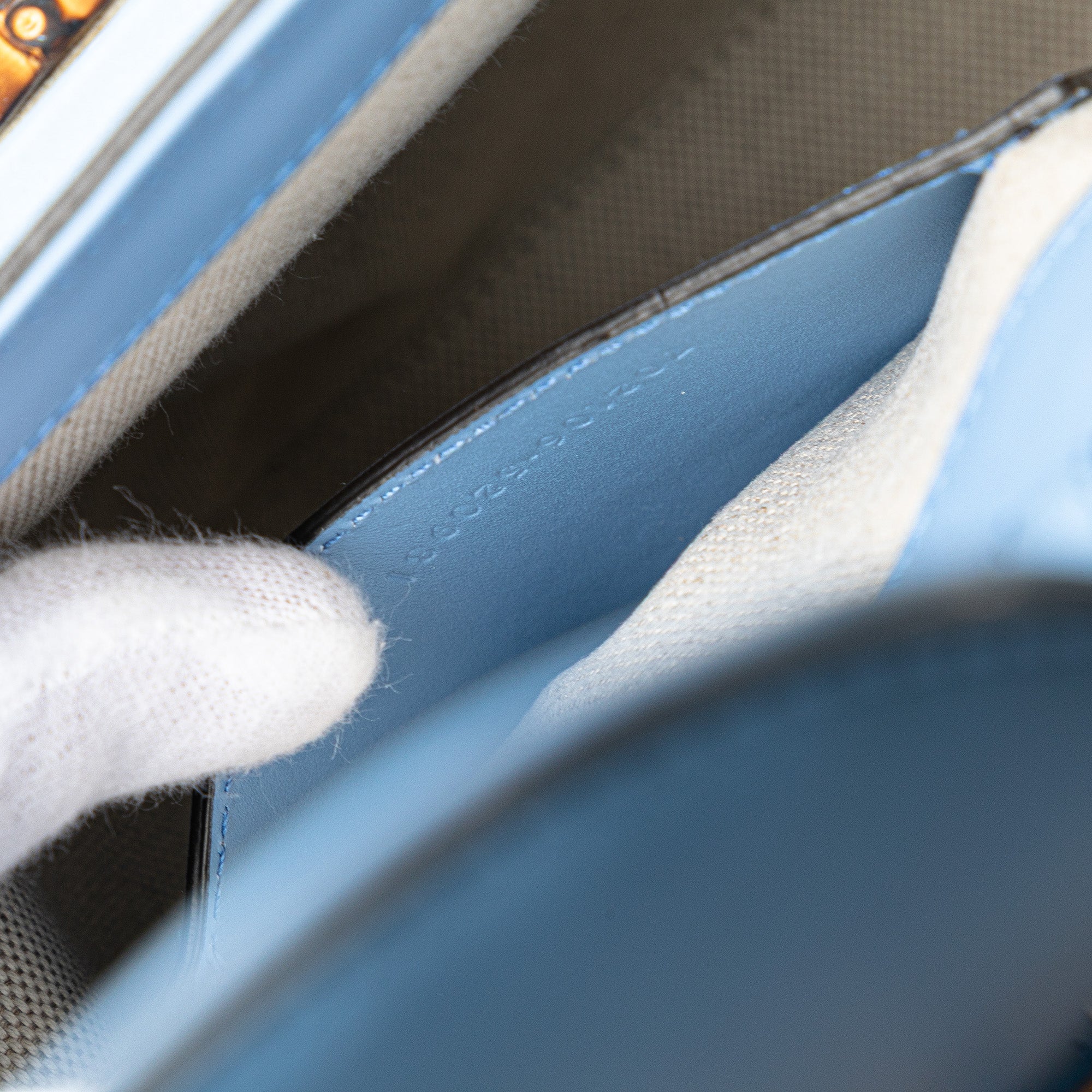 This satchel features a calfskin body, a bamboo top handle, an adjustable and detachable flat leather shoulder strap, a flap with bamboo turn lock closure, and an interior slip pocket. Inclusion: Dust bag. Retail Price: 2532.00