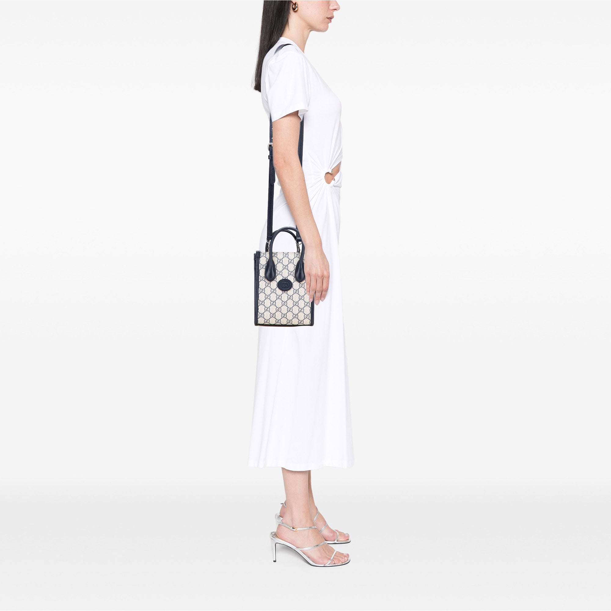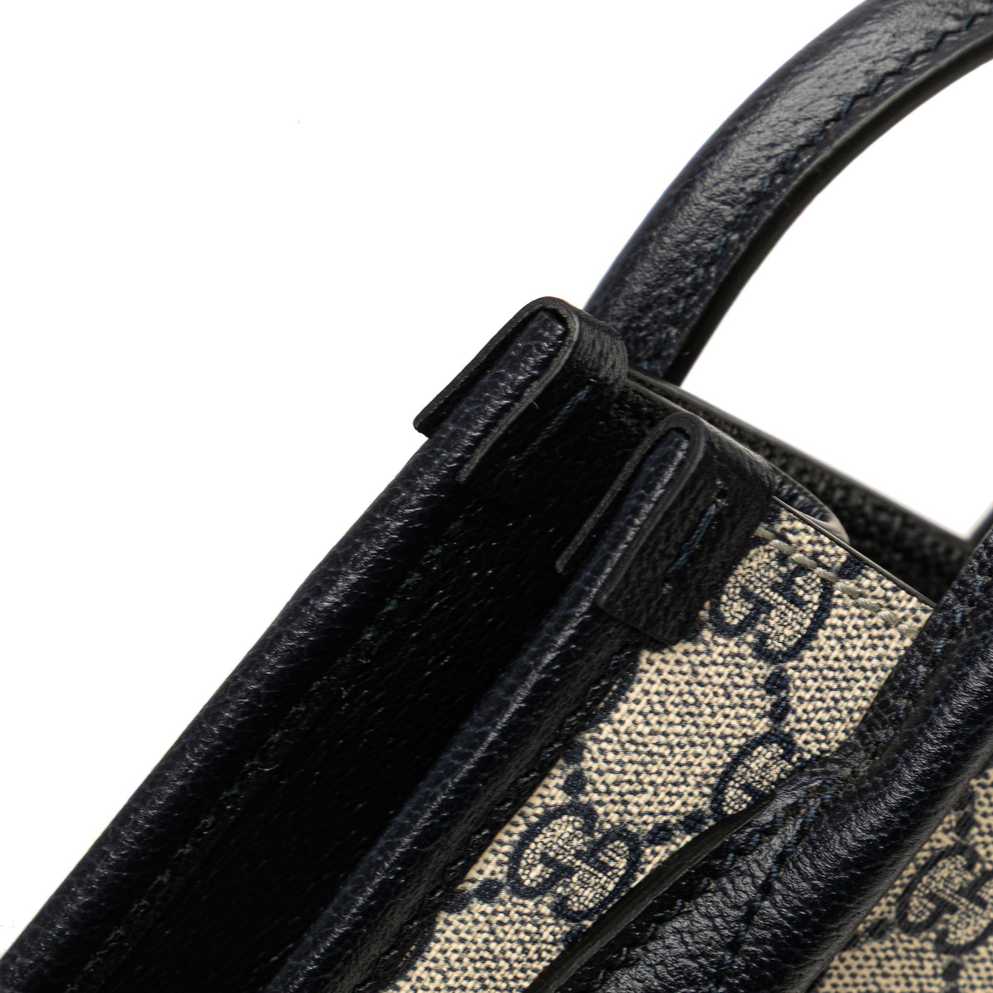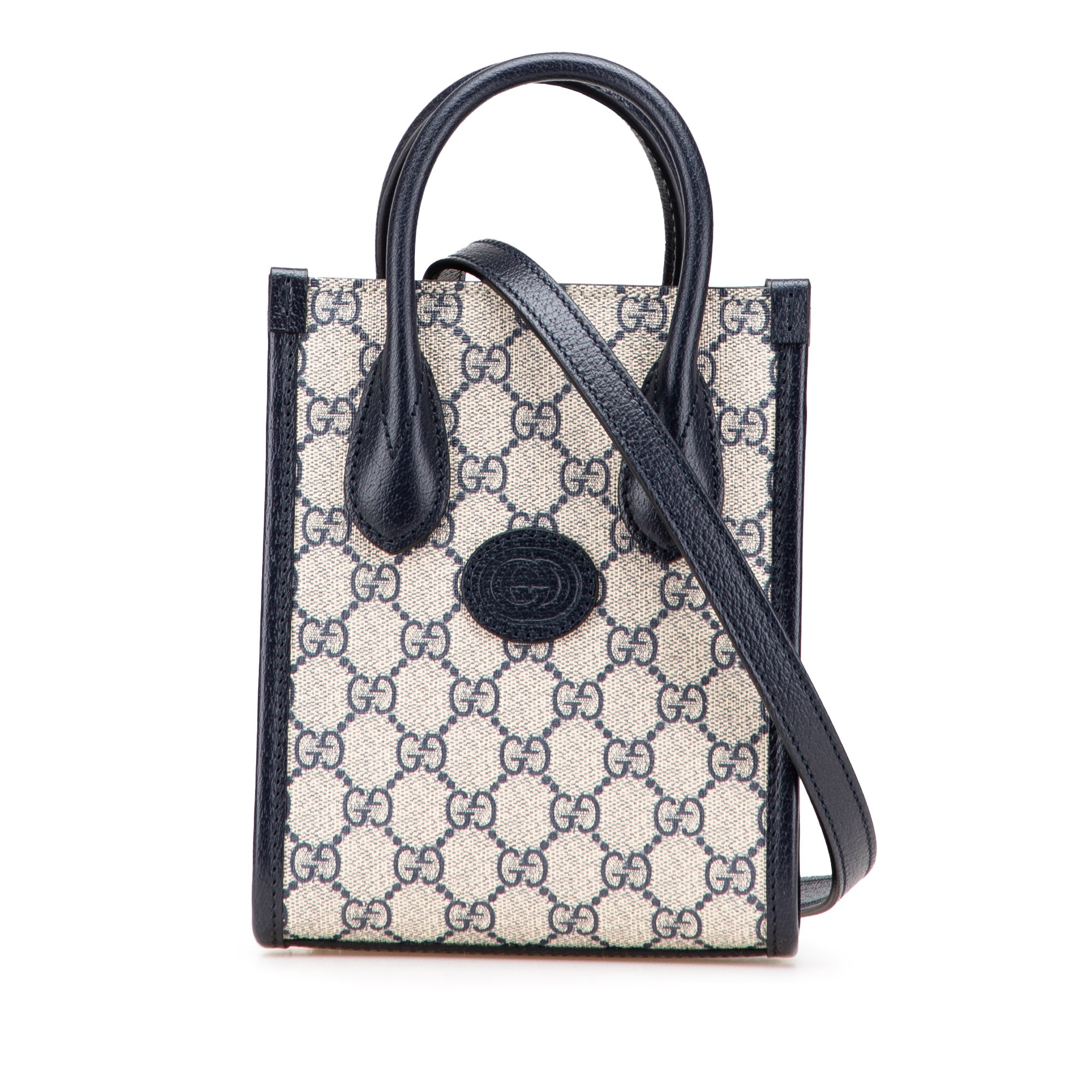 This satchel features a coated canvas body with leather trim, rolled leather handles, a detachable flat leather strap, an open top, and an interior slip pocket. Retail Price: 2140.00