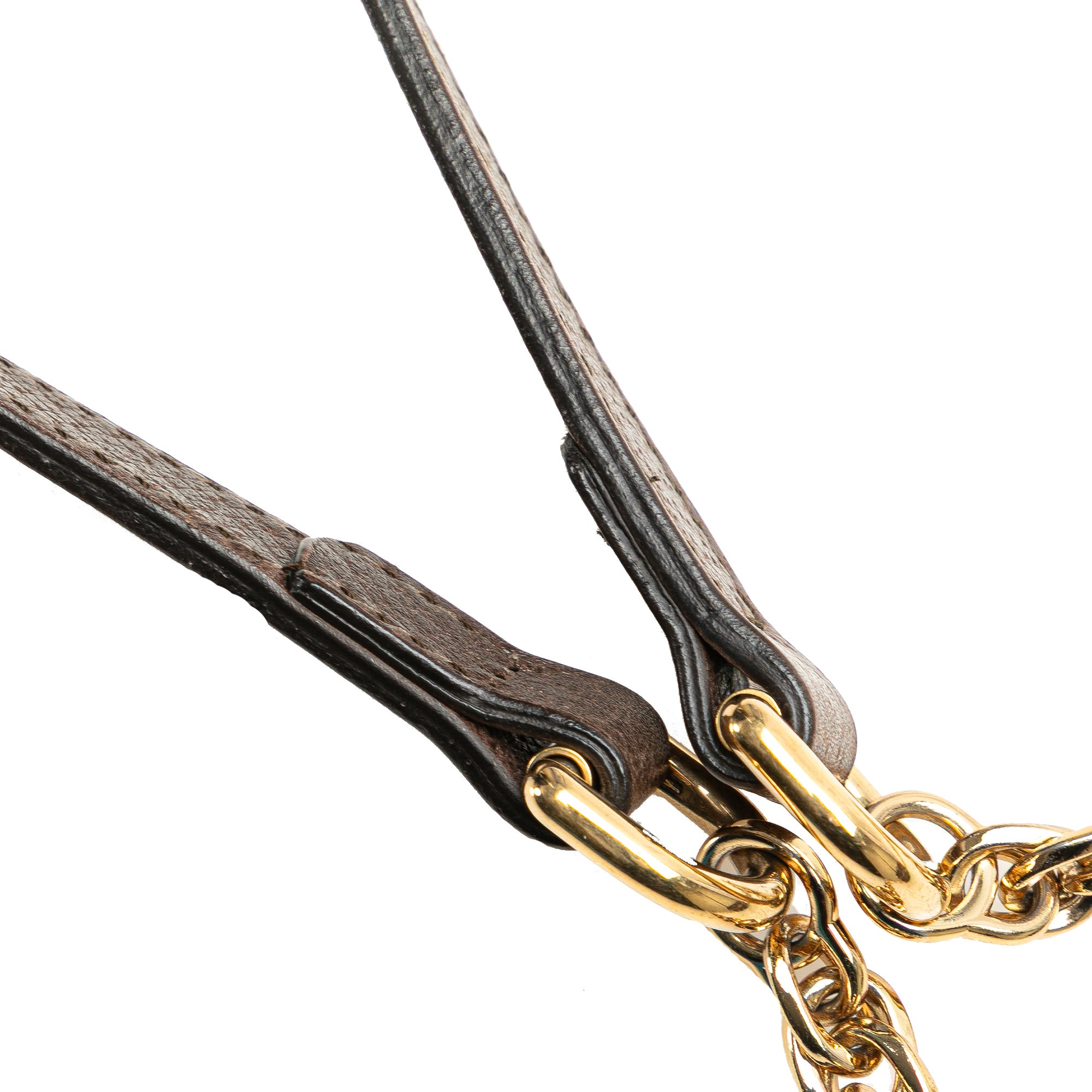 The Ophidia crossbody features a coated canvas body with leather and web trim, a curb chain and leather strap, and a top zip closure. Retail Price: 1650.00