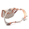This belt bag features a coated canvas body with leather trim, an adjustable flat waist strap, a front flap with bamboo twist lock closure, and an interior slip pocket. Retail Price: 2500.00