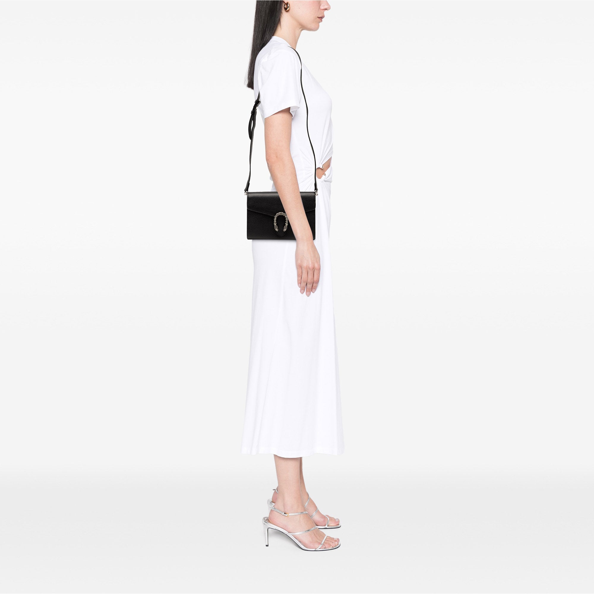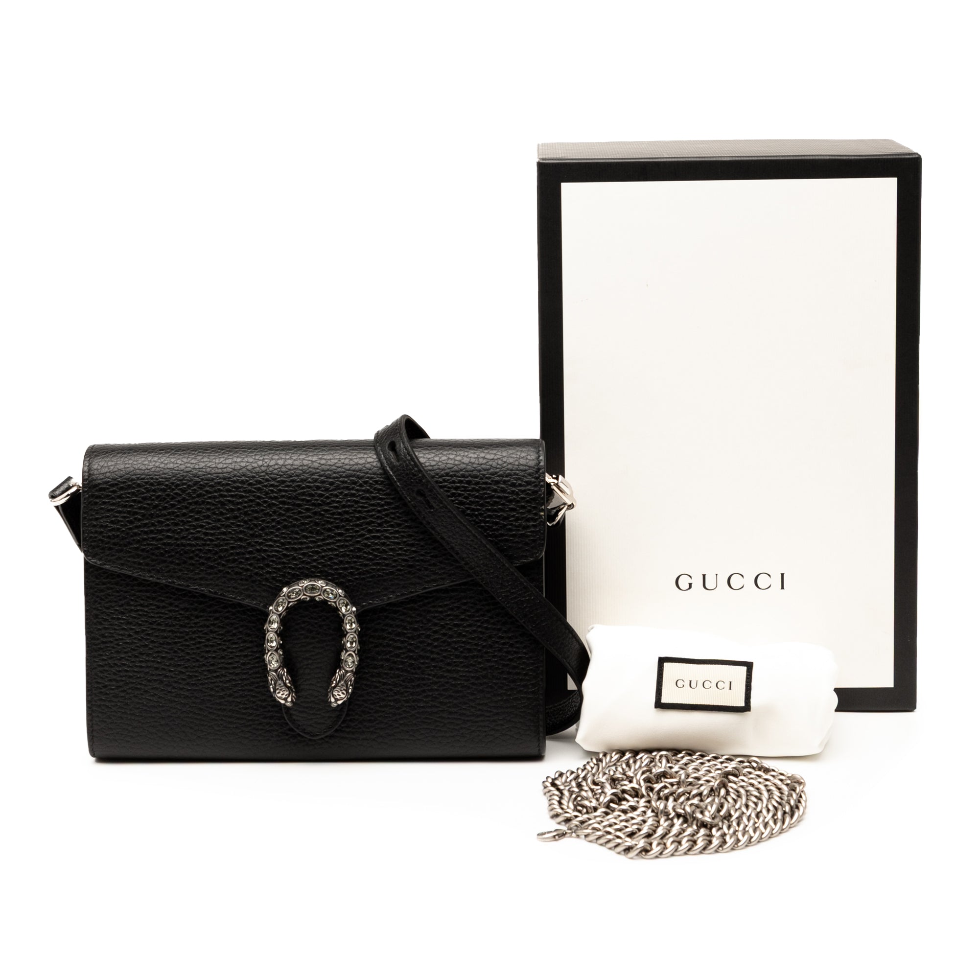 The Dionysus features a leather body, a chain link shoulder strap, a front flap with snap button closure, and interior zip and slip pockets. Inclusion: Dust bag, box. Retail Price: 1800.00