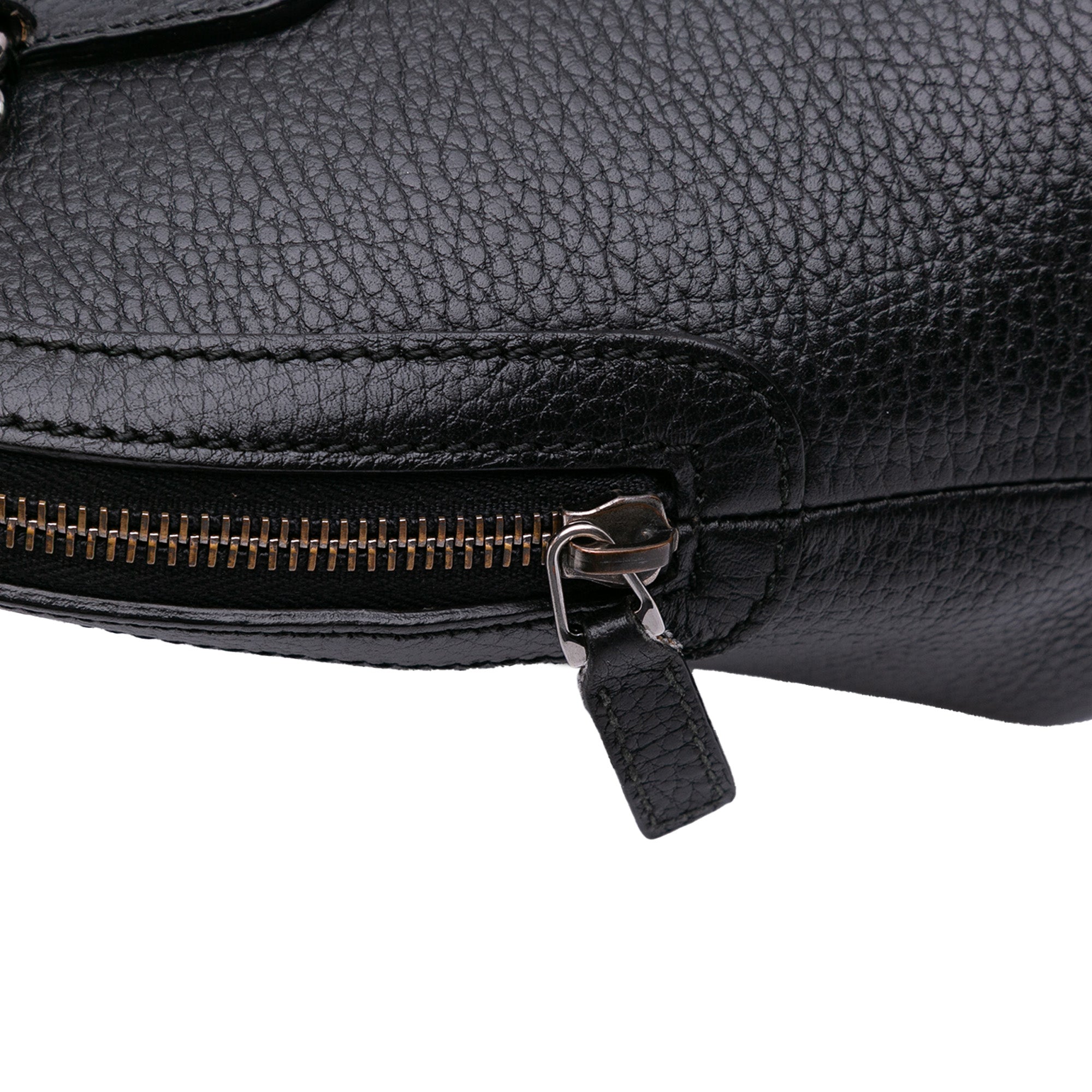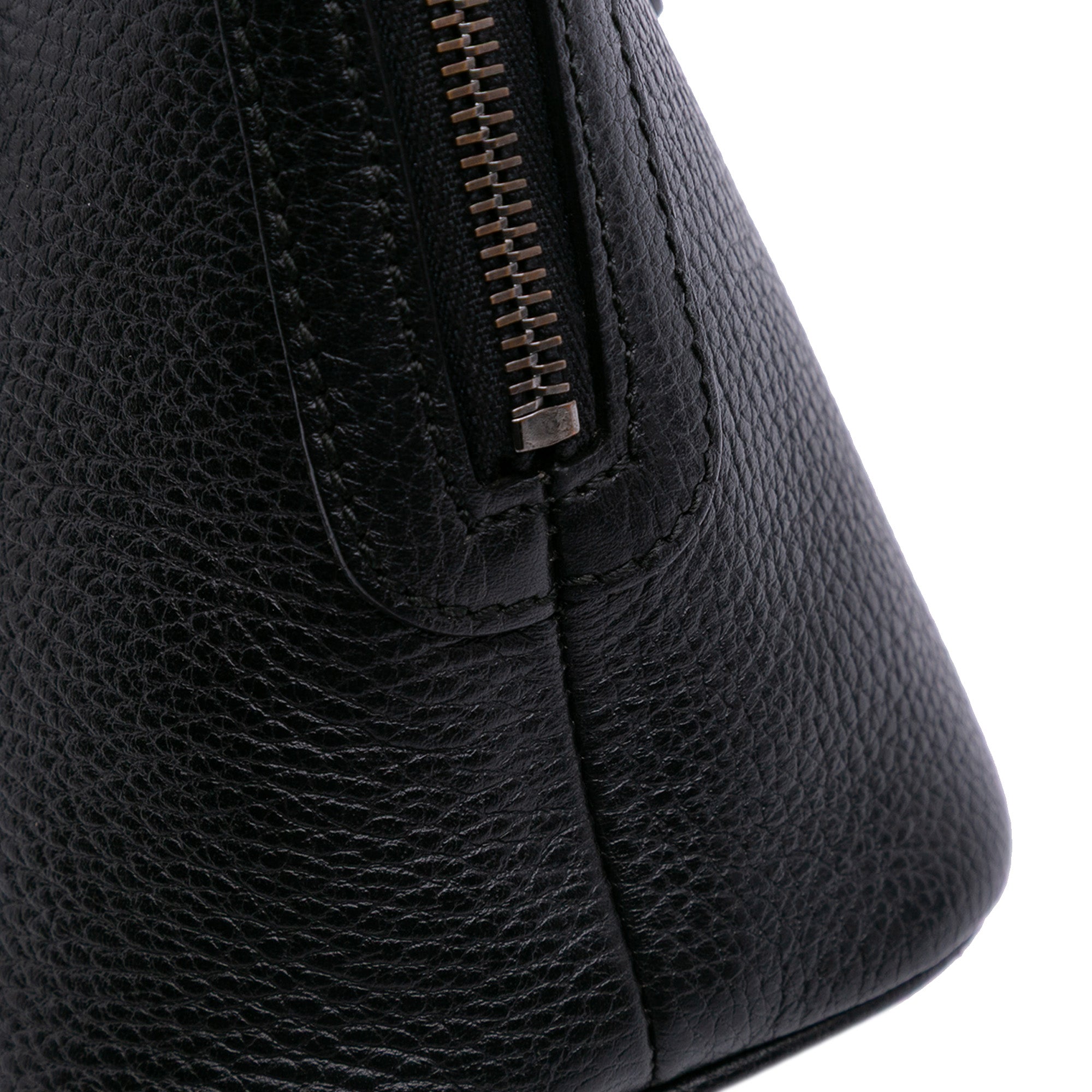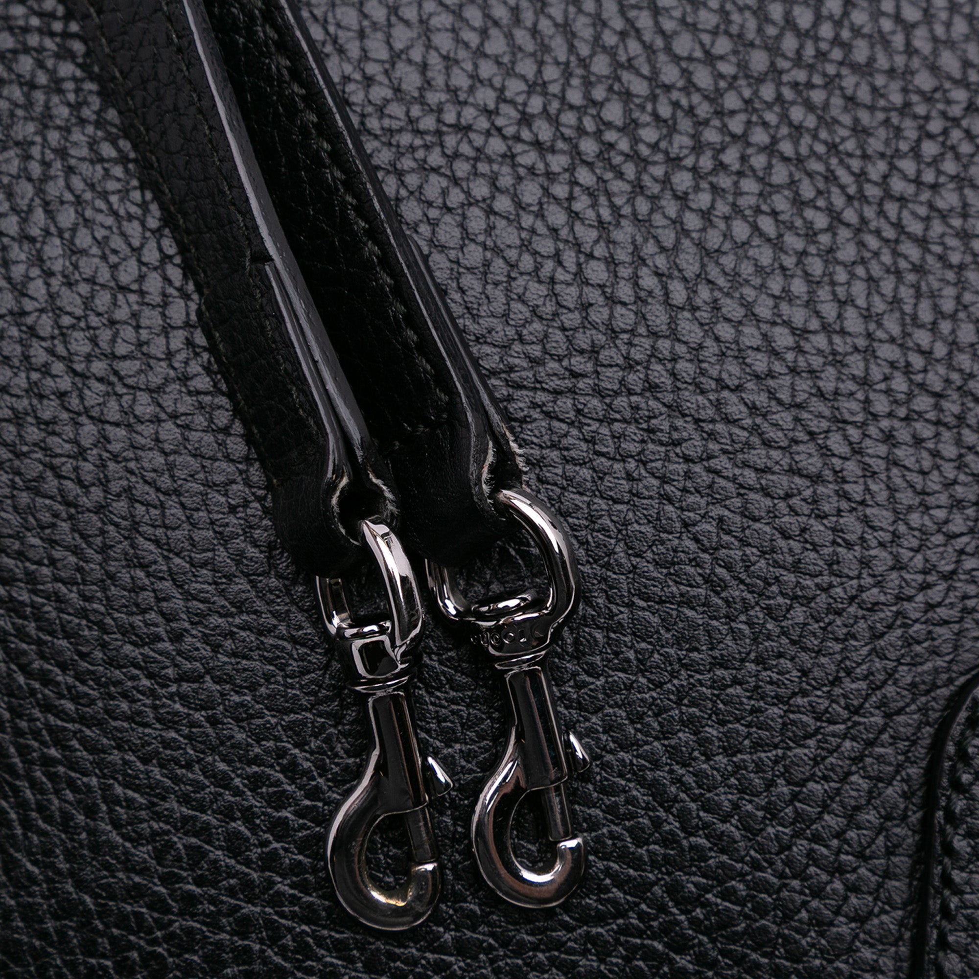 This satchel features a leather body, flat leather handles, a detachable flat leather strap, a top zip closure, and an interior slip pocket. Retail Price: 1195.00