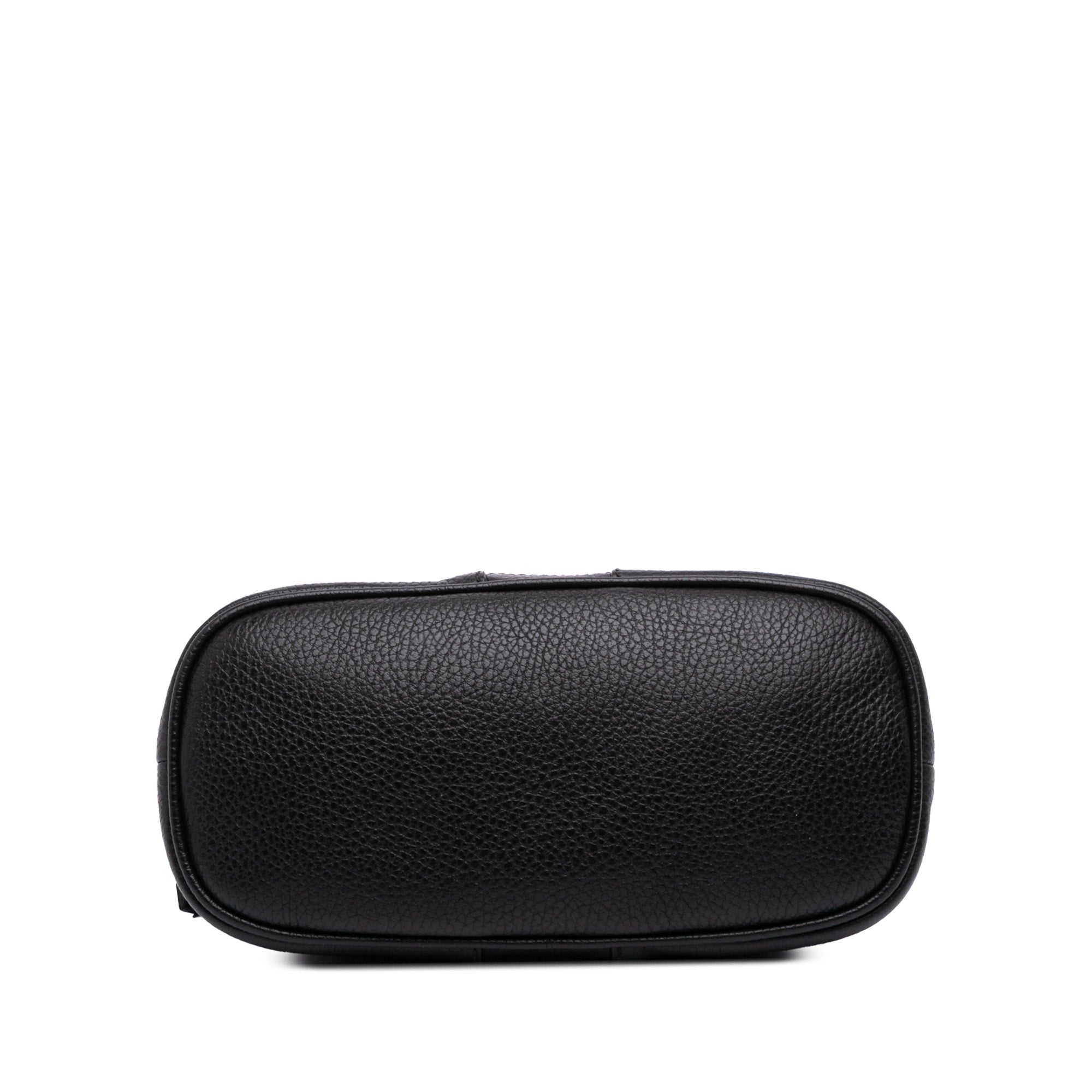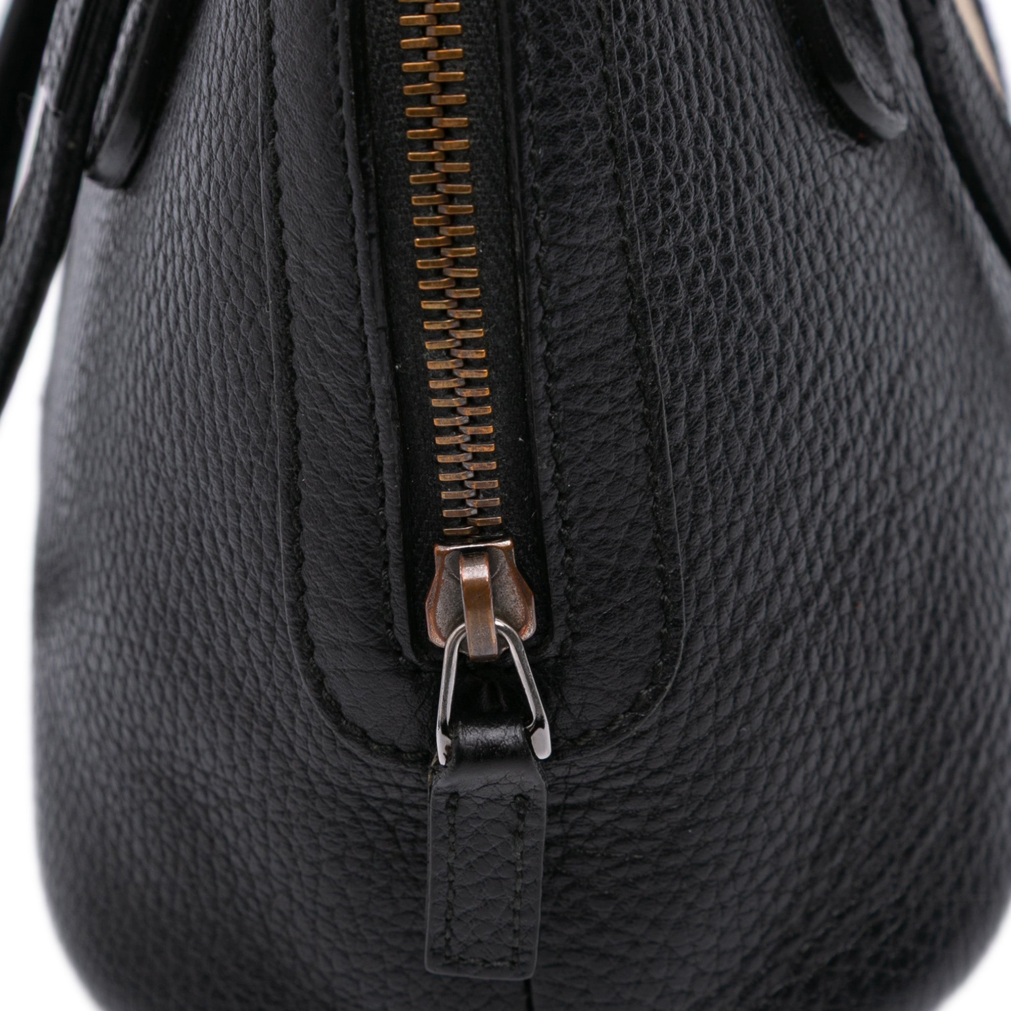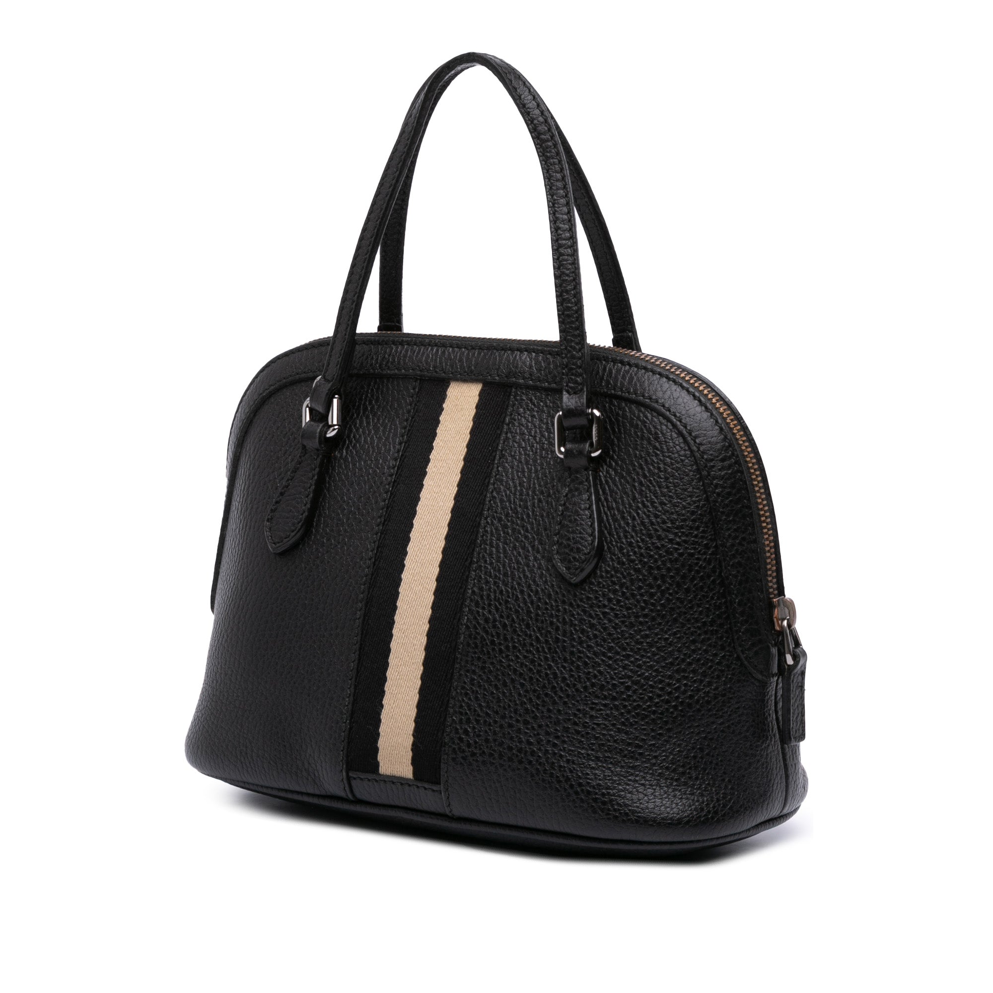 This satchel features a leather body with web details, flat leather handles, a detachable flat leather strap, a top zip closure, and an interior slip pocket. Retail Price: 1195.00