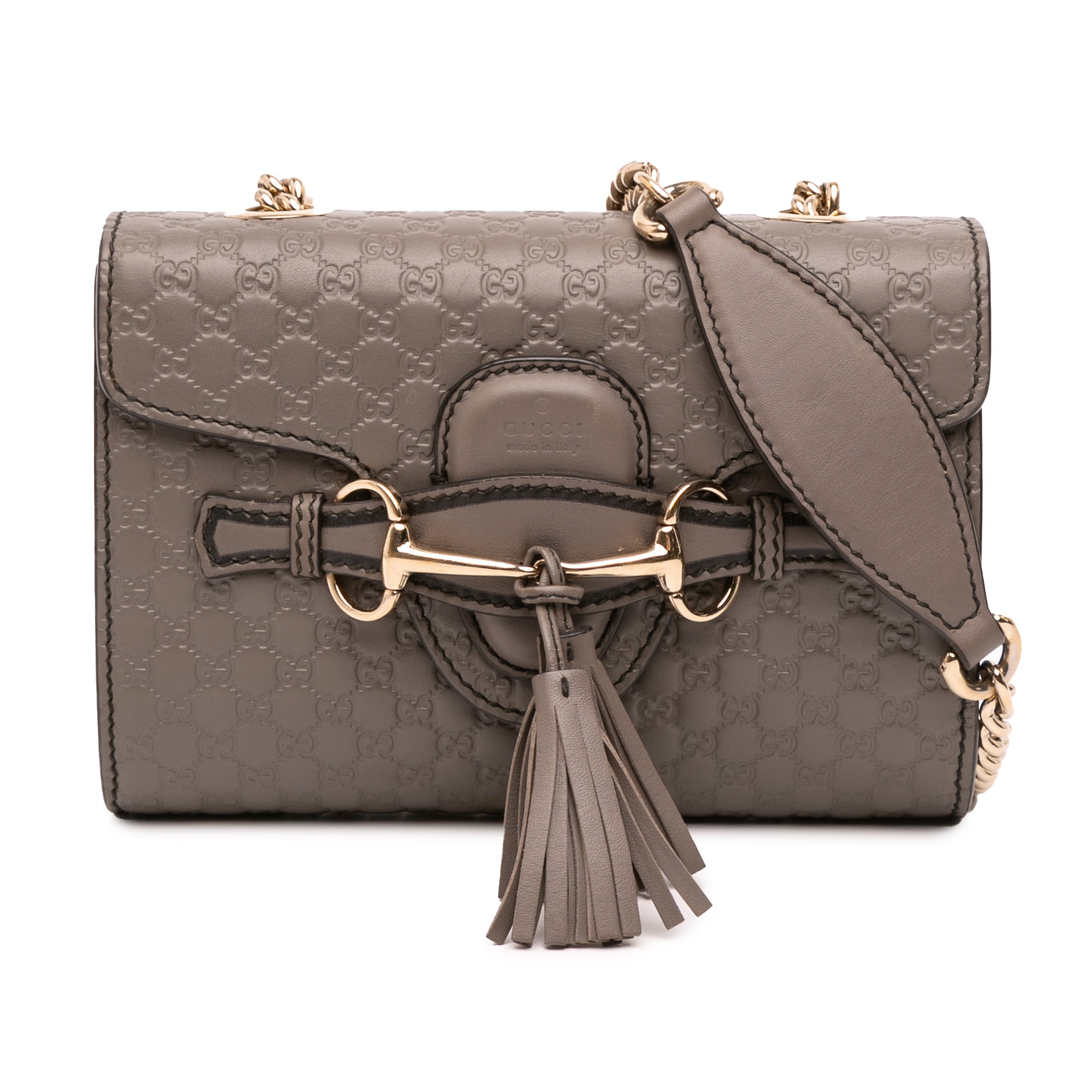 The Mini Emily features an embossed leather body, a chain link strap with leather guard, a front flap with a slip through closure and a tassel detail, and an interior slip pocket. Retail Price: 1313.00