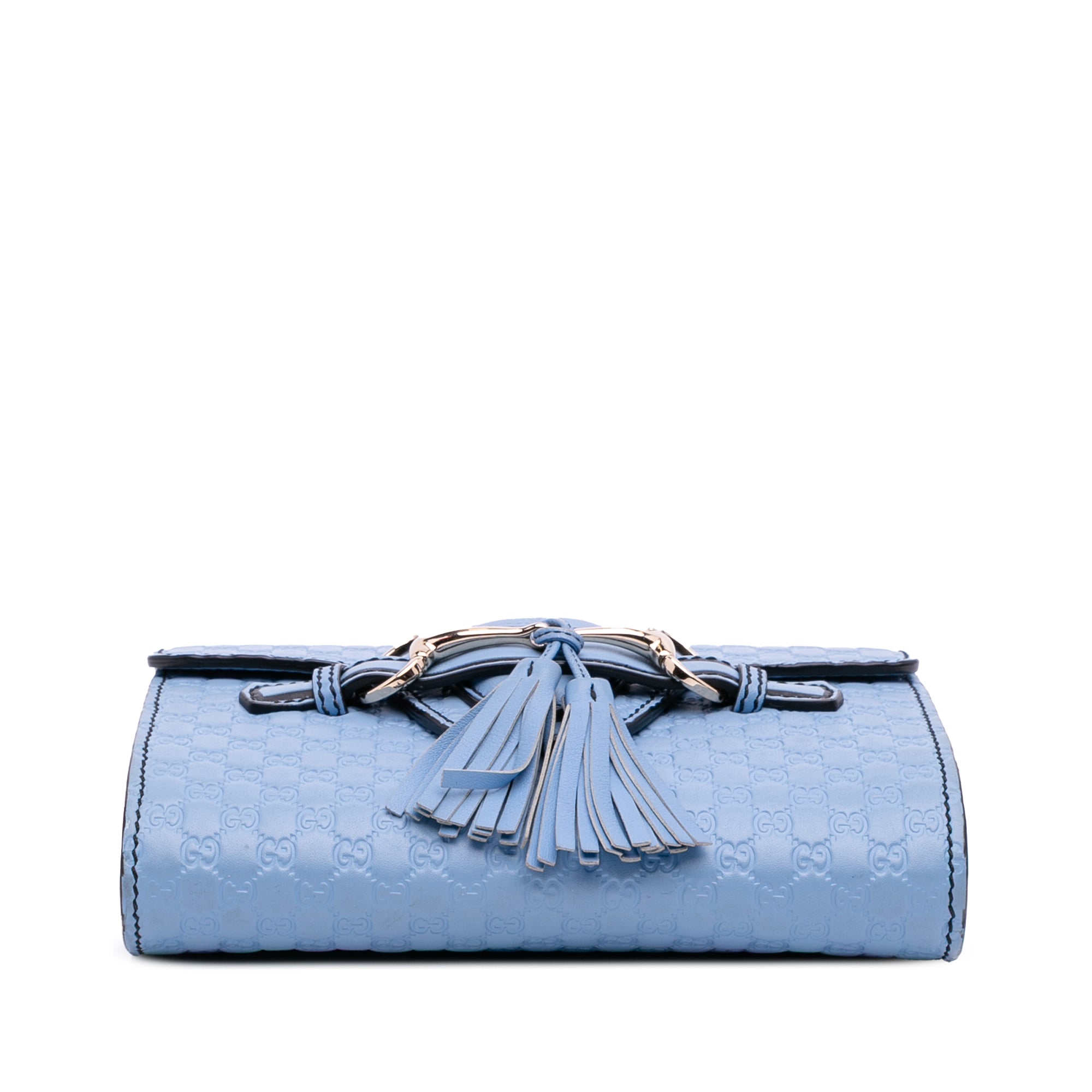 The Mini Emily features an embossed leather body, a chain link strap with leather guard, a front flap with a slip through closure and a tassel detail, and an interior slip pocket. Inclusion: Dust bag. Retail Price: 1650.00
