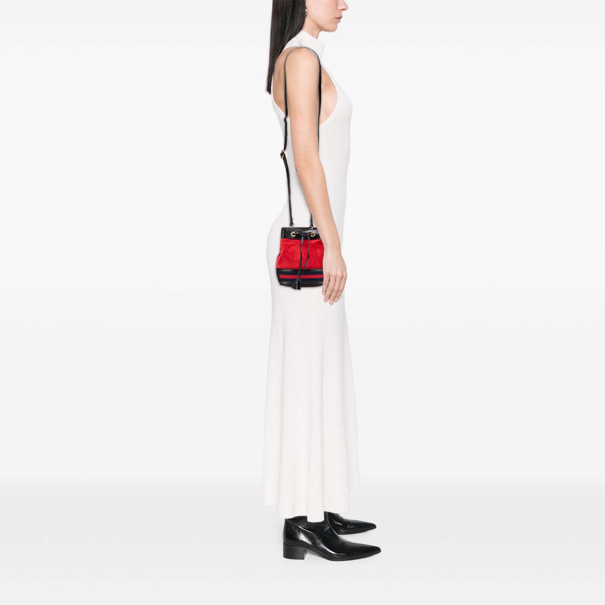 Gucci Mini Suede and Patent Web Ophidia Bucket Bag