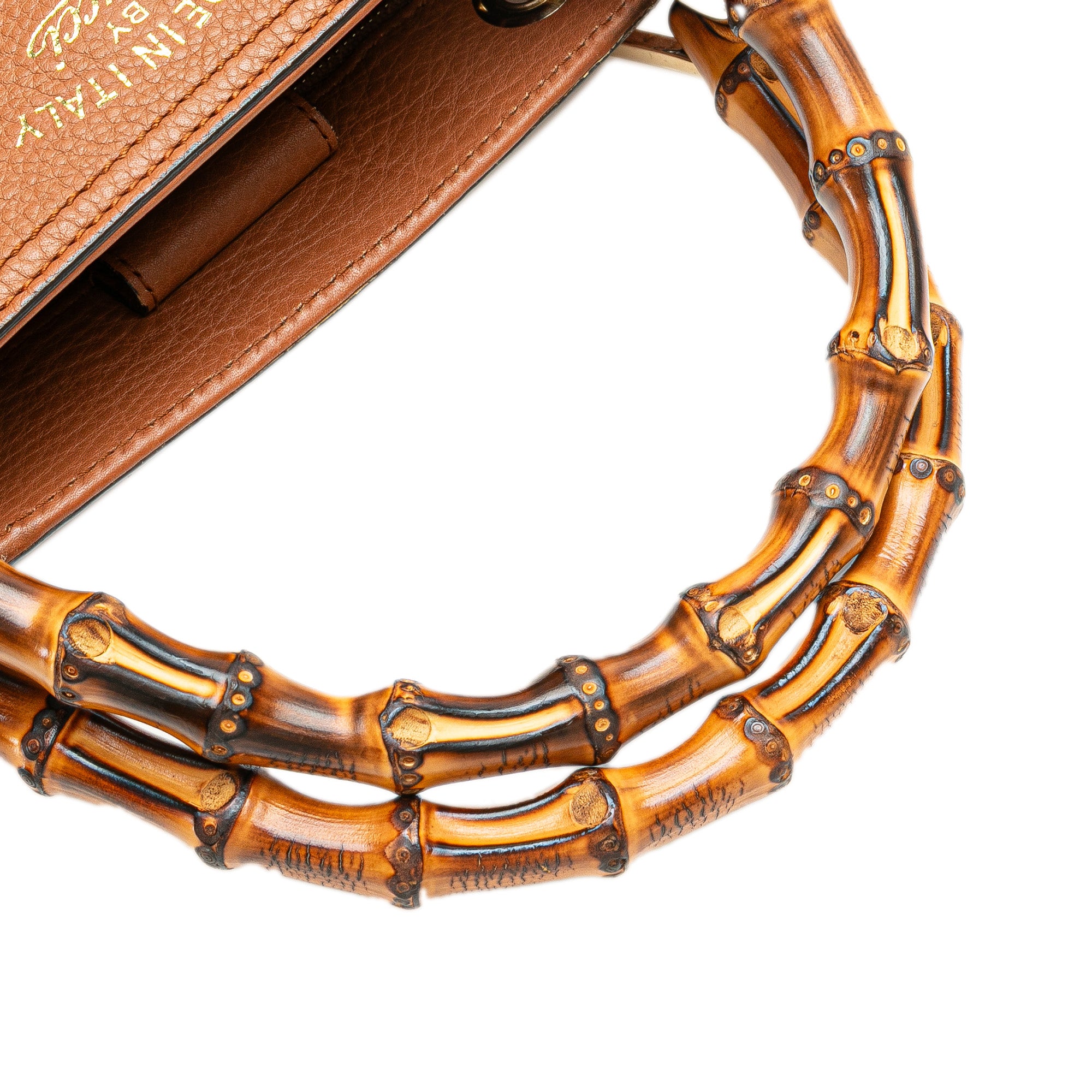 The Bamboo Shopper features a leather body, bamboo top handles, a detachable and adjustable flat leather shoulder strap, an open top with magnetic snap closure, and interior zip and slip pockets. Inclusion: Dust bag. Retail Price: 1840.00