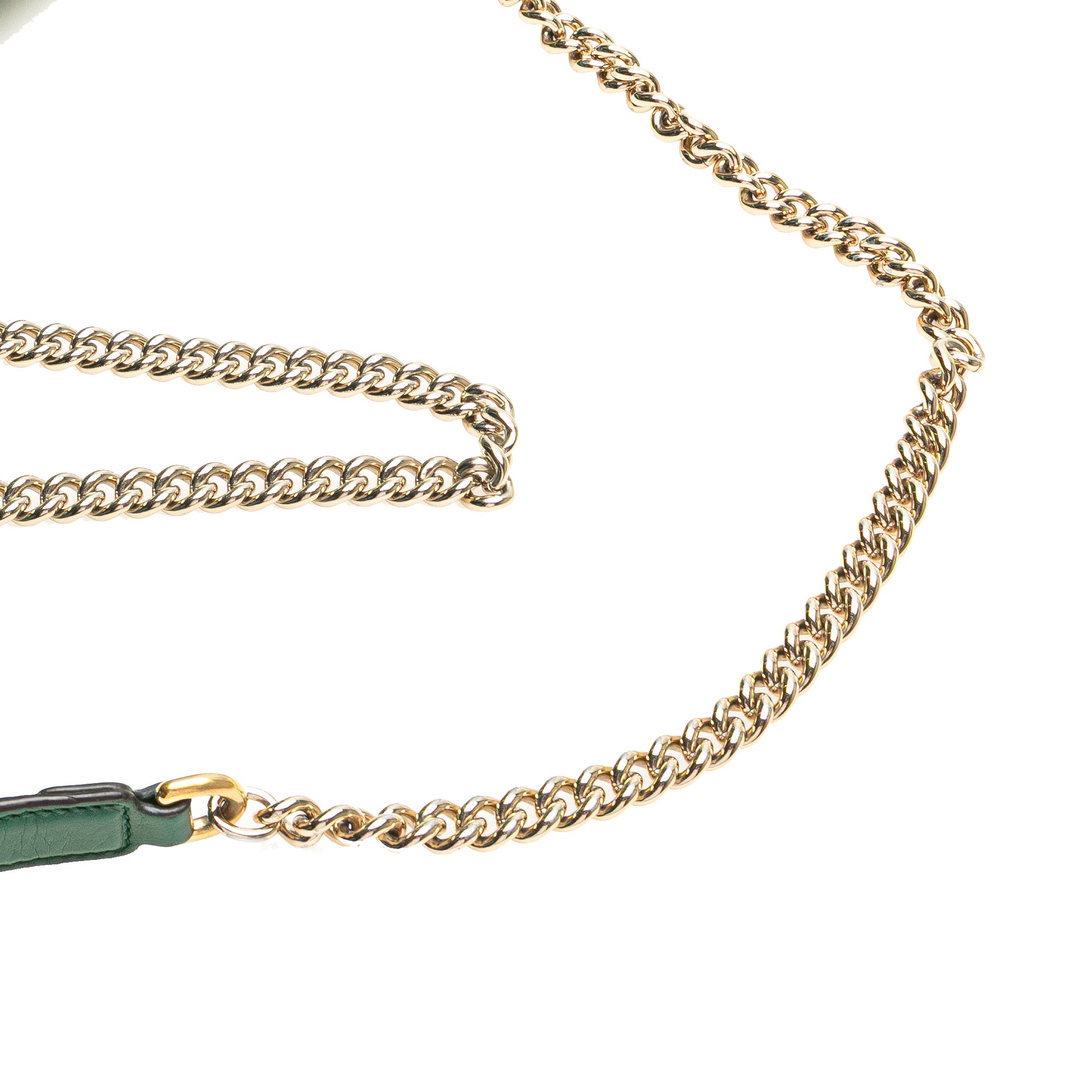 This crossbody bag features a leather body, a chain-link shoulder strap with leather shoulder guard, a front flap with snap button closure, and interior zip and slip pockets. Retail Price: 1995.00