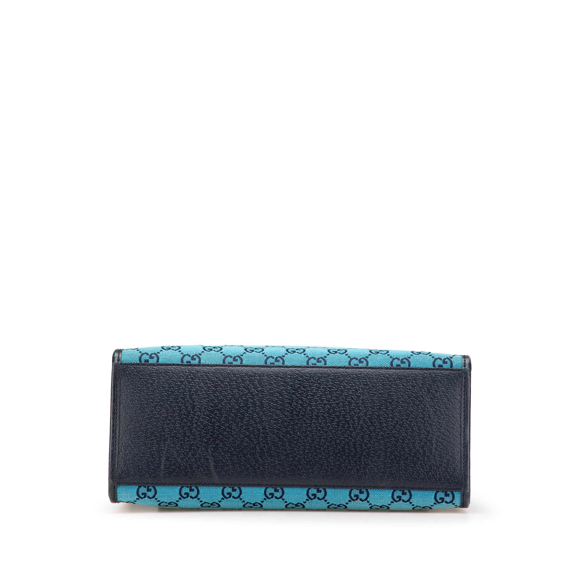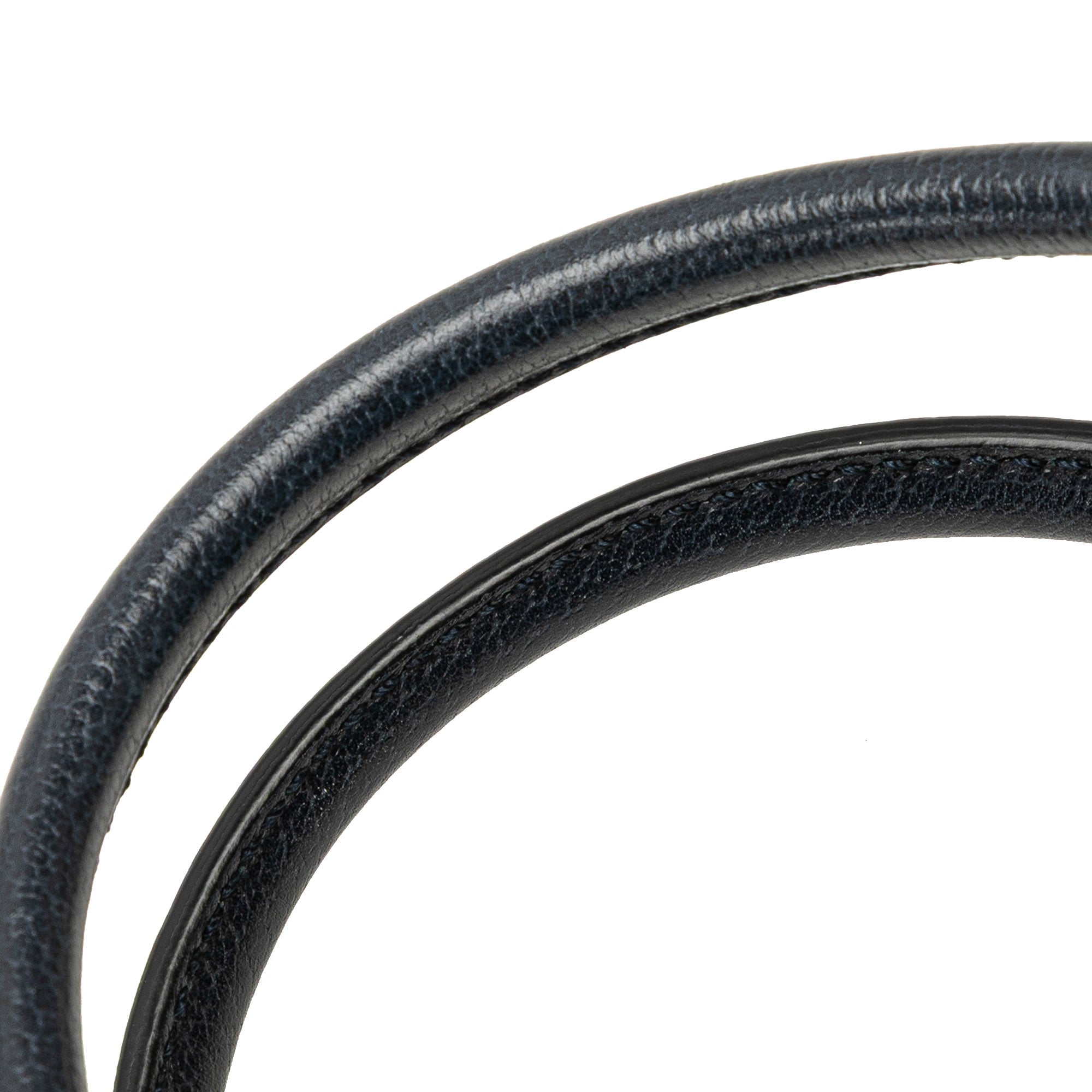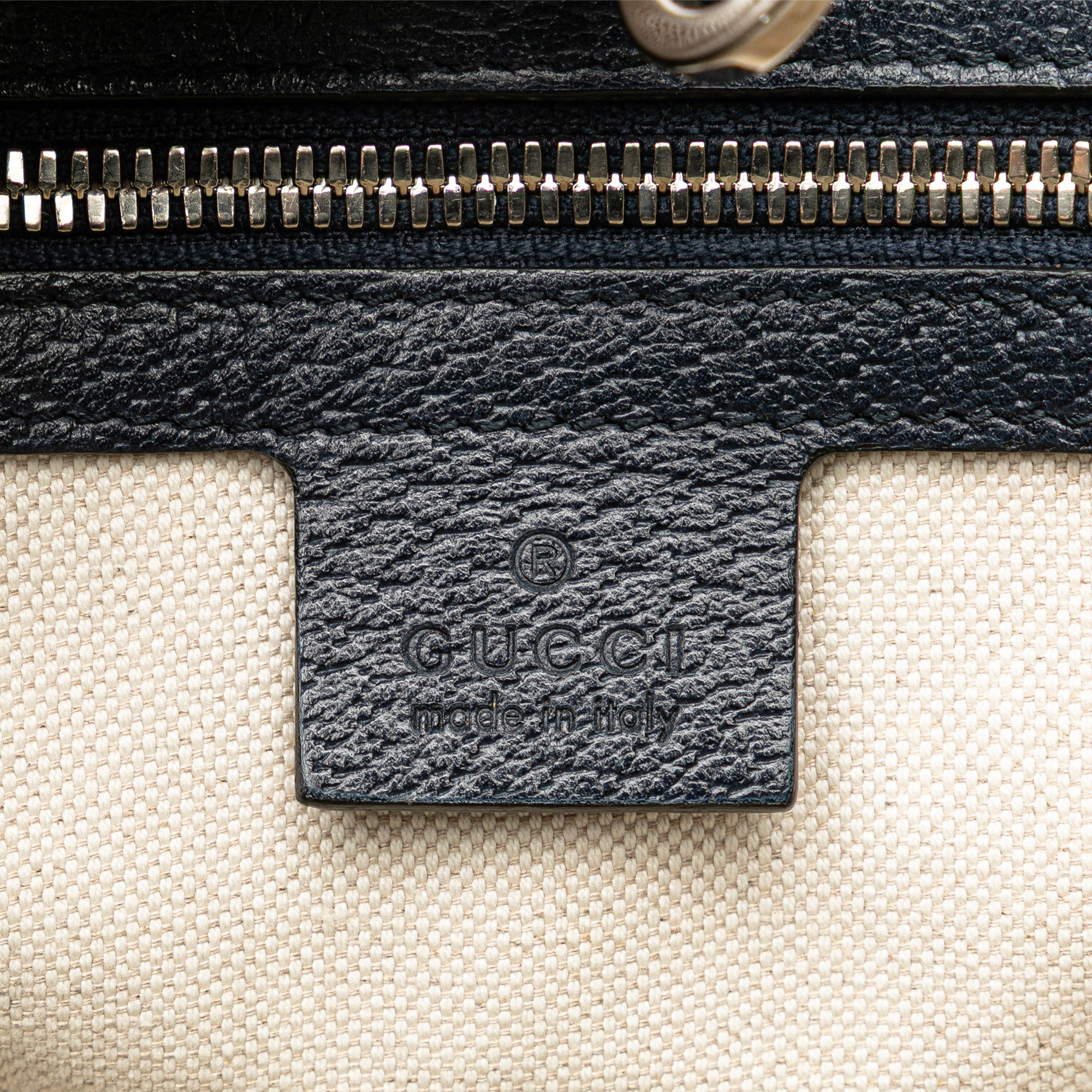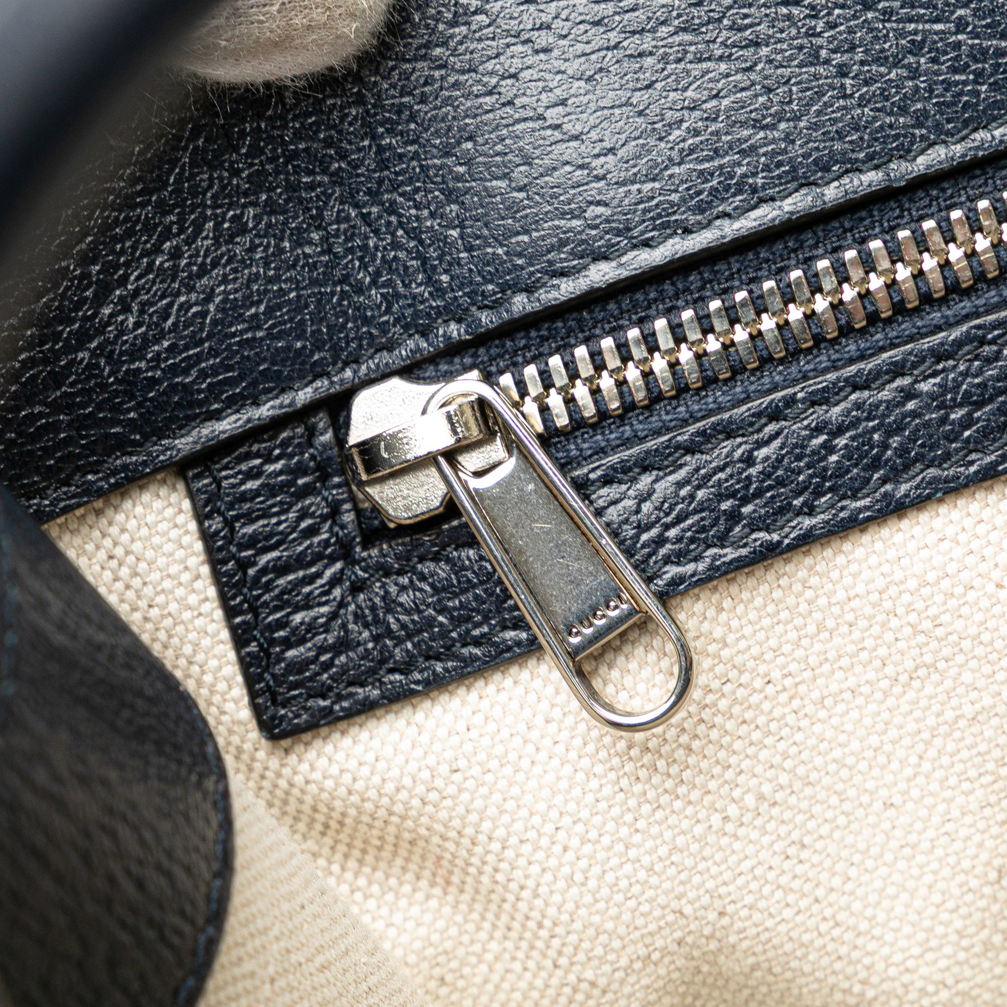 This satchel features a canvas body with leather trim, rolled leather handles, a detachable flat strap, an open top with a clasp closure, and an interior zip pocket. Retail Price: 1690.00