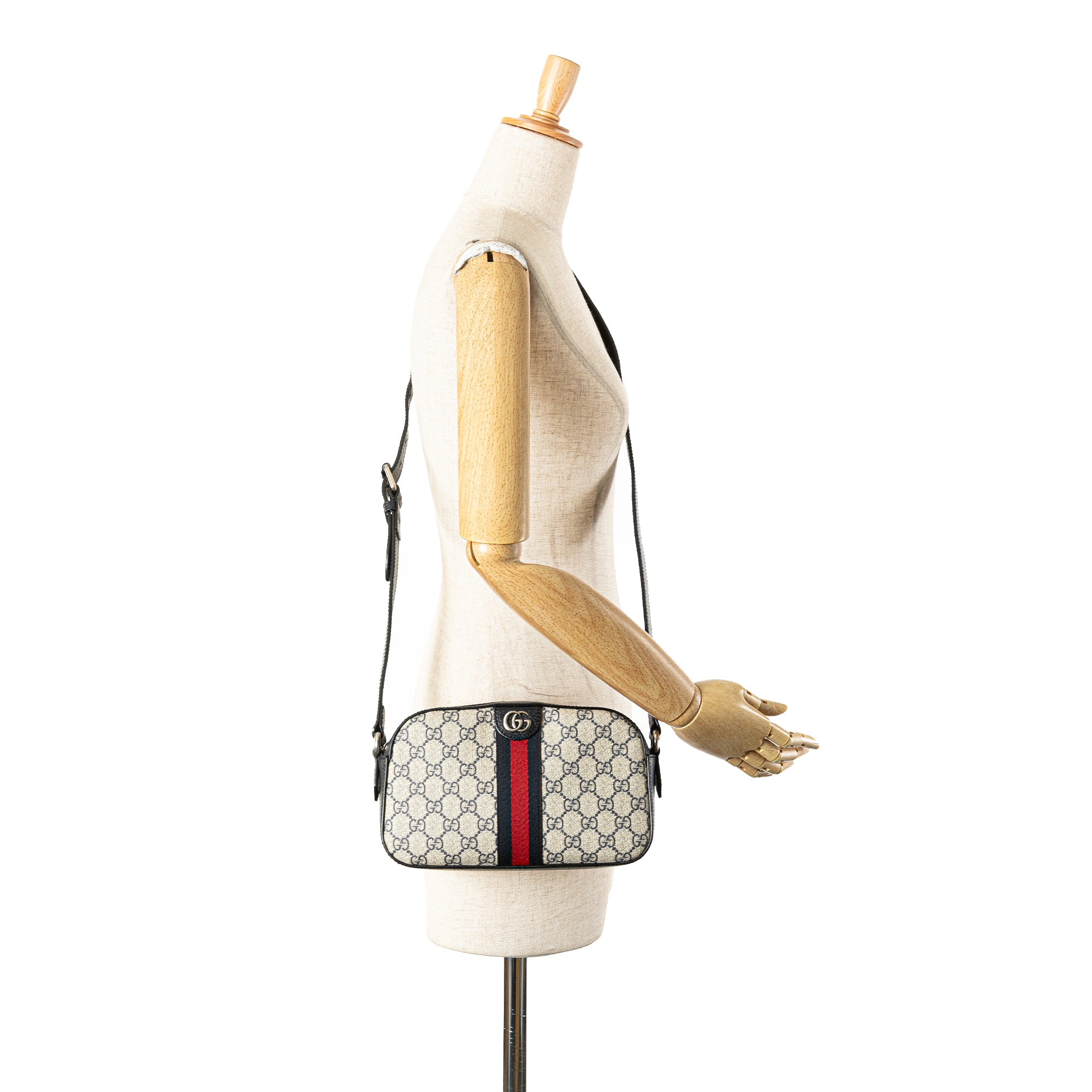 Gucci Small GG Supreme Textured Dollar Calfskin Web Ophidia Camera Bag