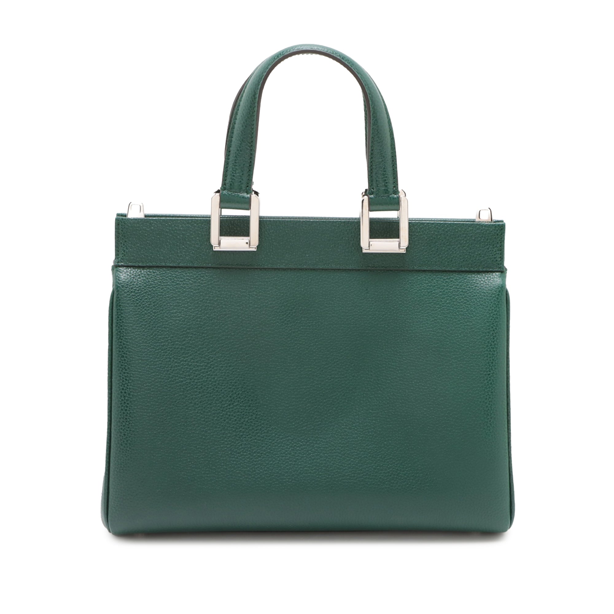 The Zumi satchel features a leather body, flat leather handles, a detachable flat leather strap, dual flip-lock closures, interior zip and slip compartments, and an interior zip pocket. Retail Price: 3200.00