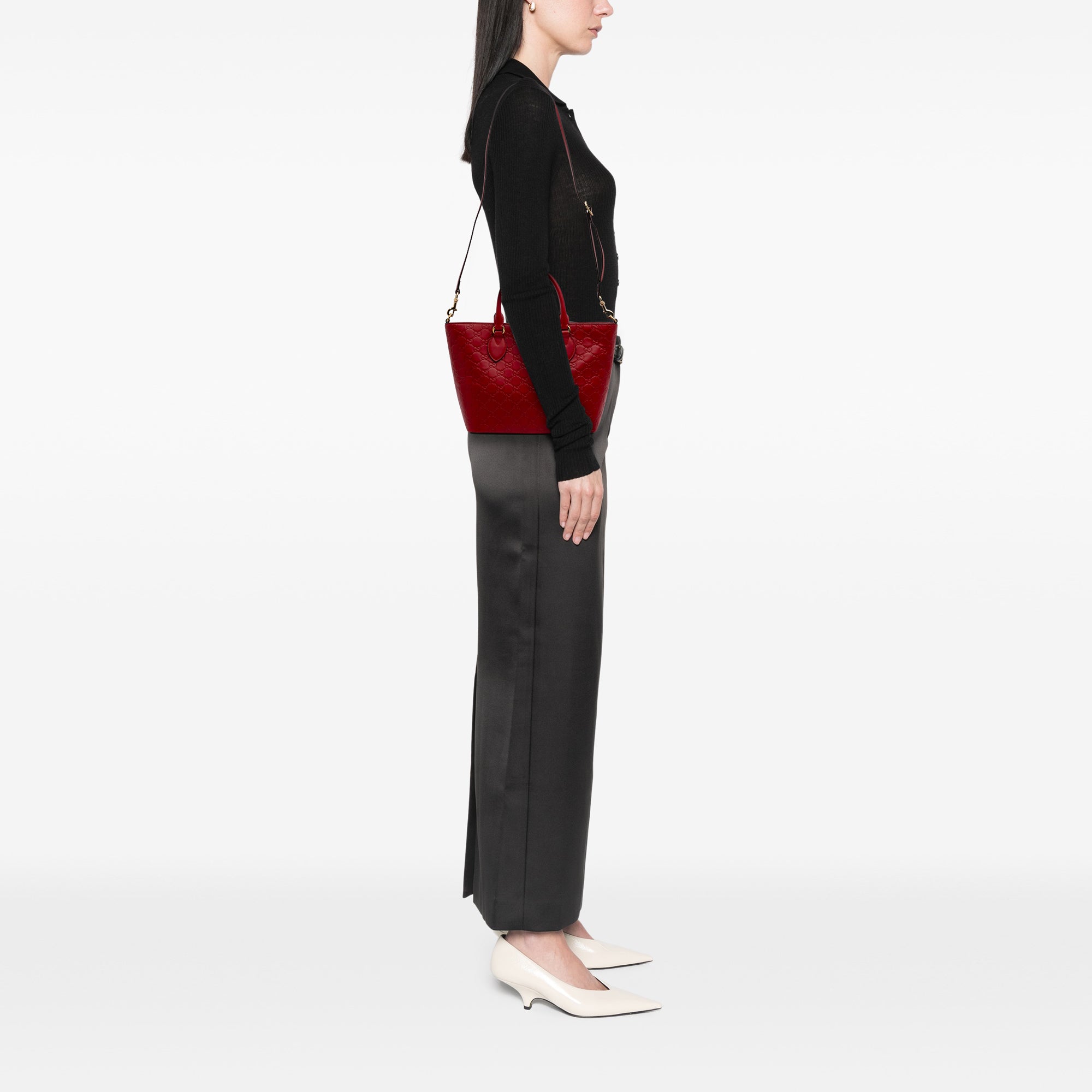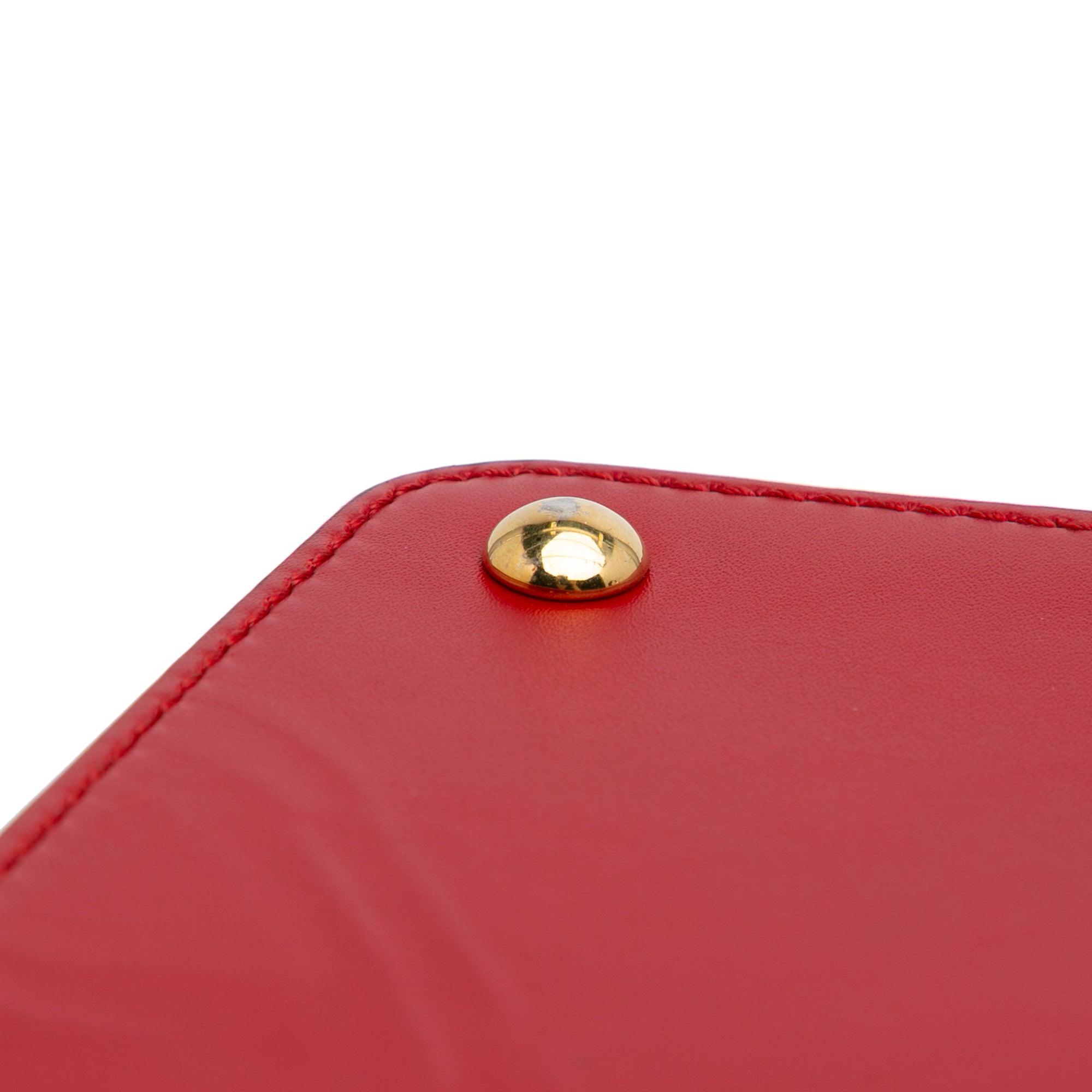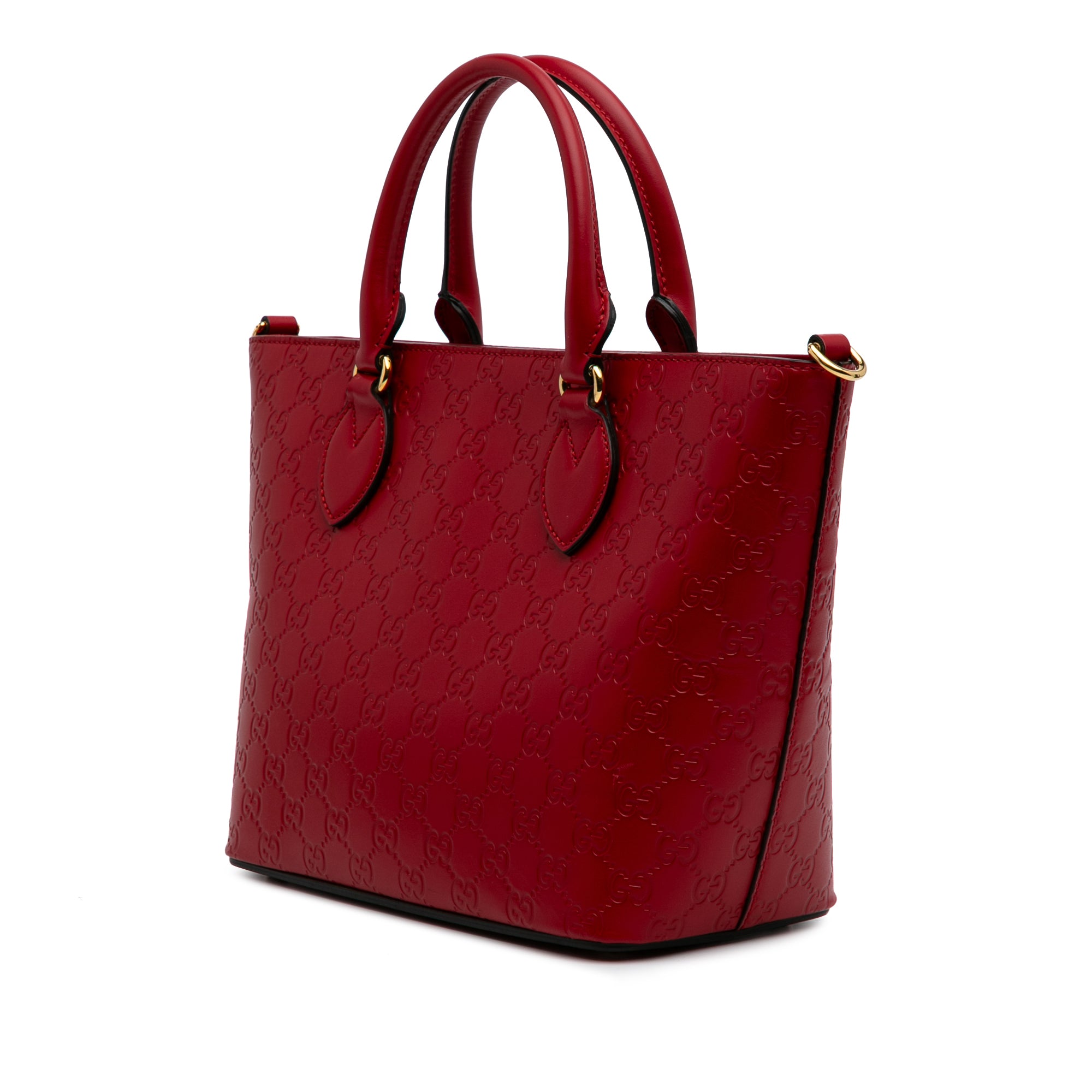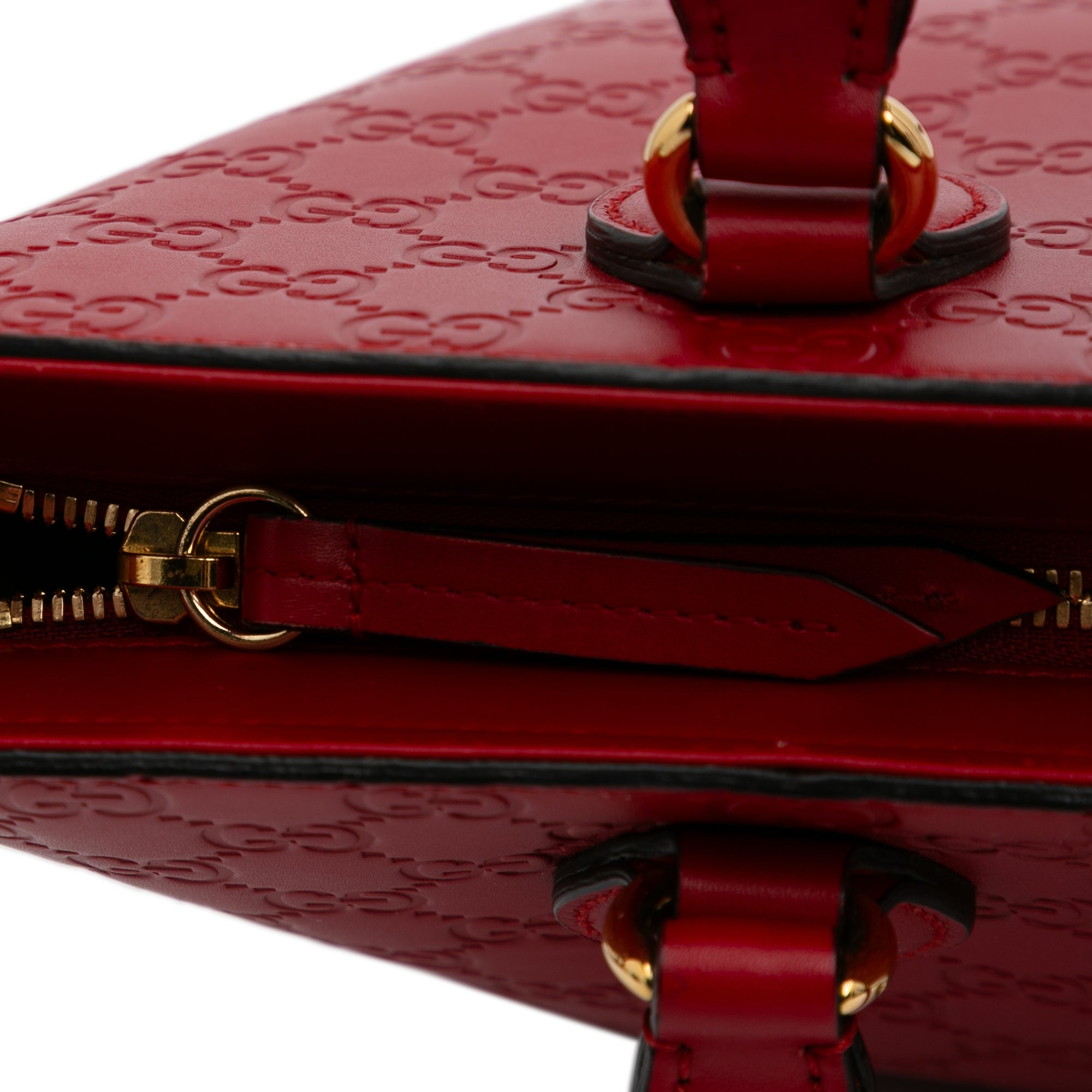 This satchel features an embossed leather body, rolled leather handles, a detachable flat leather strap, a top zip closure, and interior zip and slip pockets. Retail Price: 2990.00