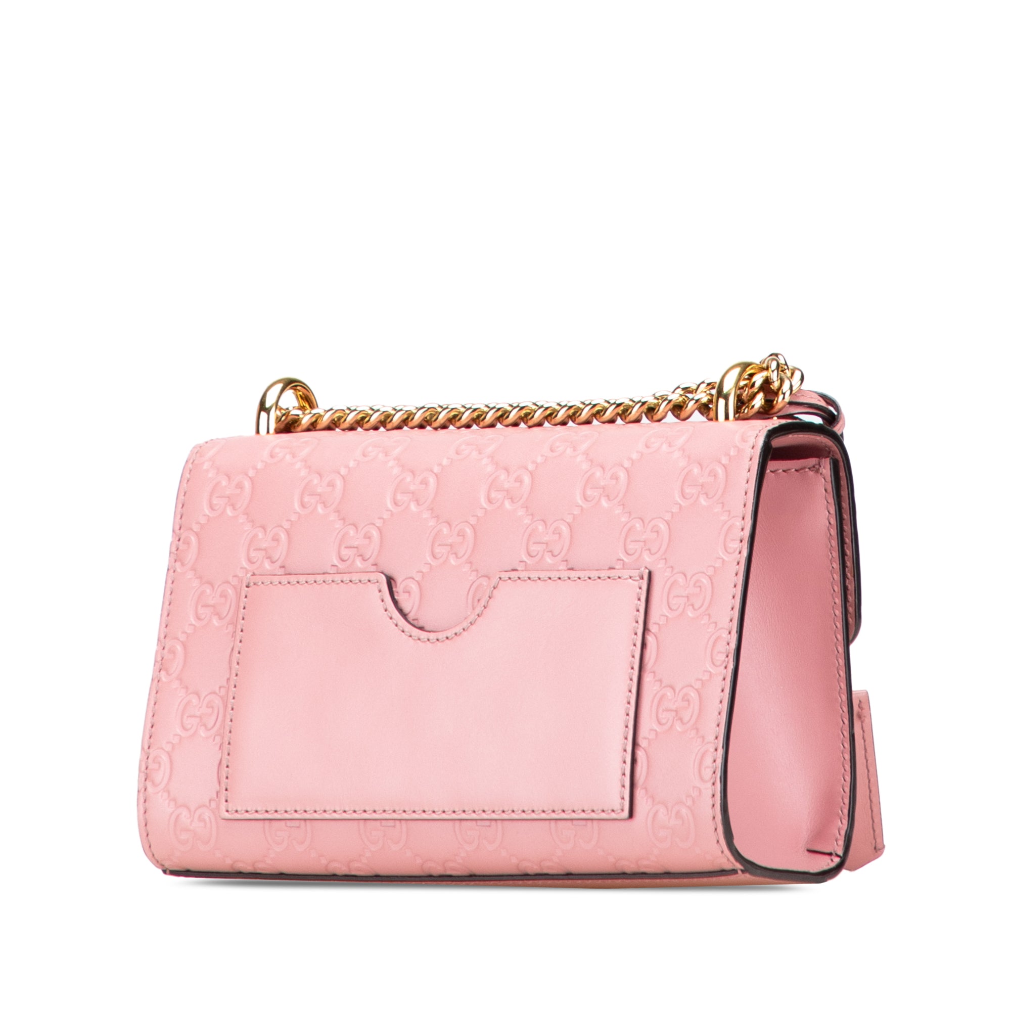 The Padlock crossbody bag features an embossed leather body, gold-tone chain straps, a front flap with push lock closure, an exterior back slip pocket, and an interior slip pocket. Inclusion: Dust bag. Retail Price: 1790.00