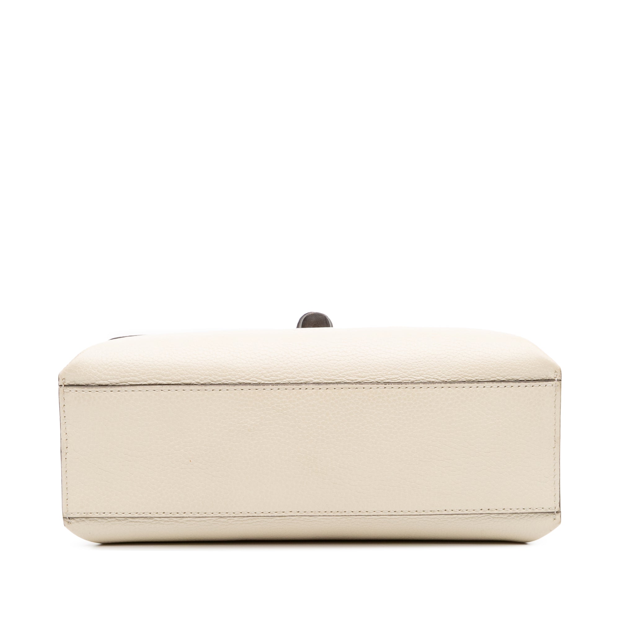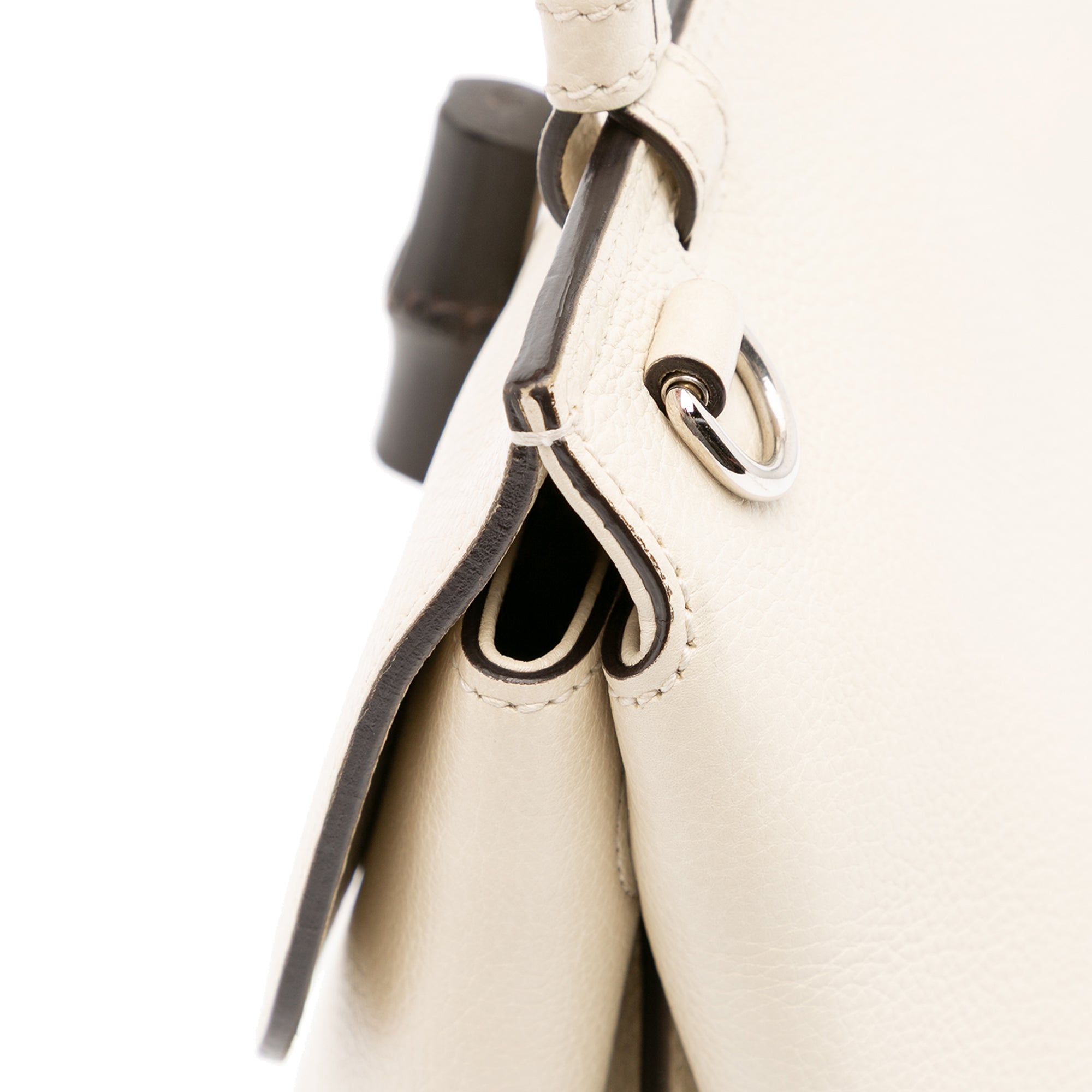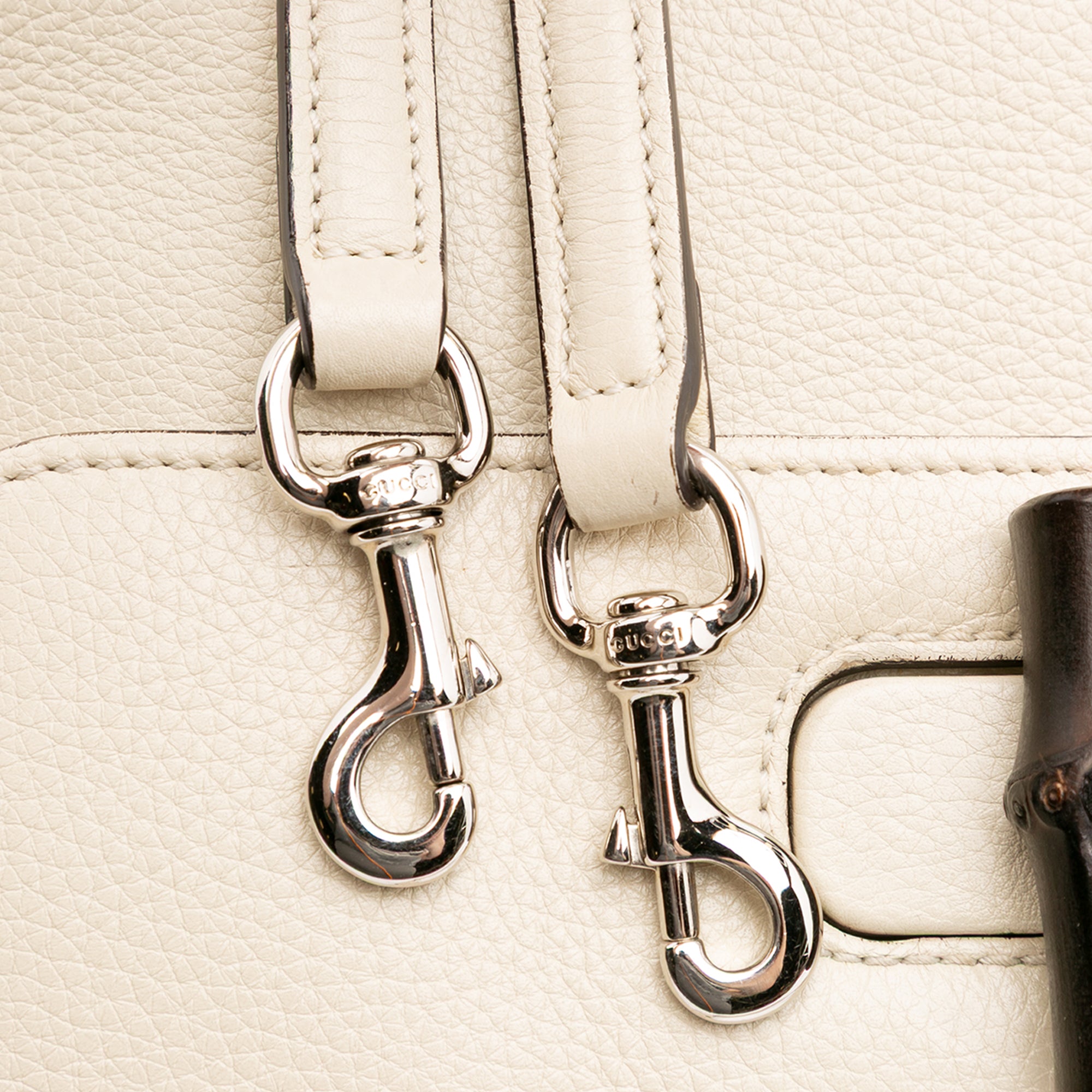 The Daily satchel features a leather body, a flat top handle, a detachable flat shoulder strap, a front flap with a bamboo twist lock closure, and interior zip and slip pockets. Retail Price: 1650.00