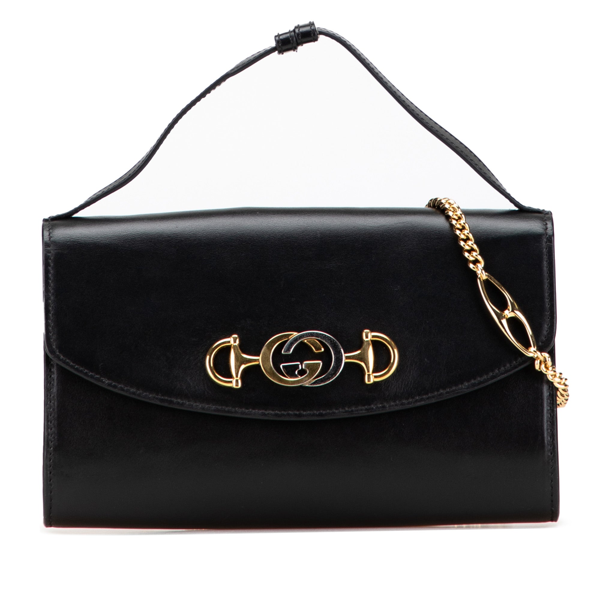The Zumi satchel features a leather body, a flat leather top handle, a detachable gold-tone chain strap, a top flap with magnetic closure, and an interior slip pocket. Retail Price: 4900.00