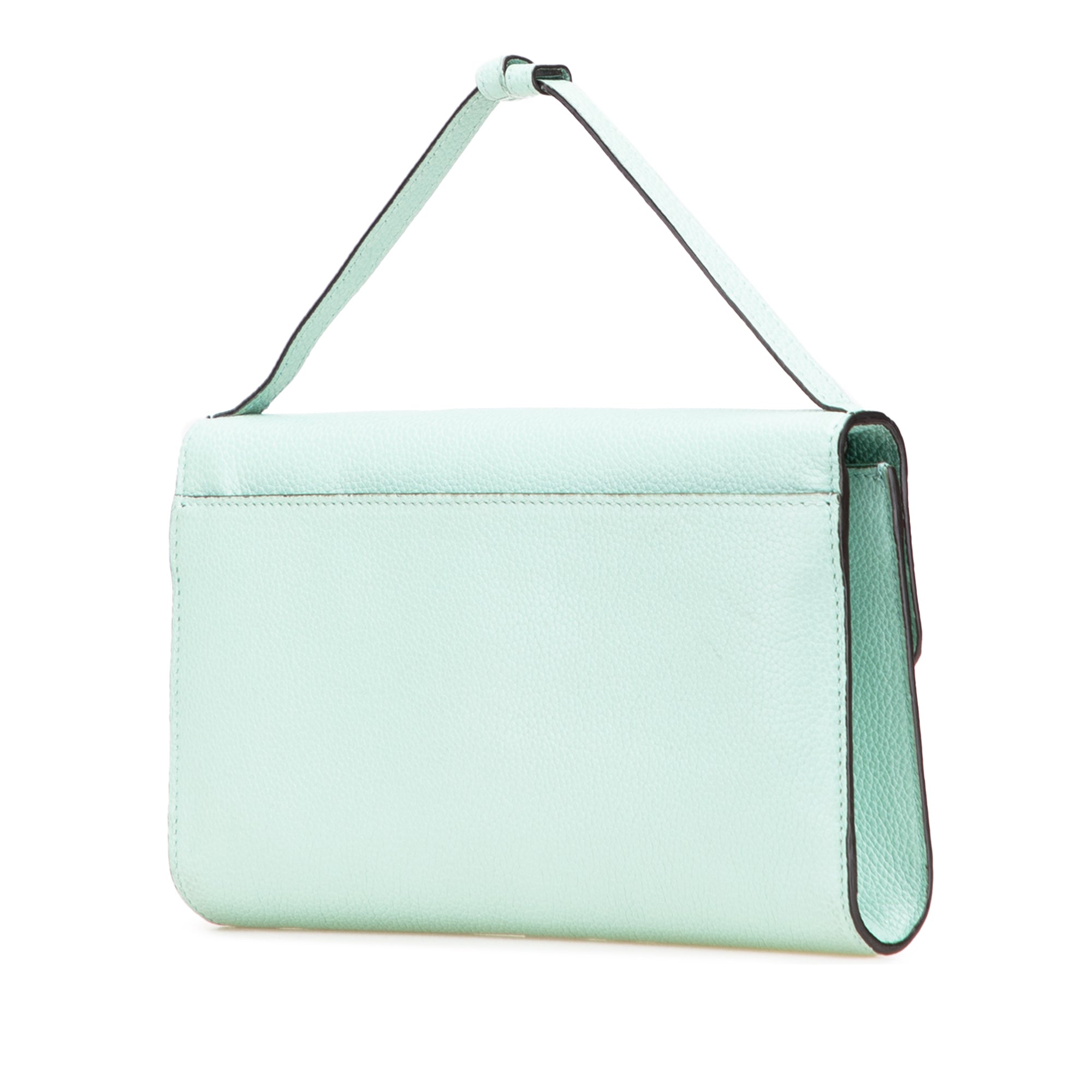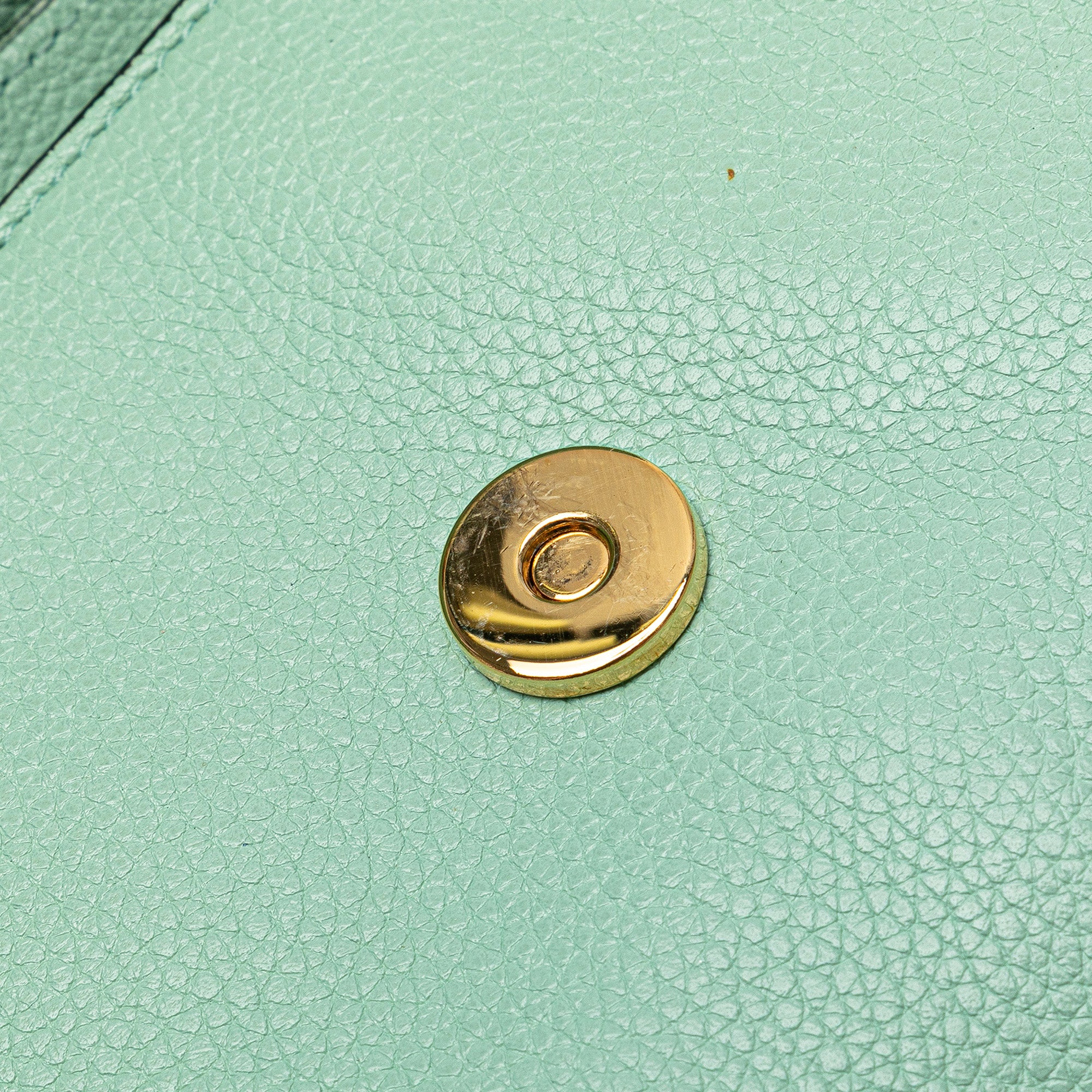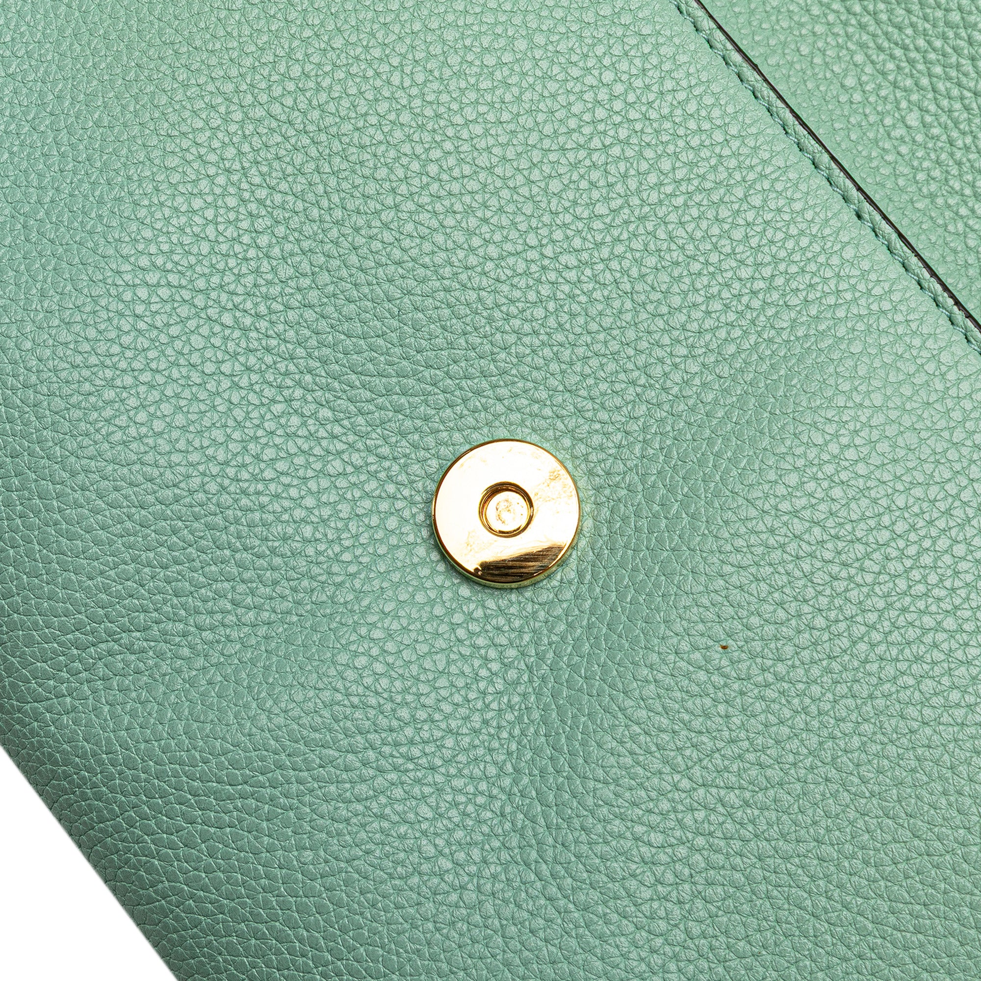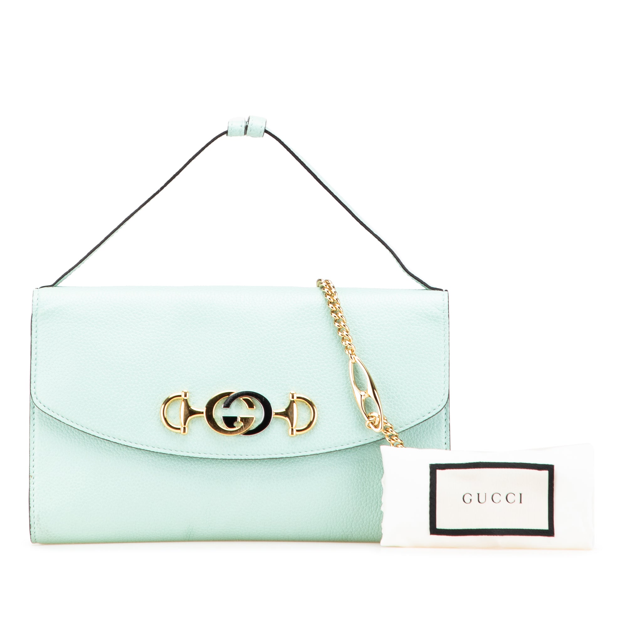 The Zumi satchel features a leather body, a flat leather top handle, a detachable gold-tone chain link strap with leather guard, a top flap with magnetic closure, and an interior slip pocket. Inclusion: Dust bag. Retail Price: 4900.00